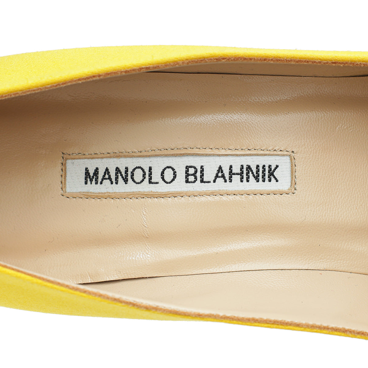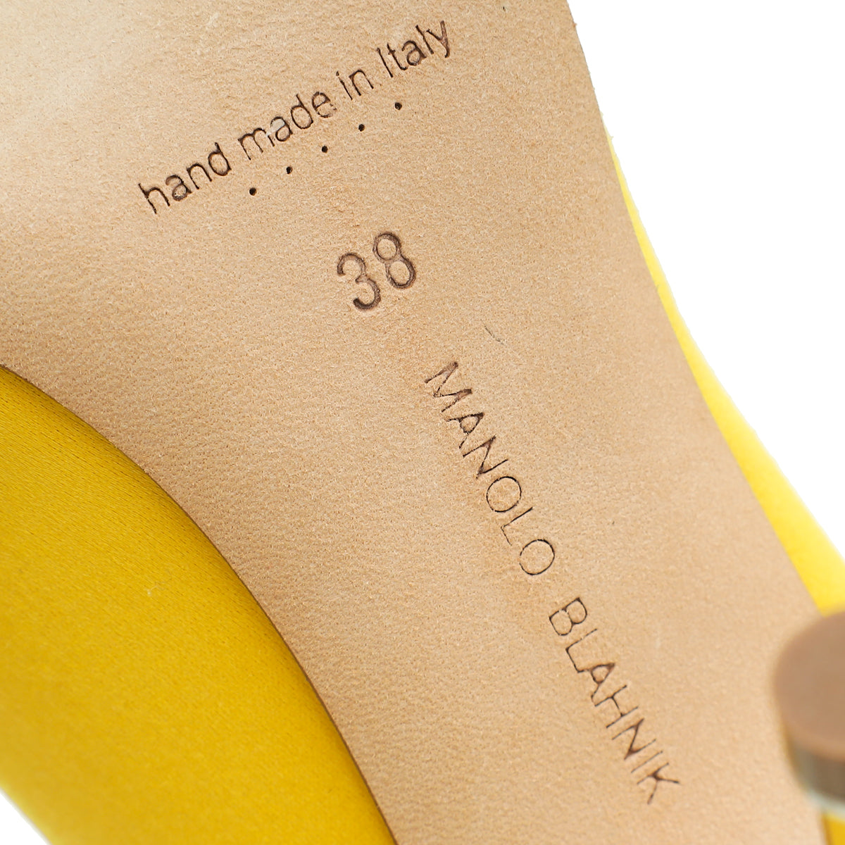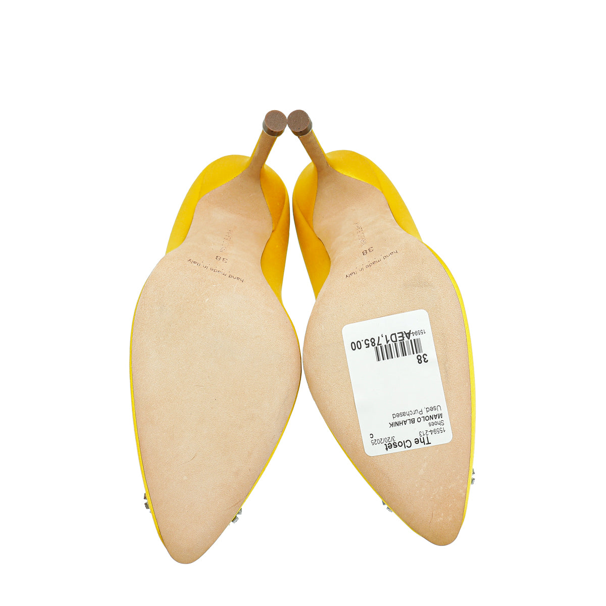 Manolo Blahnik Yellow Hangisi Embellished Satin Pump 38