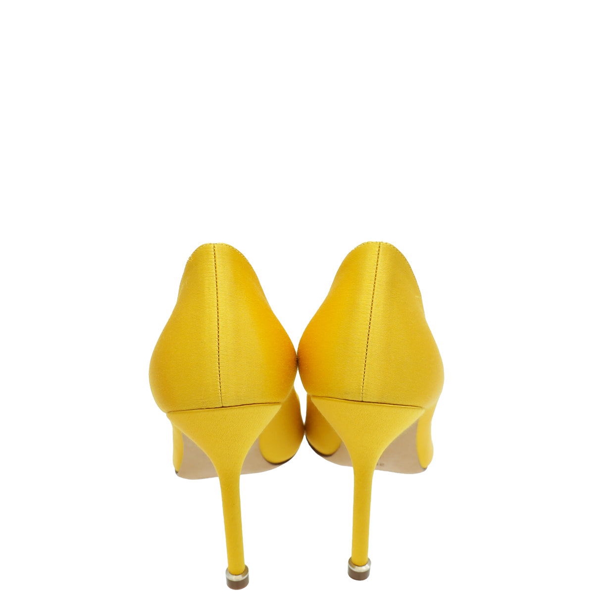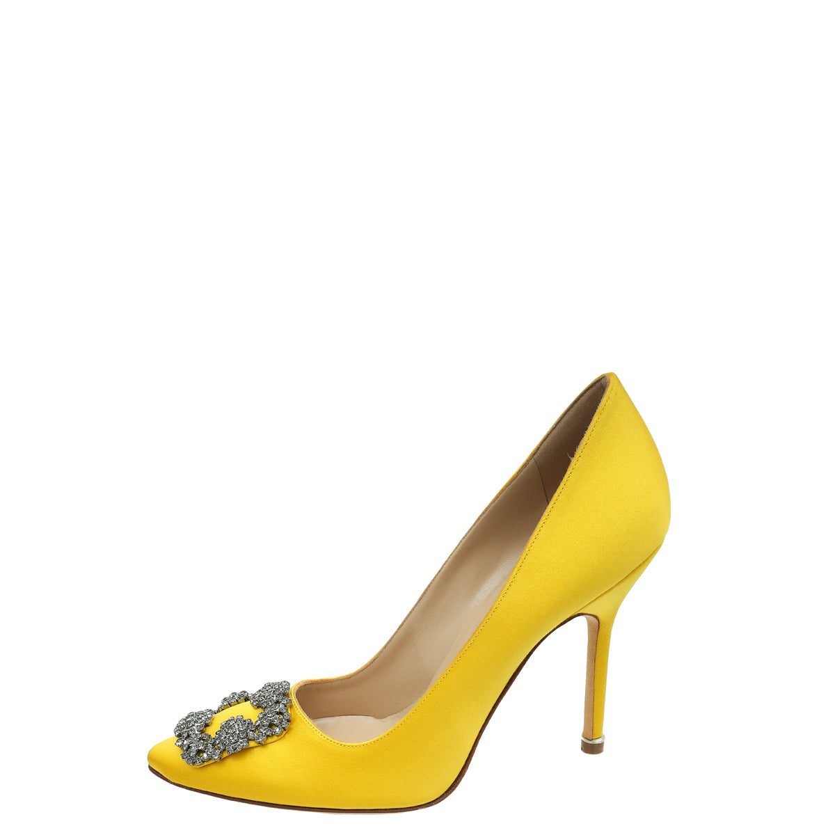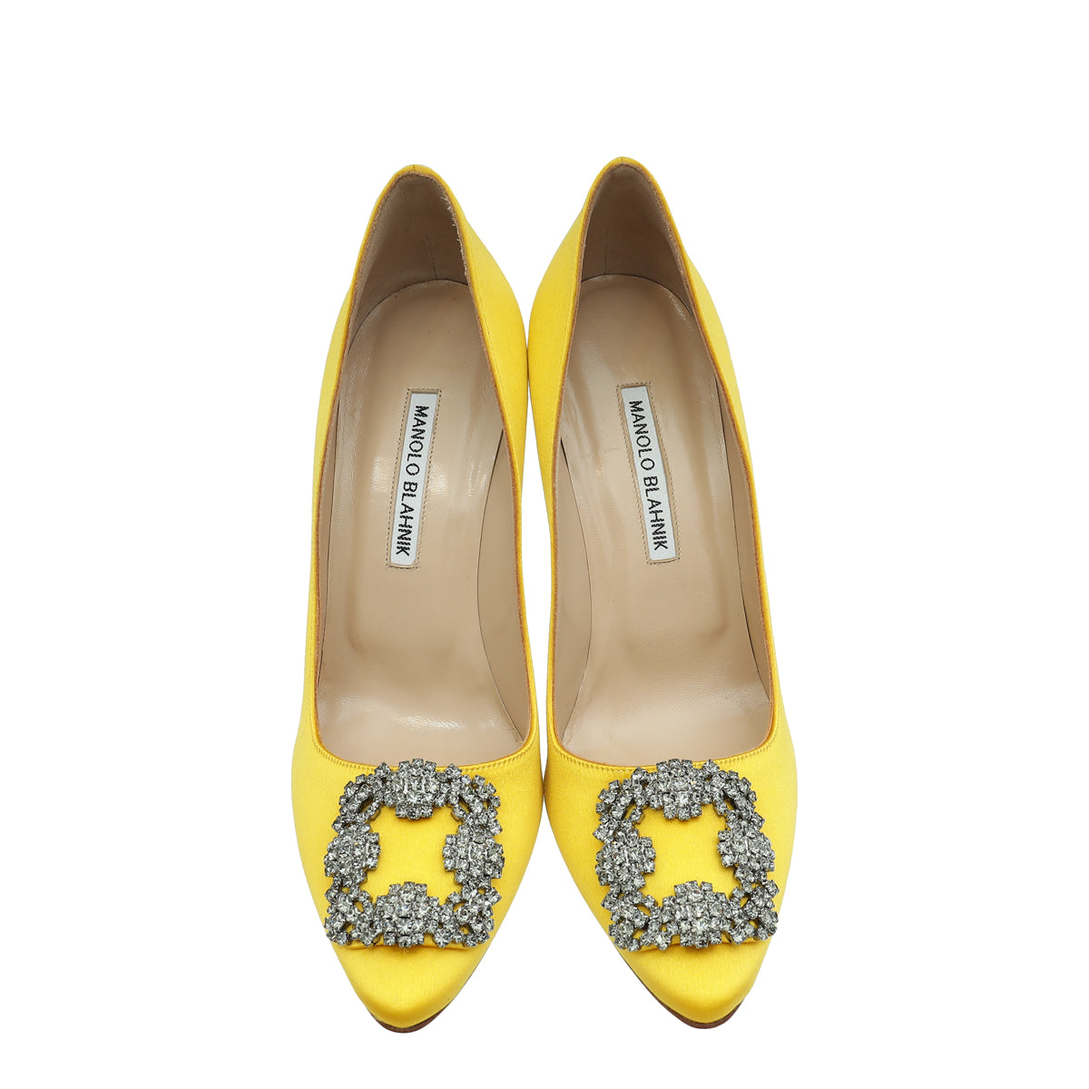 Manolo Blahnik Yellow Hangisi Embellished Satin Pump 38