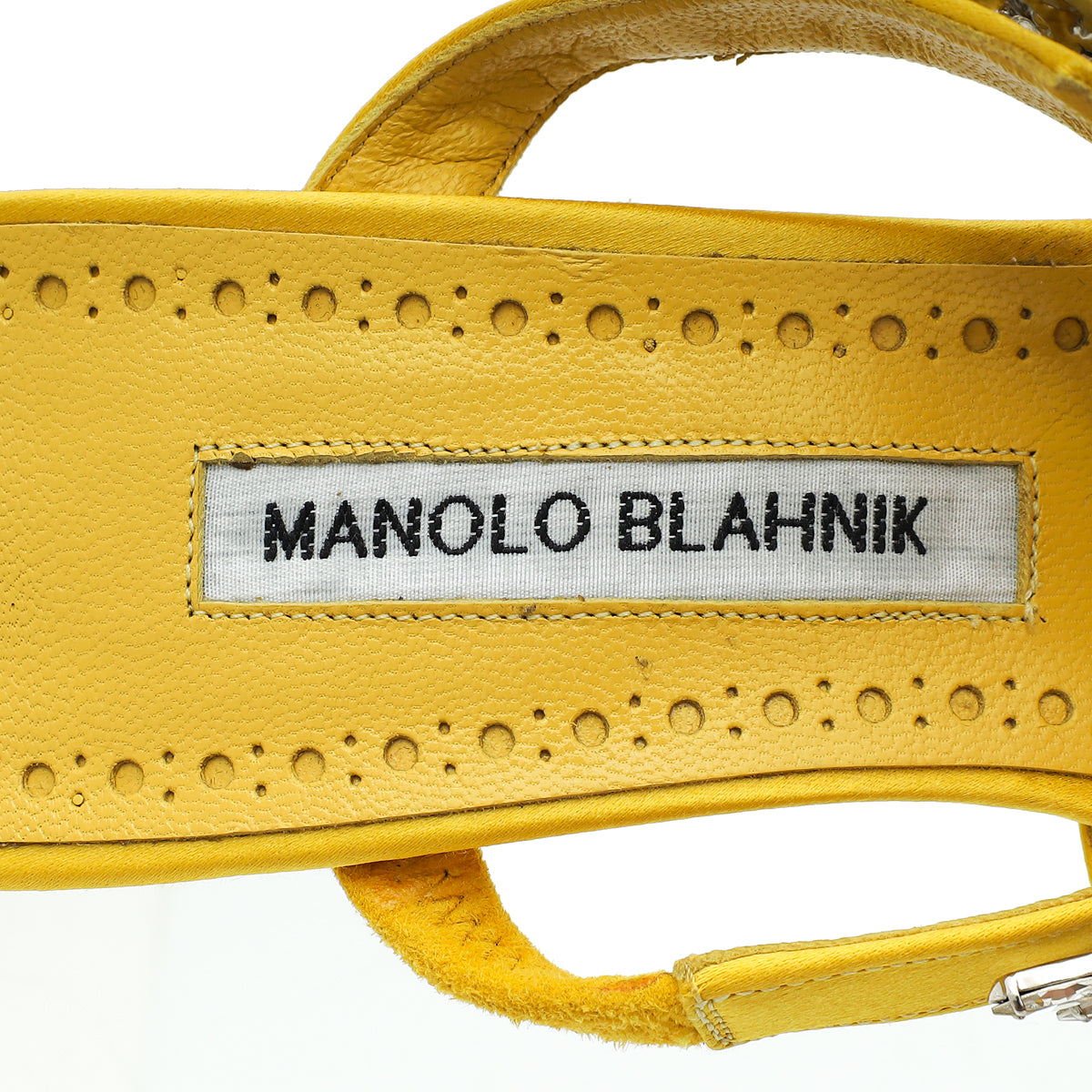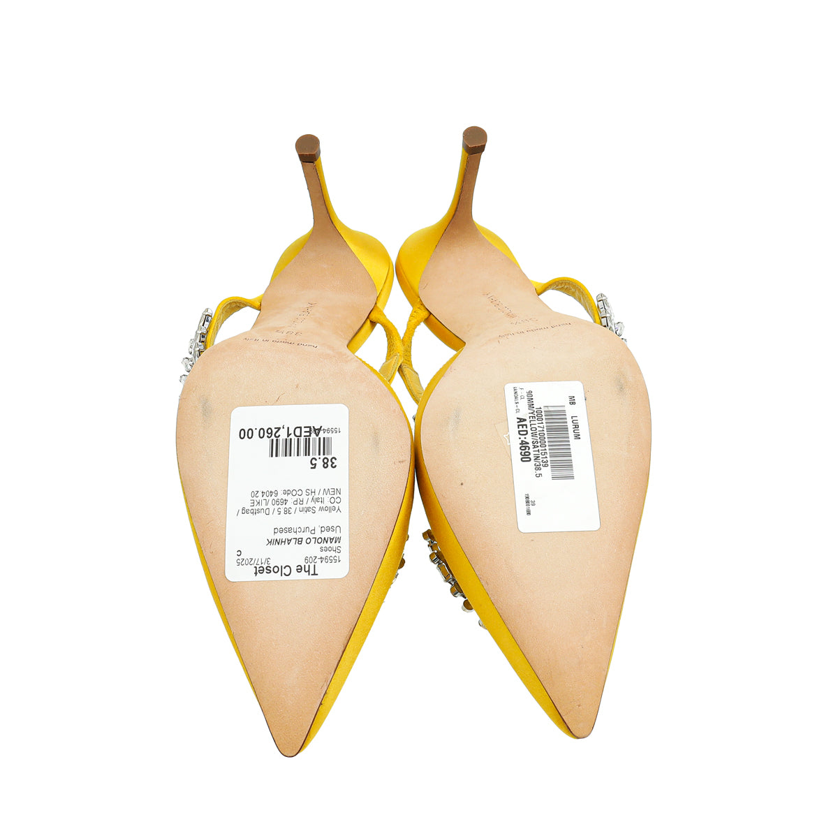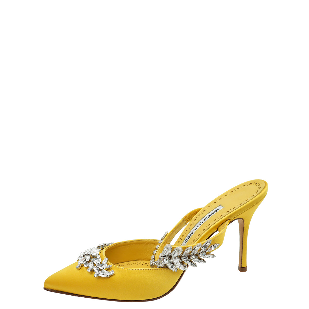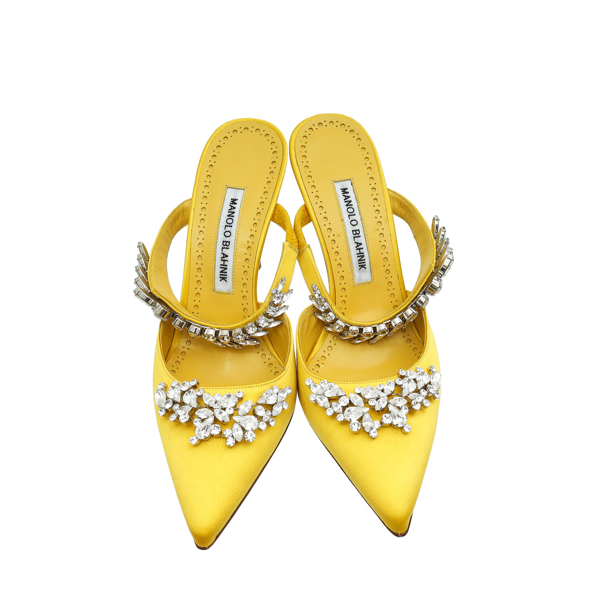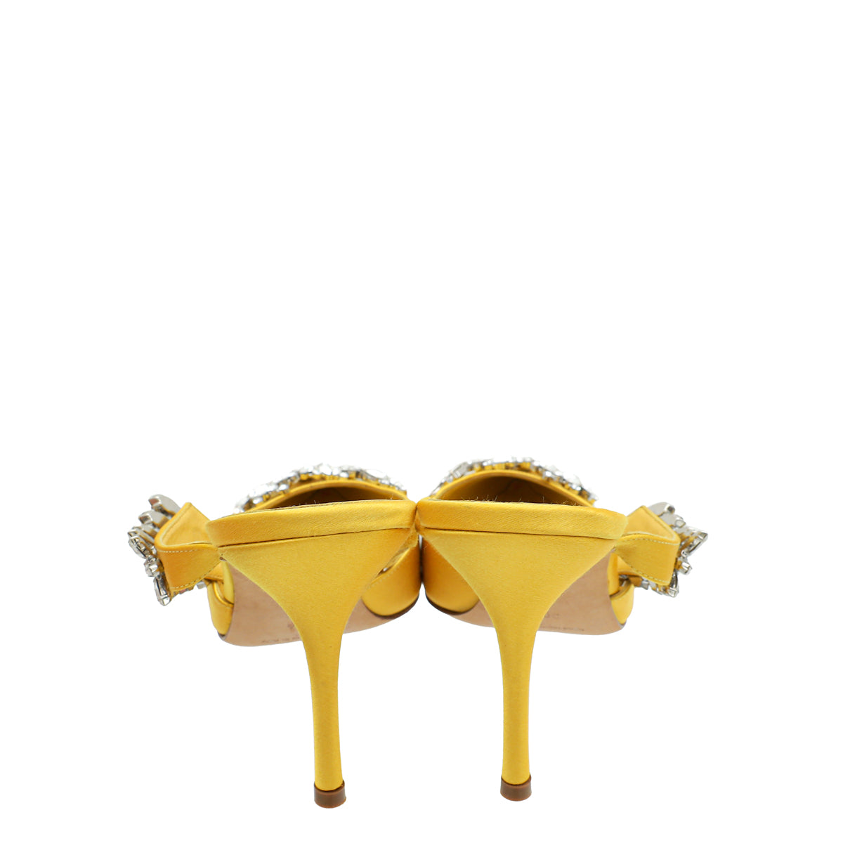 Manolo Blahnik Yellow Lurum Satin Crystal Slingback Mules 38.5