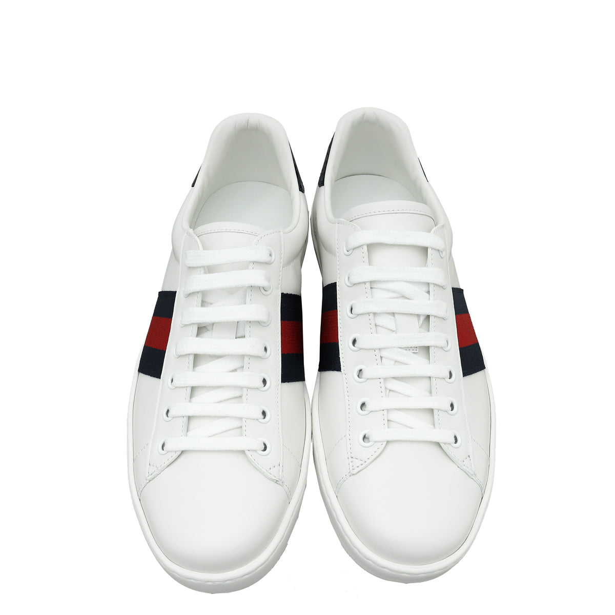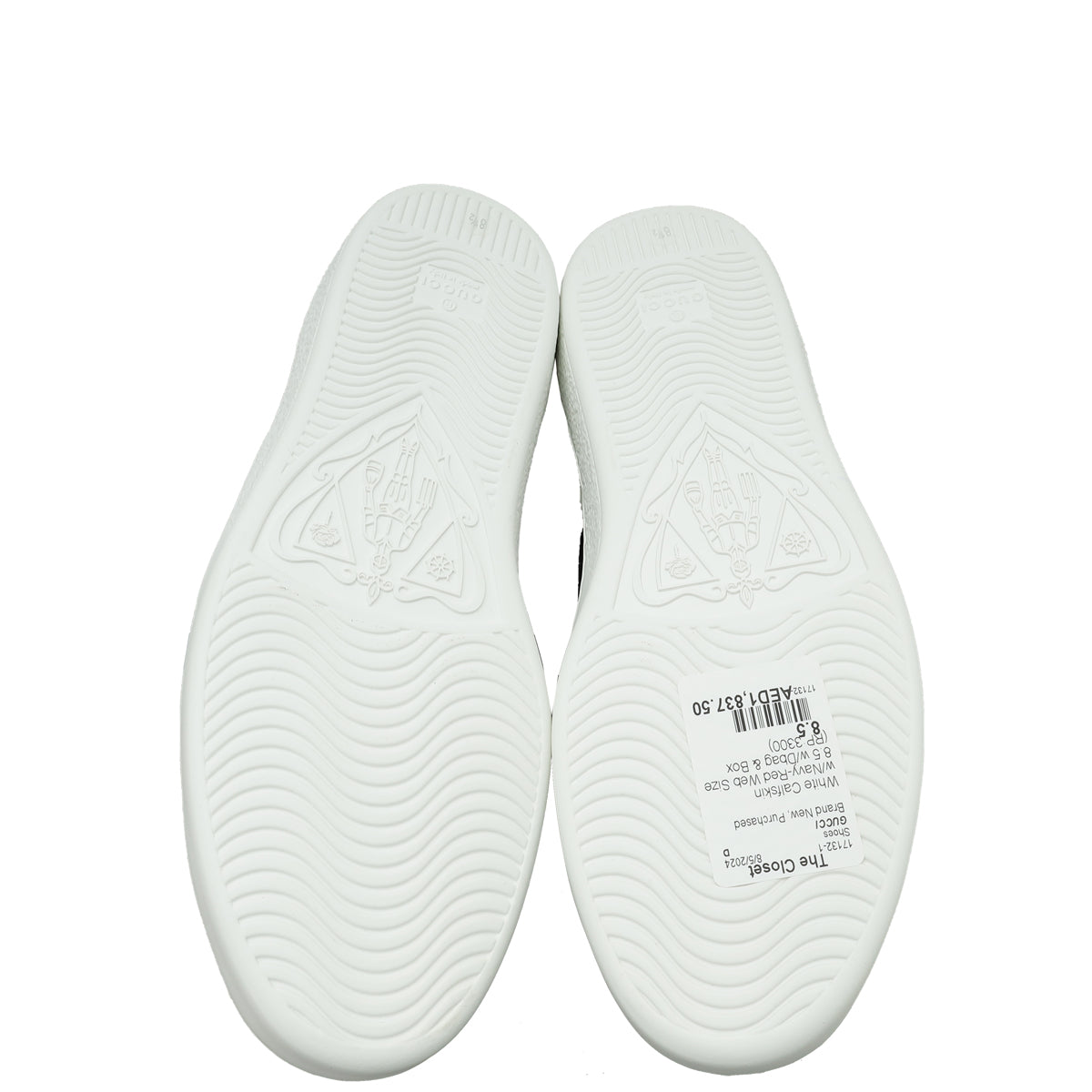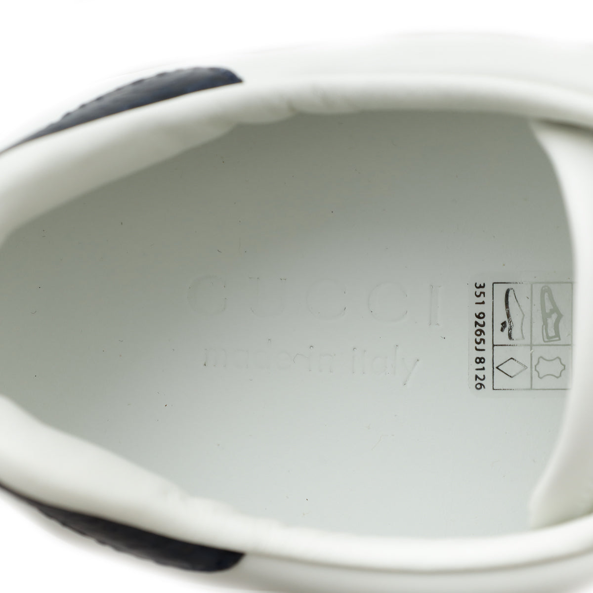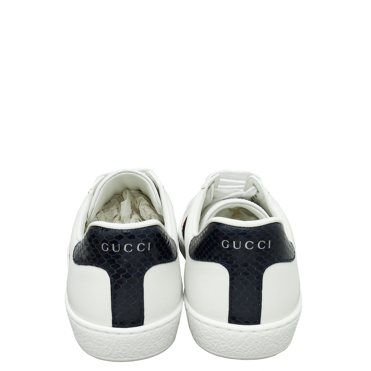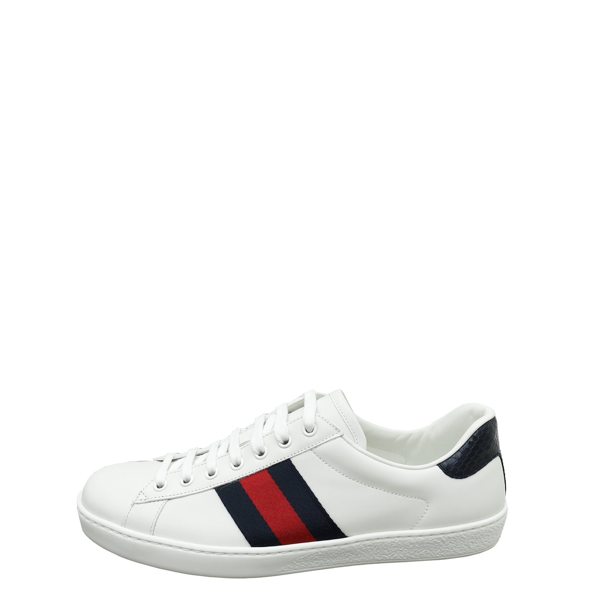 Material: White Calfskin Leather and Navy/Red Web and Navy Snakeskin Leather Detail on The Heel