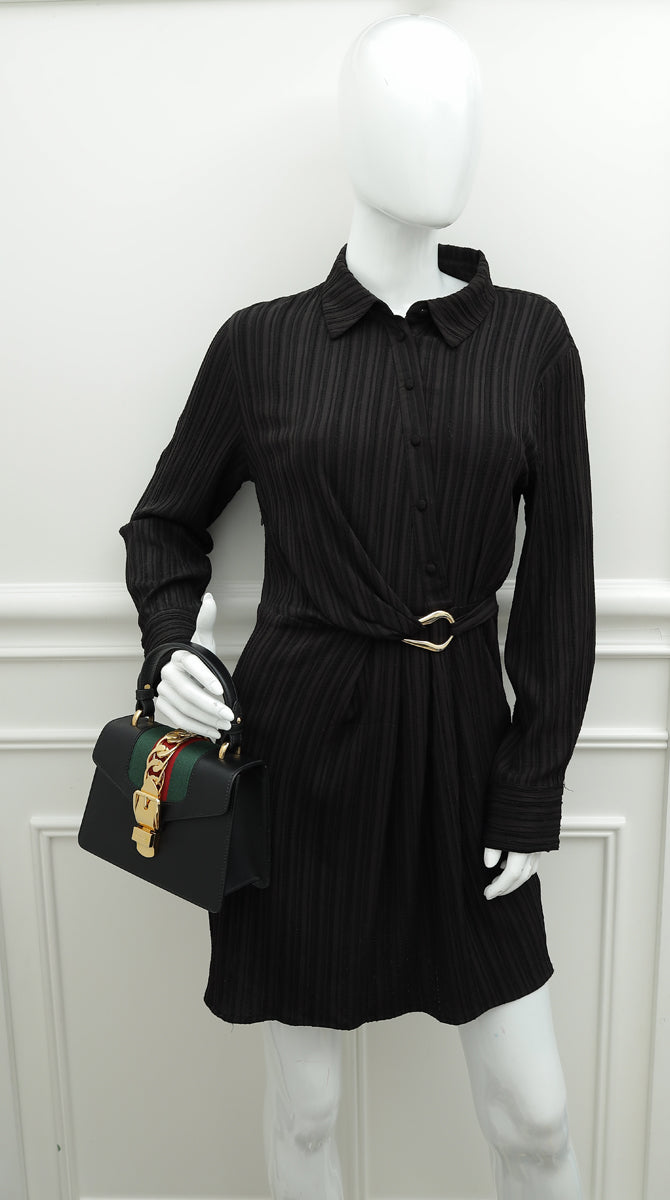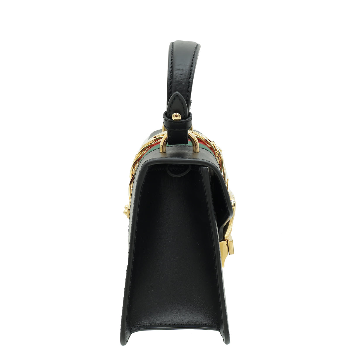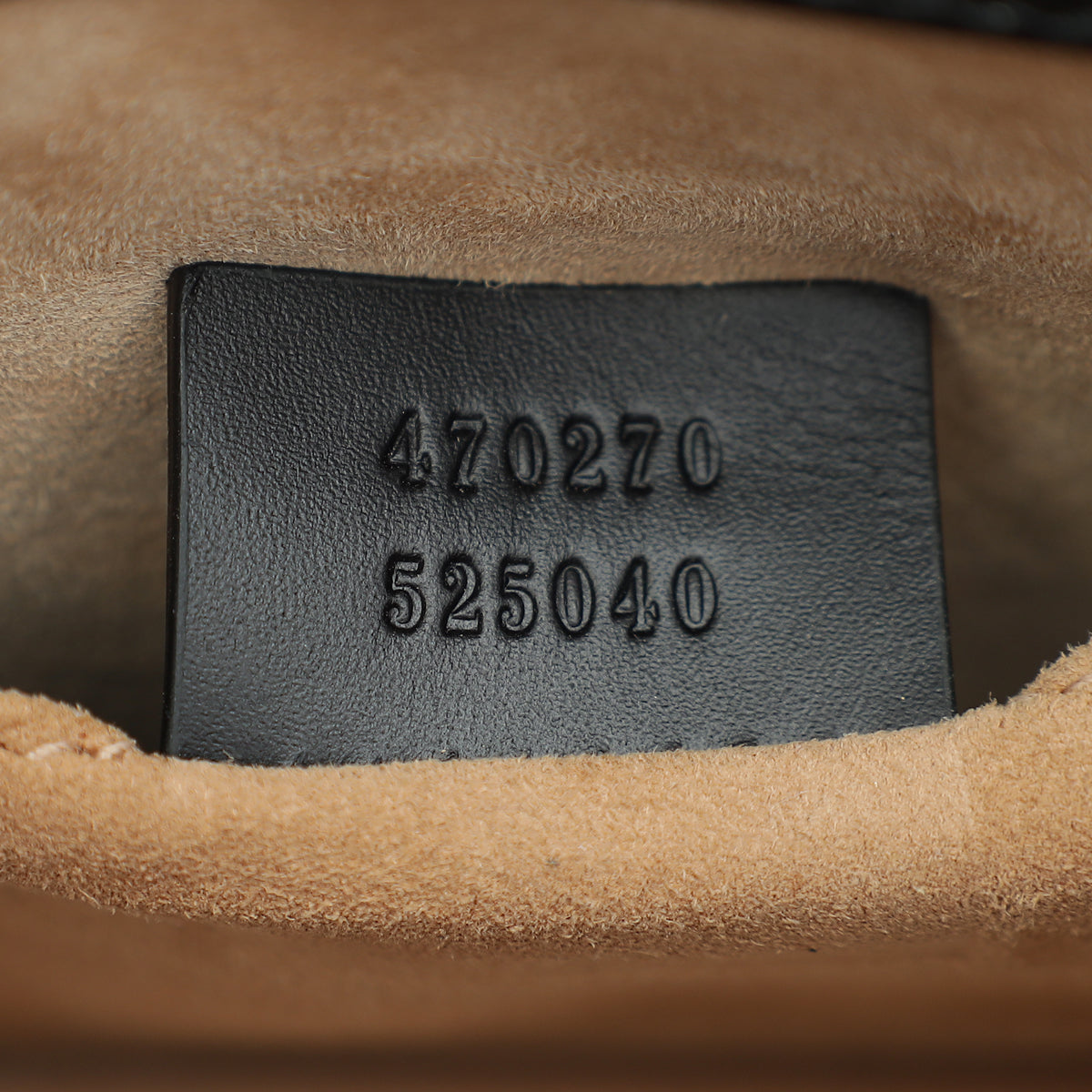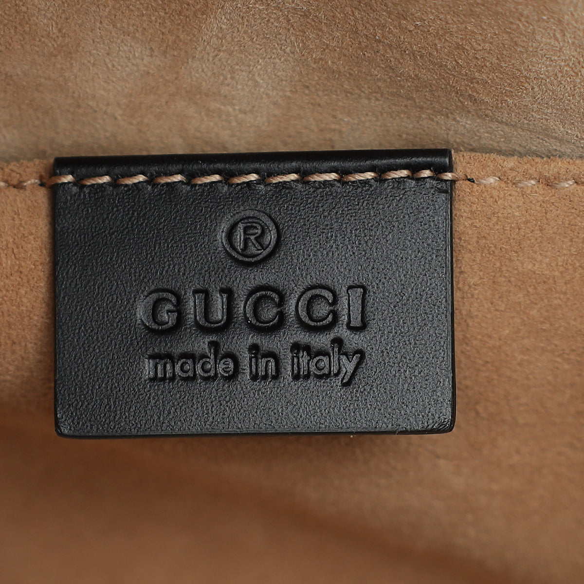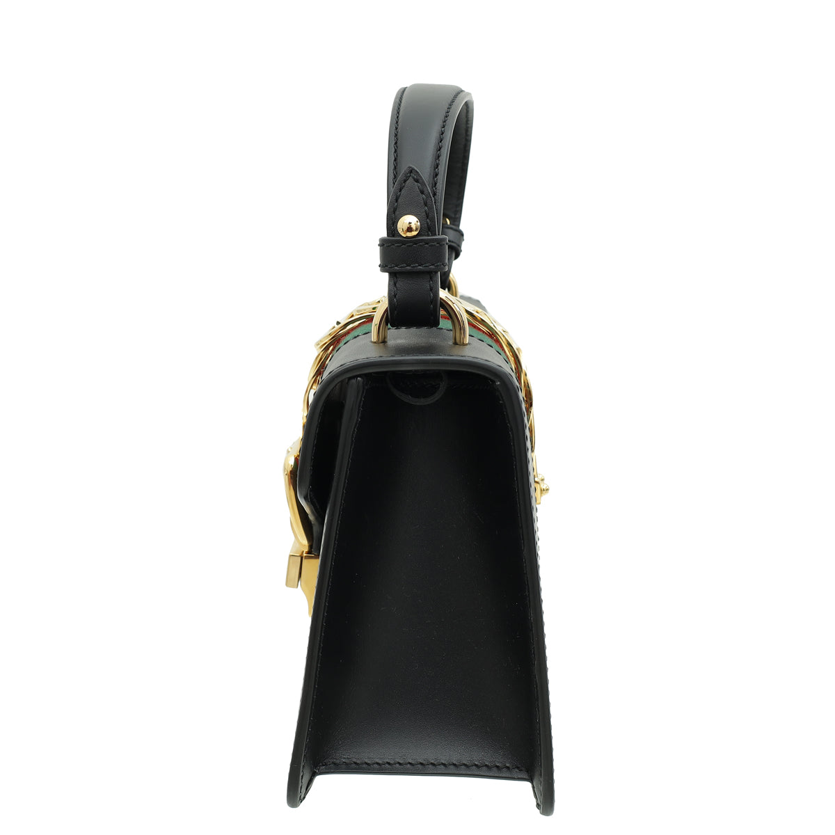 Material: Black Smooth Calf Leather with Green/Red Web Detail and Red/Blue/White Fabric Shoulder Strap