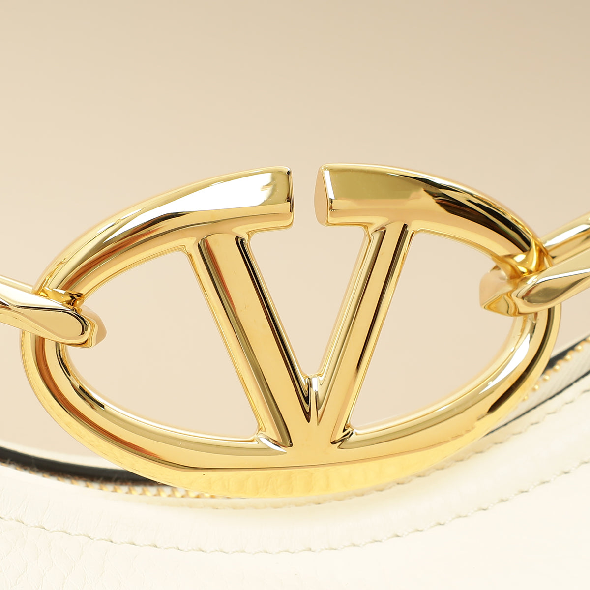 Valentino Ivory VLogo Moon Medium Hobo Bag W/ Chain