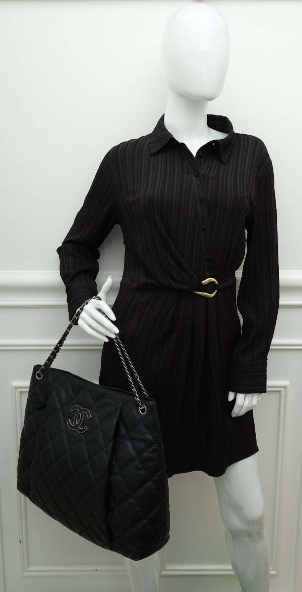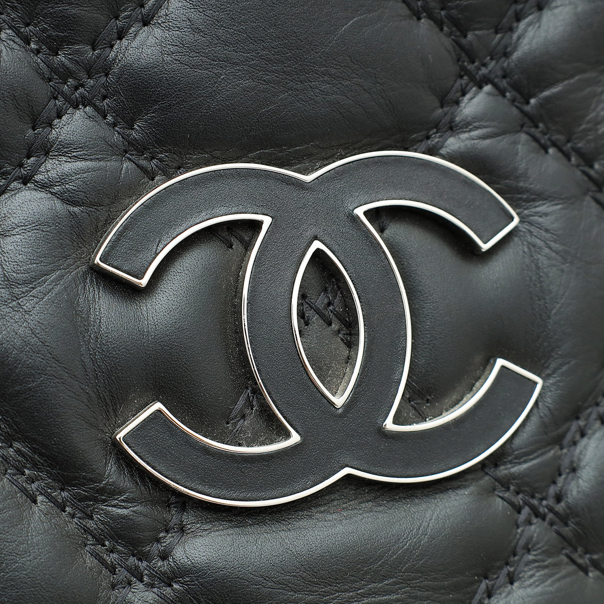 Chanel Black CC Double Stitch Hamptons Large Shopping Tote Bag