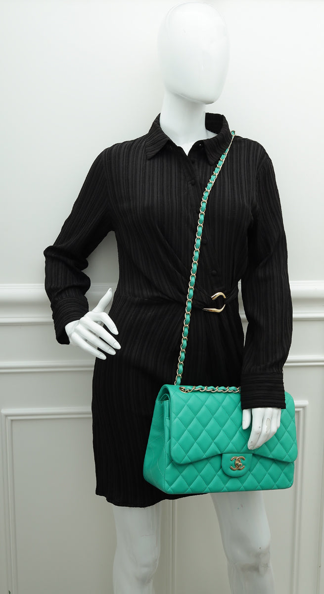 Chanel Green CC Classic Double Flap Jumbo Bag