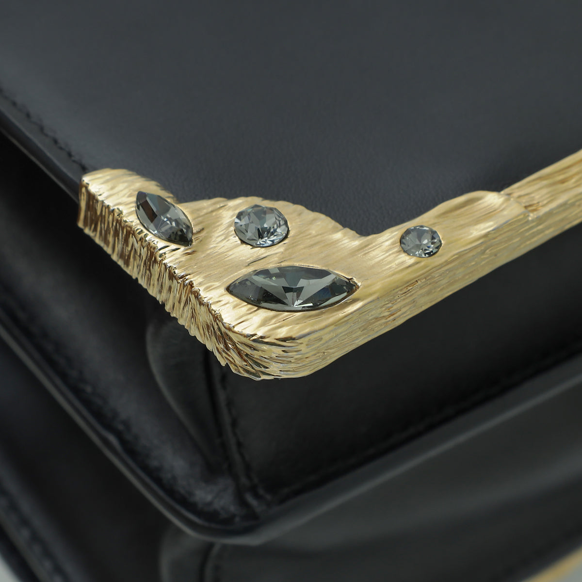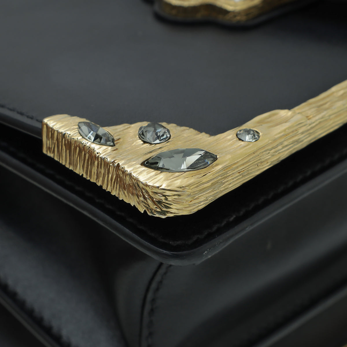 Material: Black Saffiano and Brown Calf Leather with Crystal