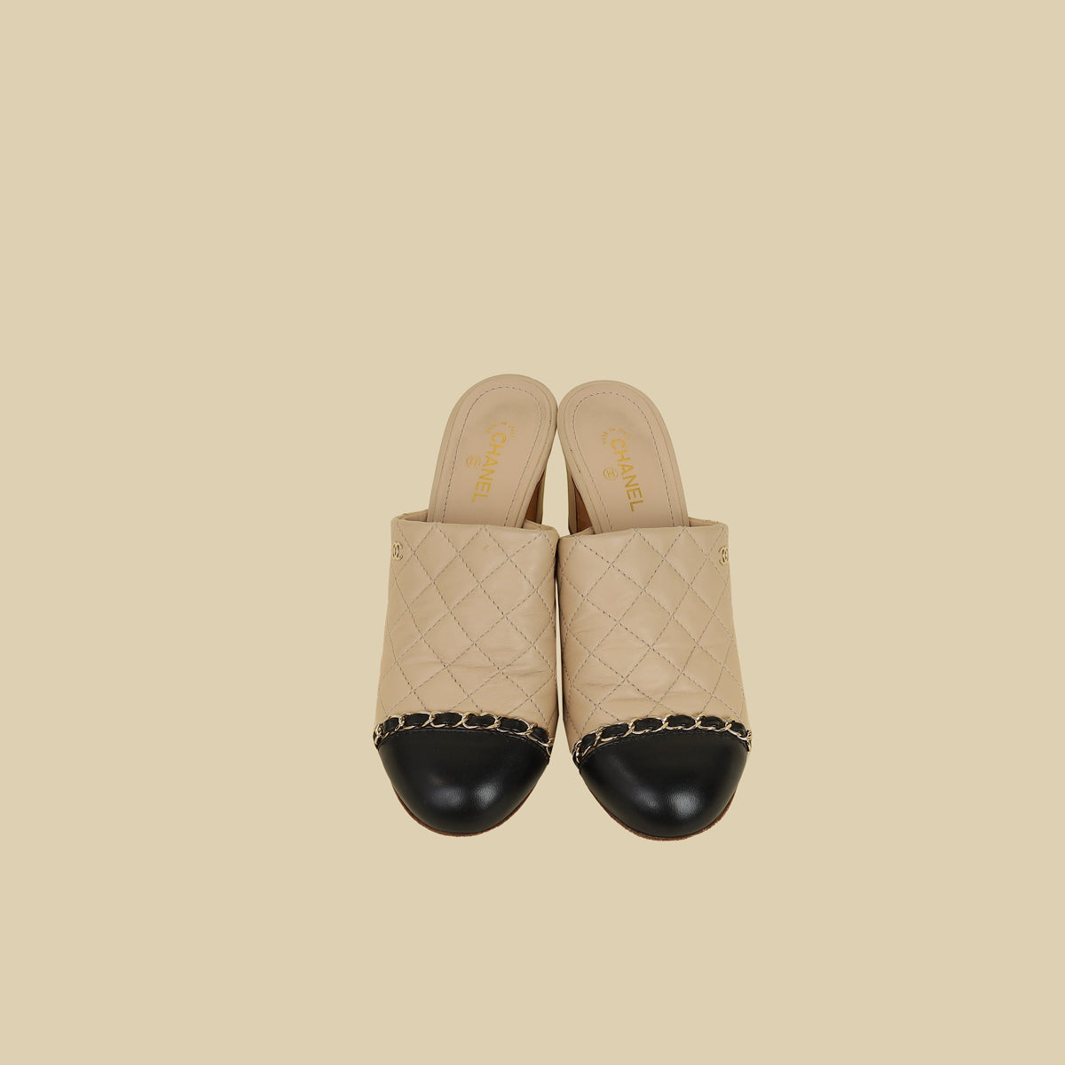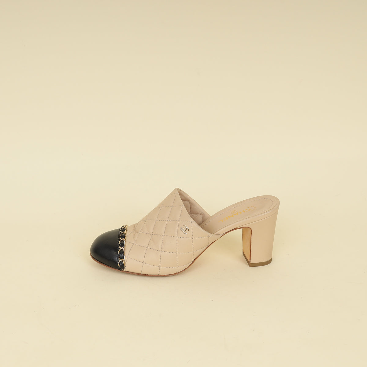 Chanel Bicolor CC Cap Toe Chain Quilted Mules 37.5