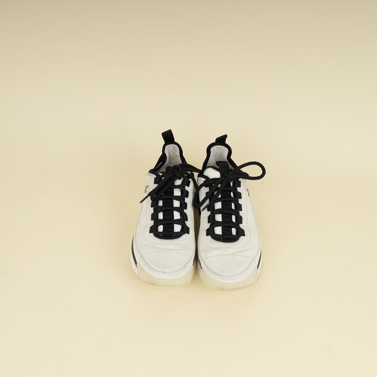 Chanel Bicolor CC Lace Up Sneakers 37.5