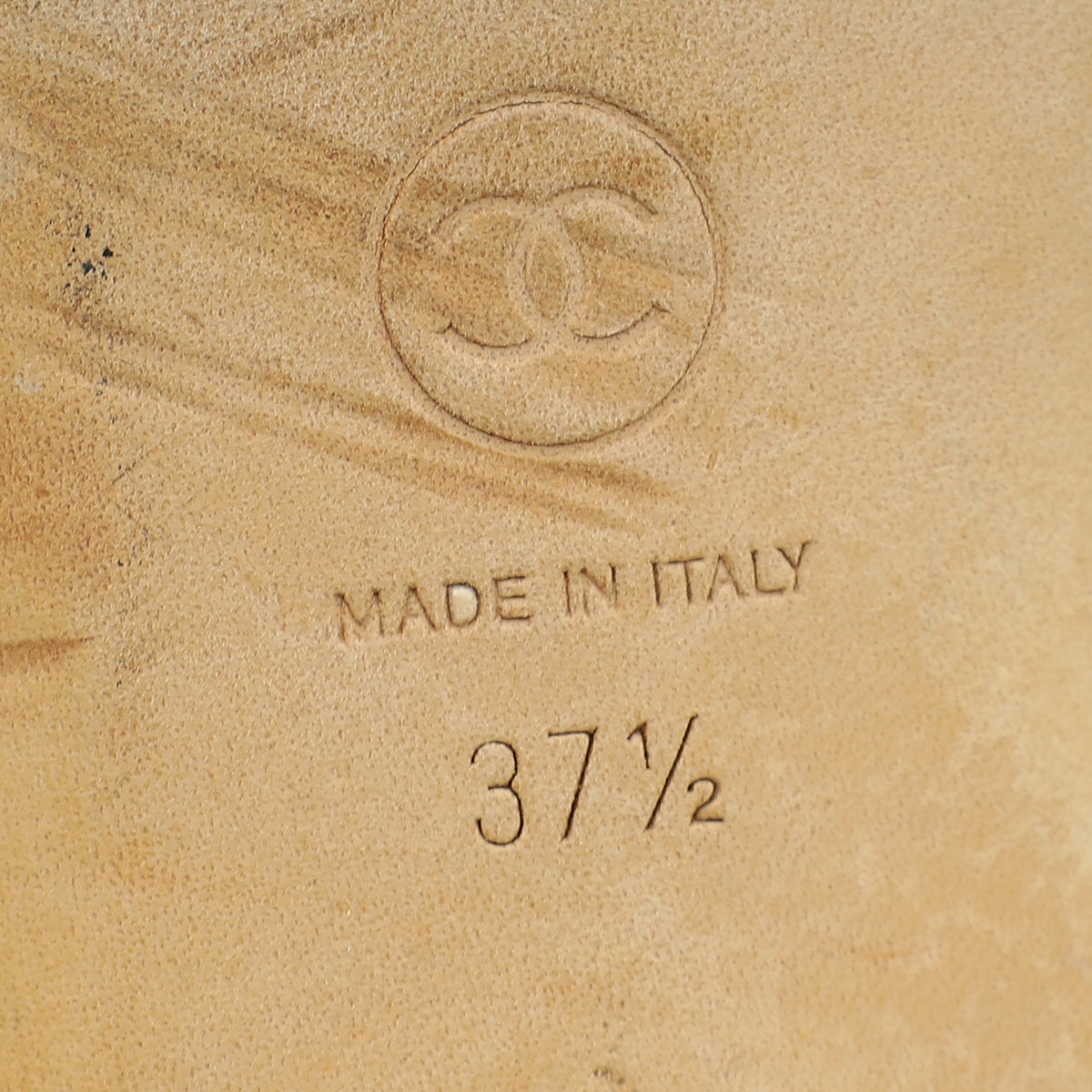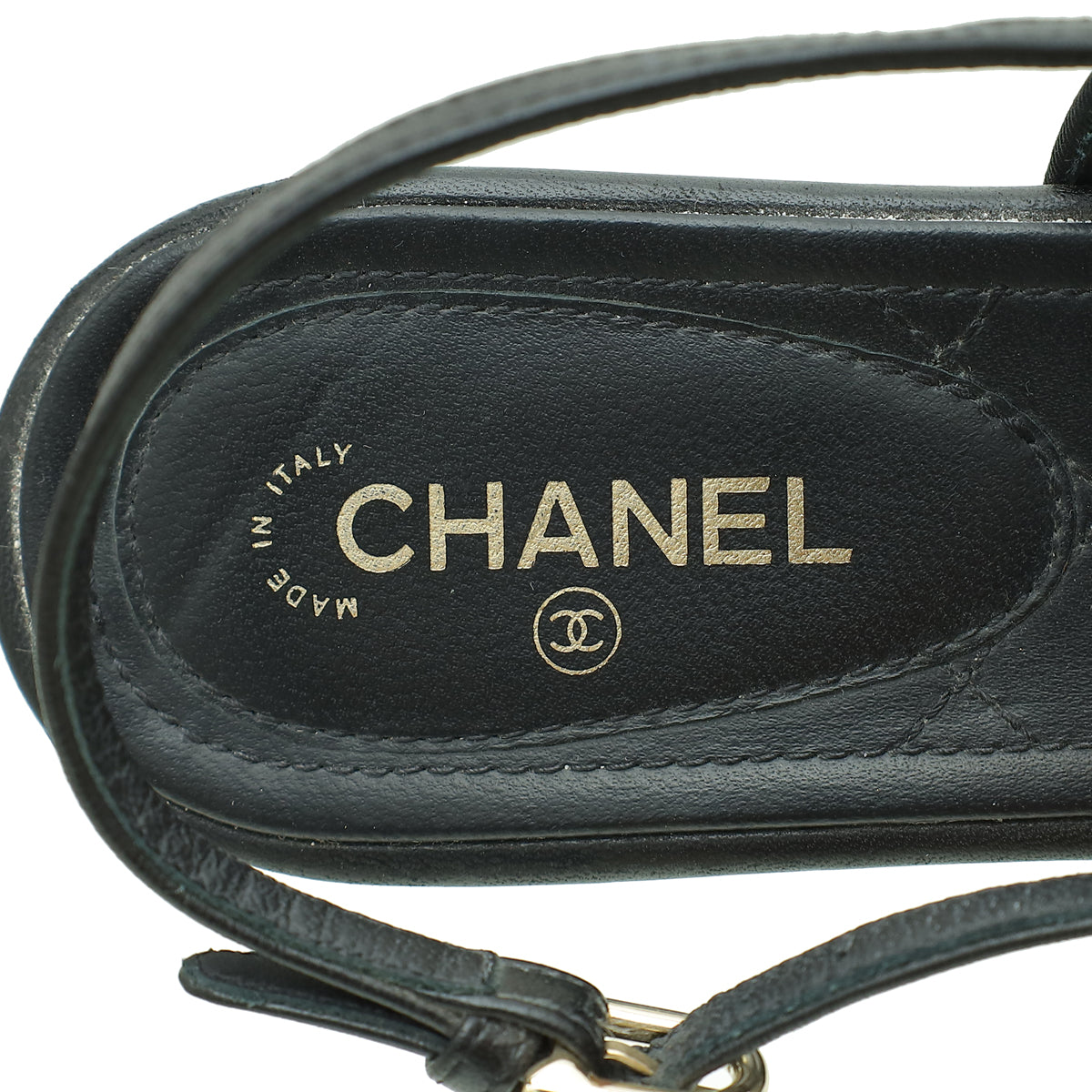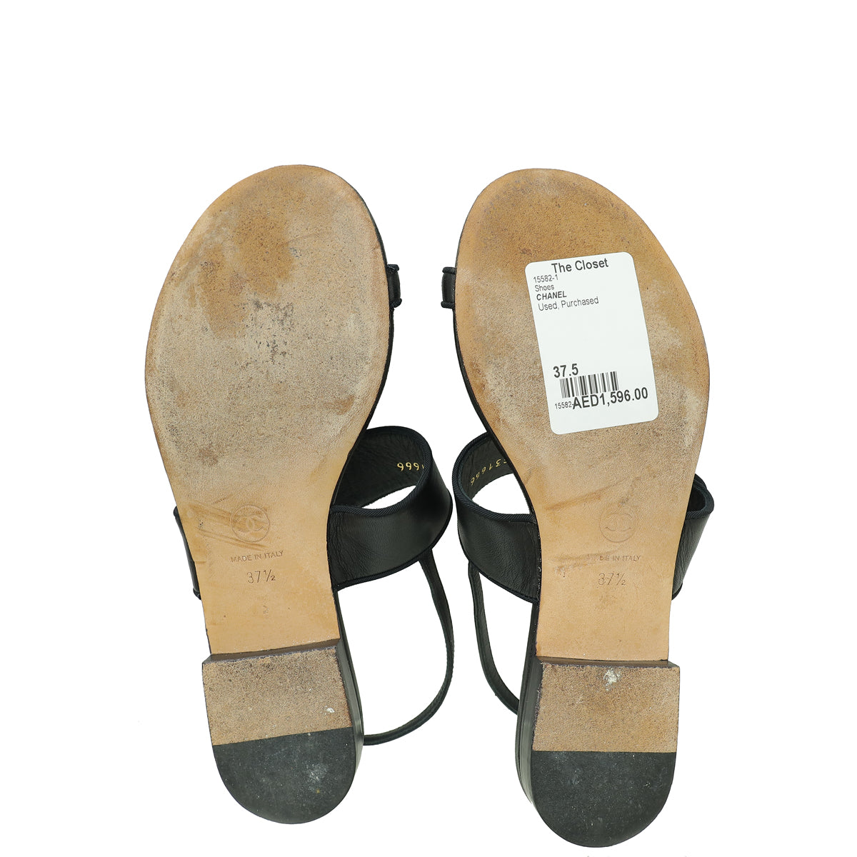 Chanel Black CC Pearl Camellia Flower Flat Sandal 37.5