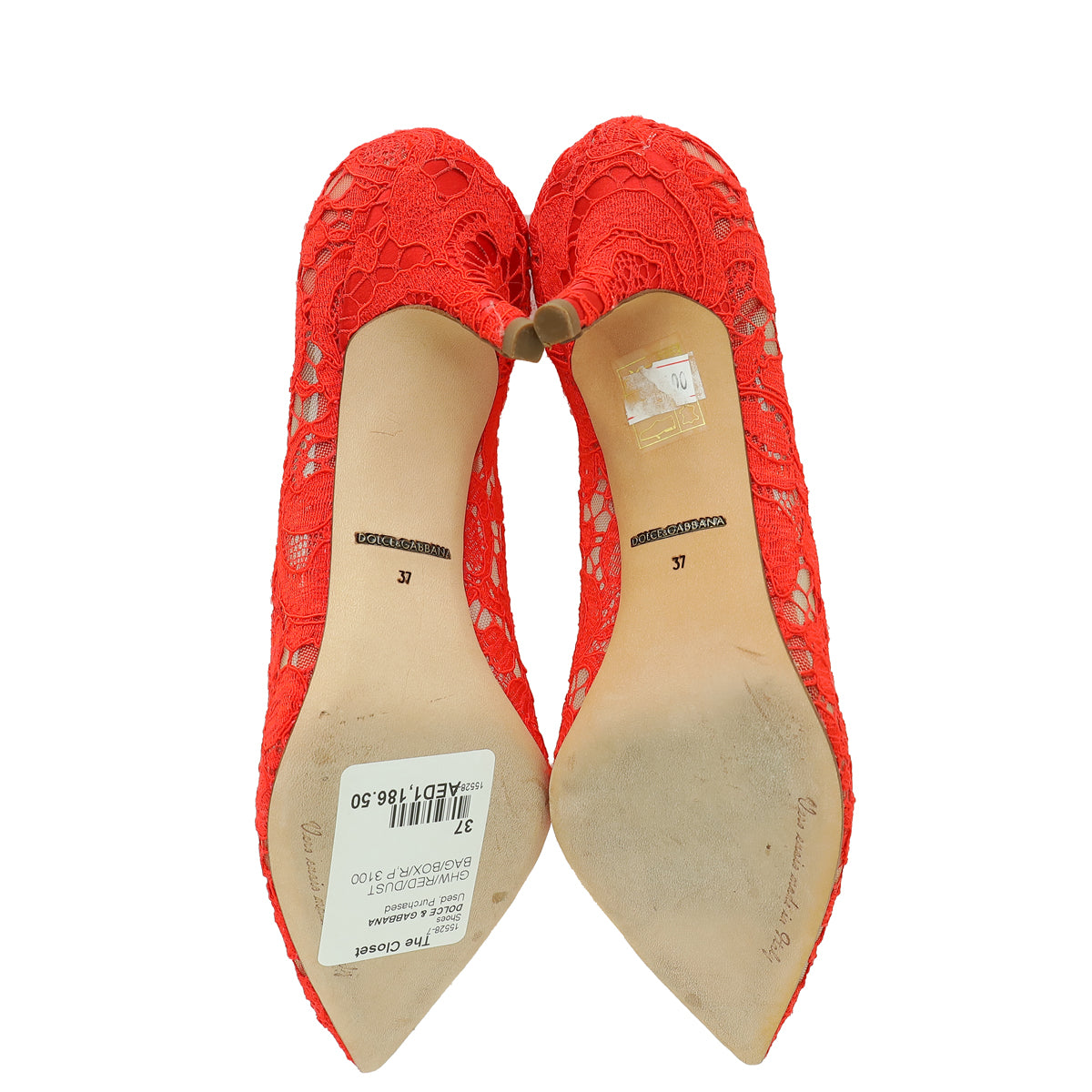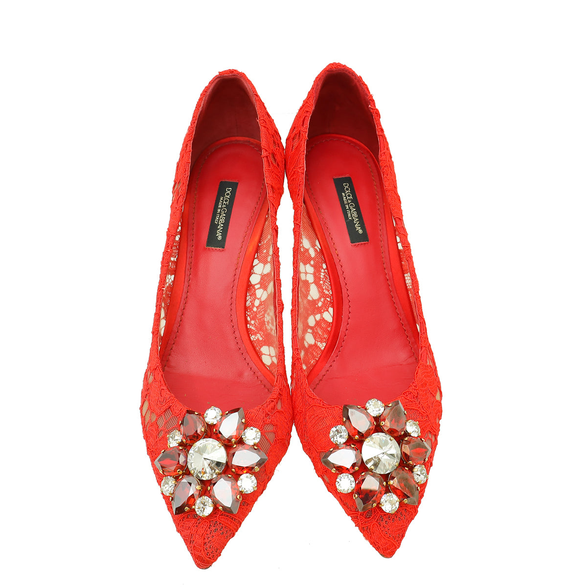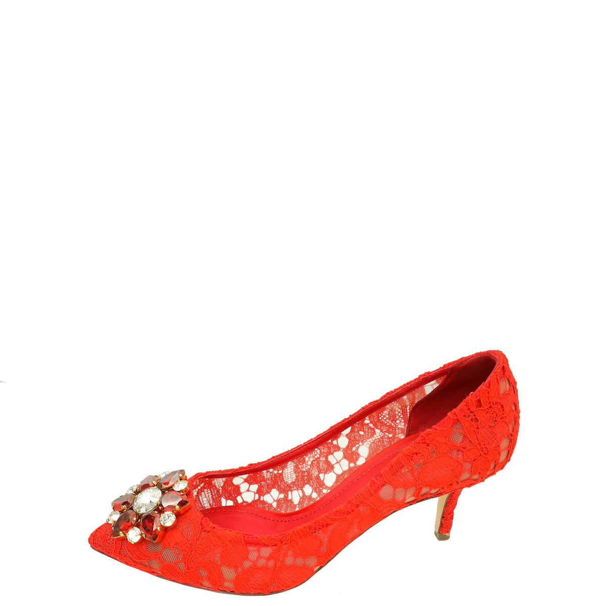 Dolce & Gabbana Red Bellucci Lace Embellished Pump 37