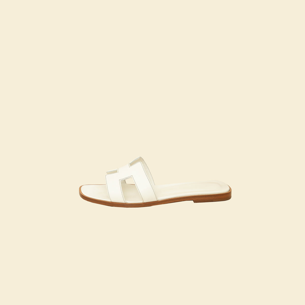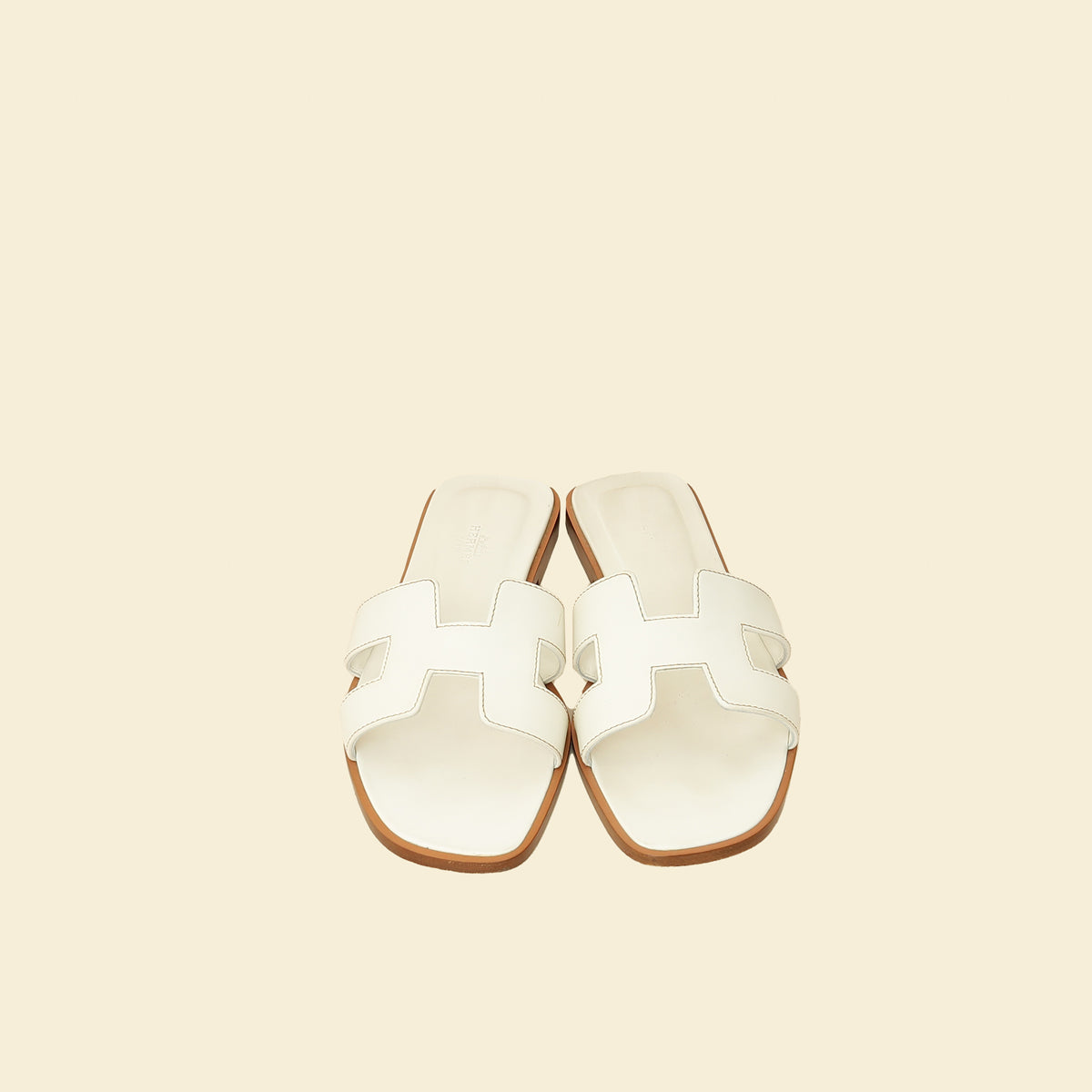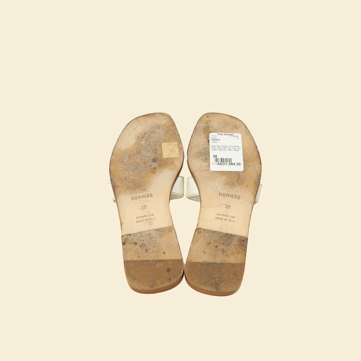 Hermes Blanc Oran Sandals 38-Hermes-THE CLOSET
