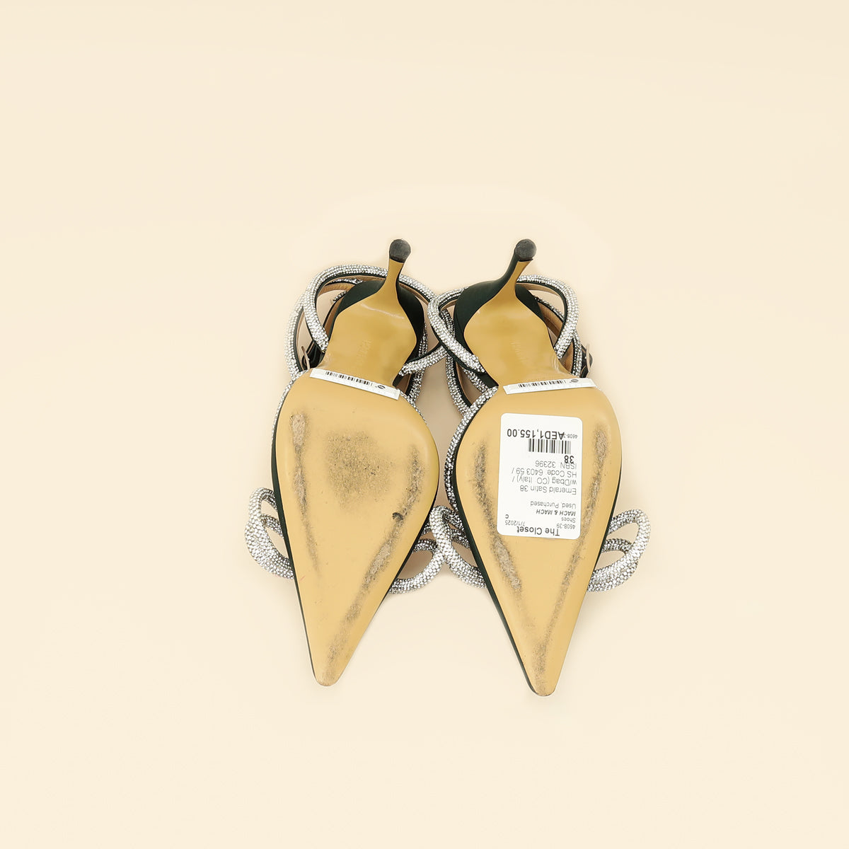Mach & Mach Emerald Satin Crystal Double Bow Pumps 38