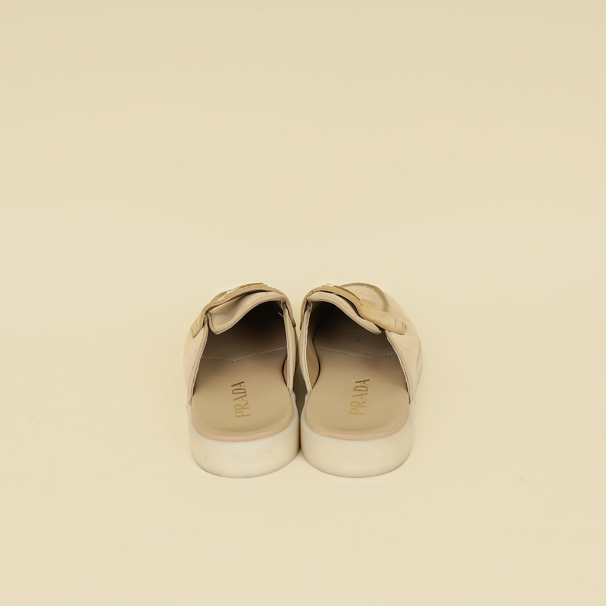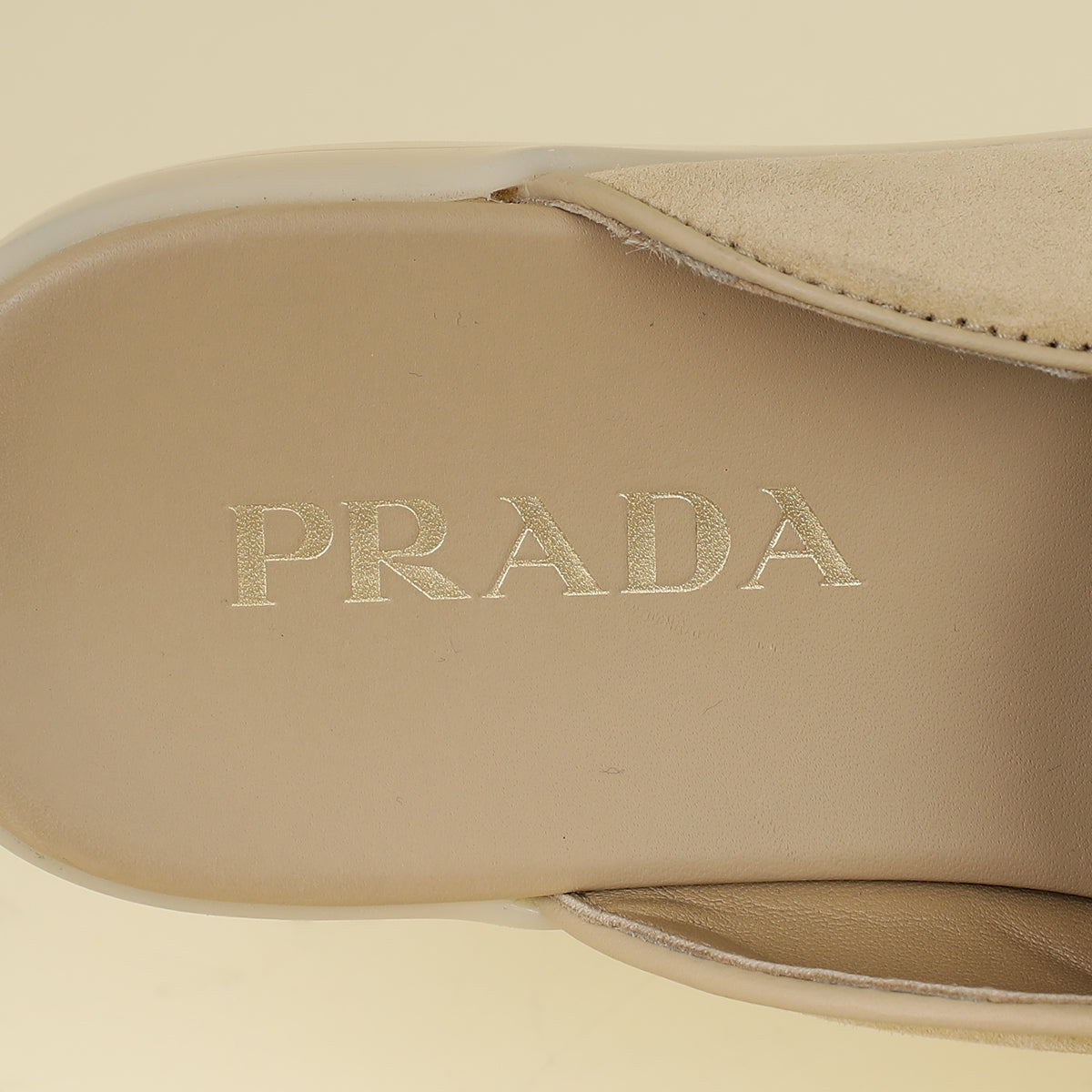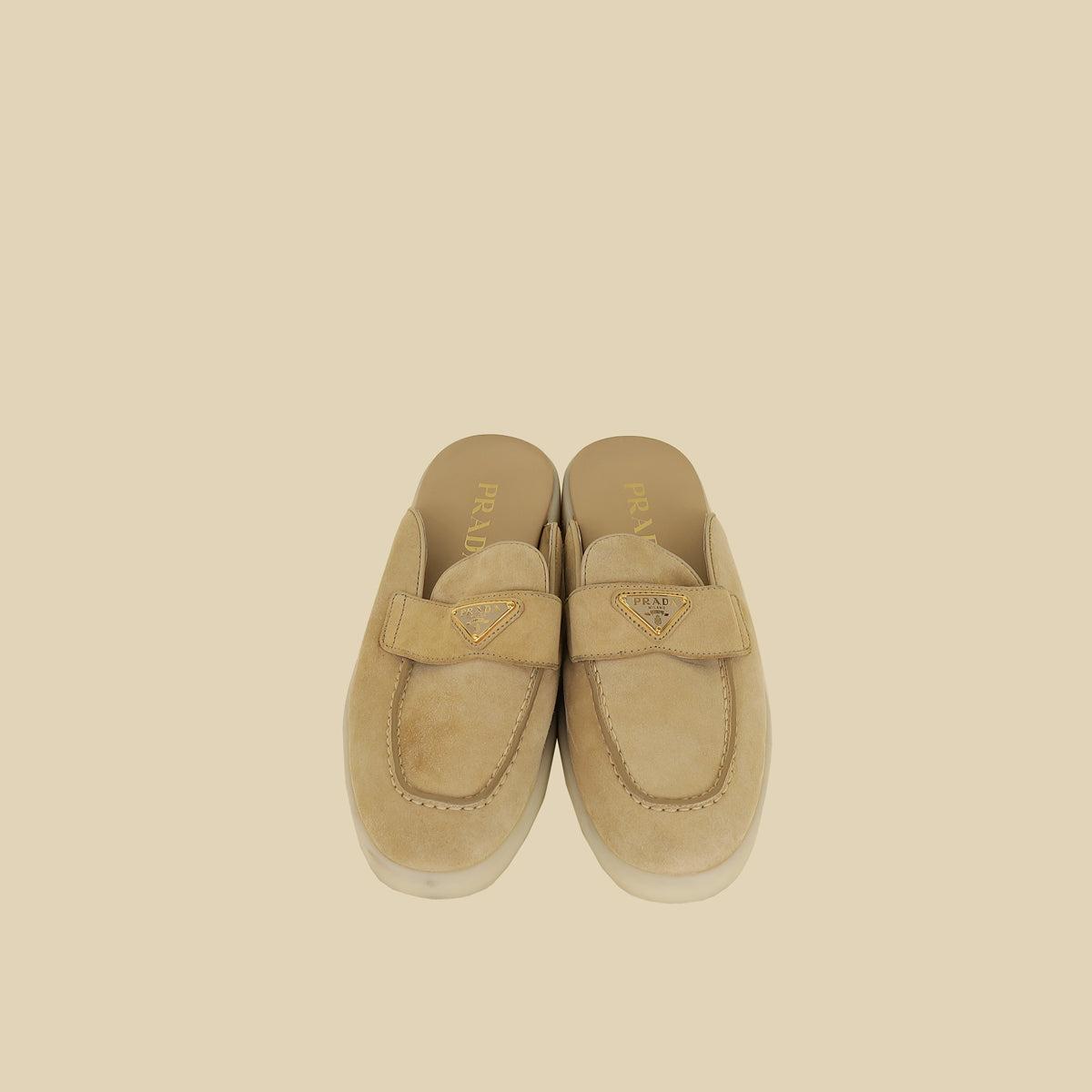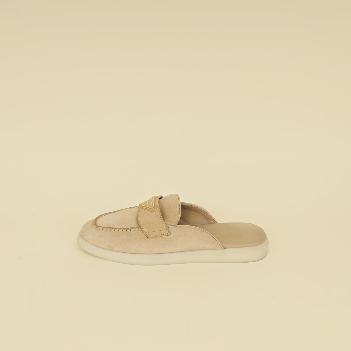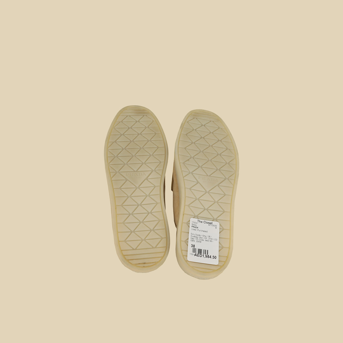 Prada Ecru Logo Suede Loafers 38-Prada-THE CLOSET