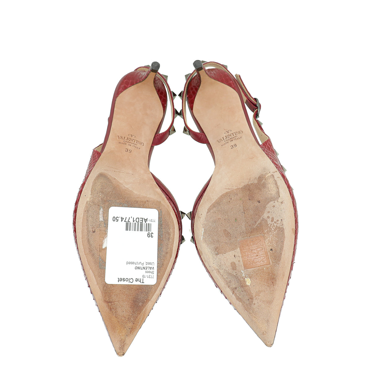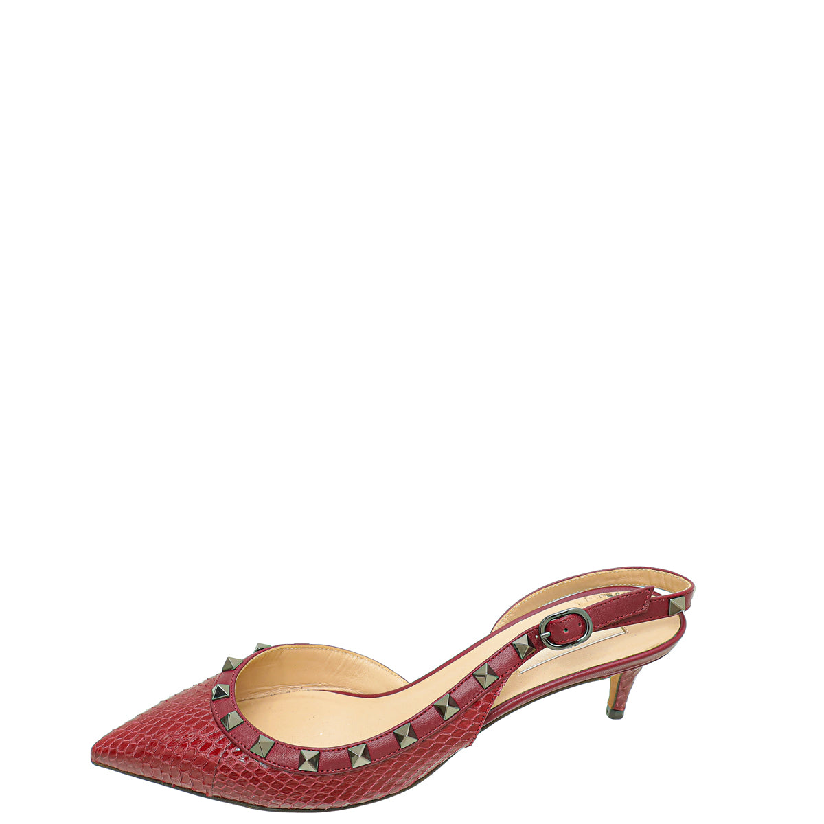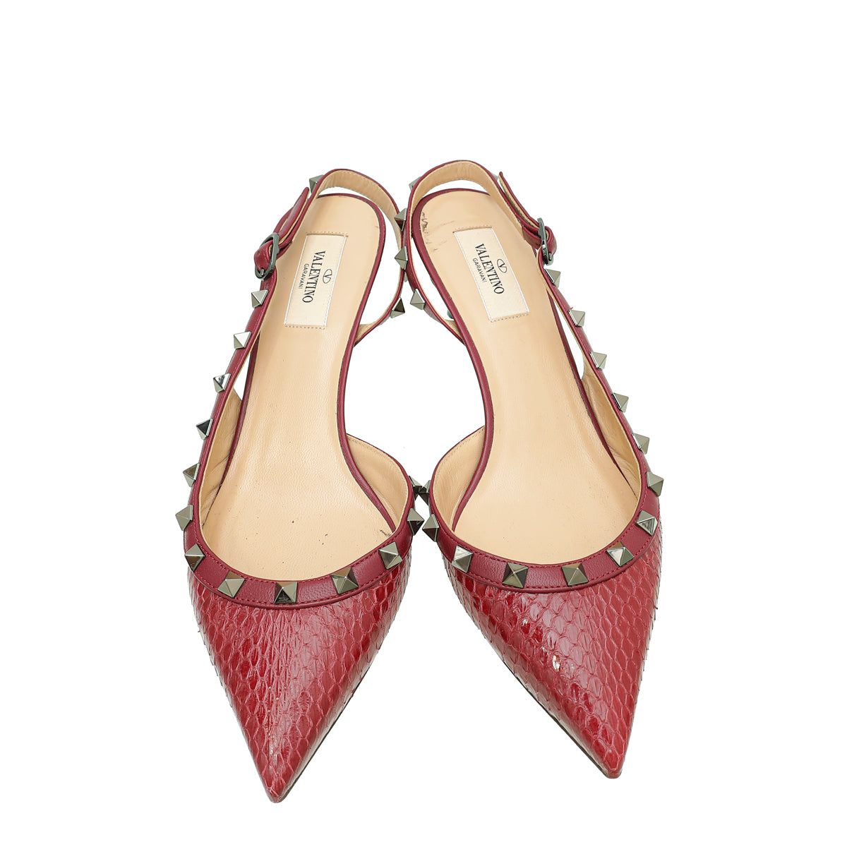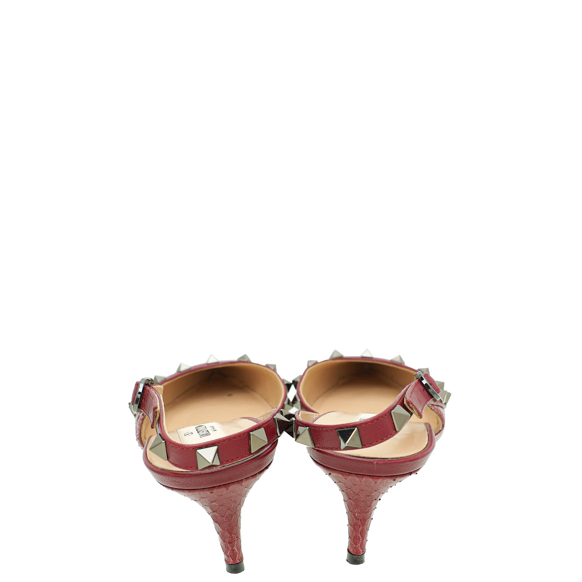 Valentino Burgundy Python Embossed Rockstud Slingback Pump 39