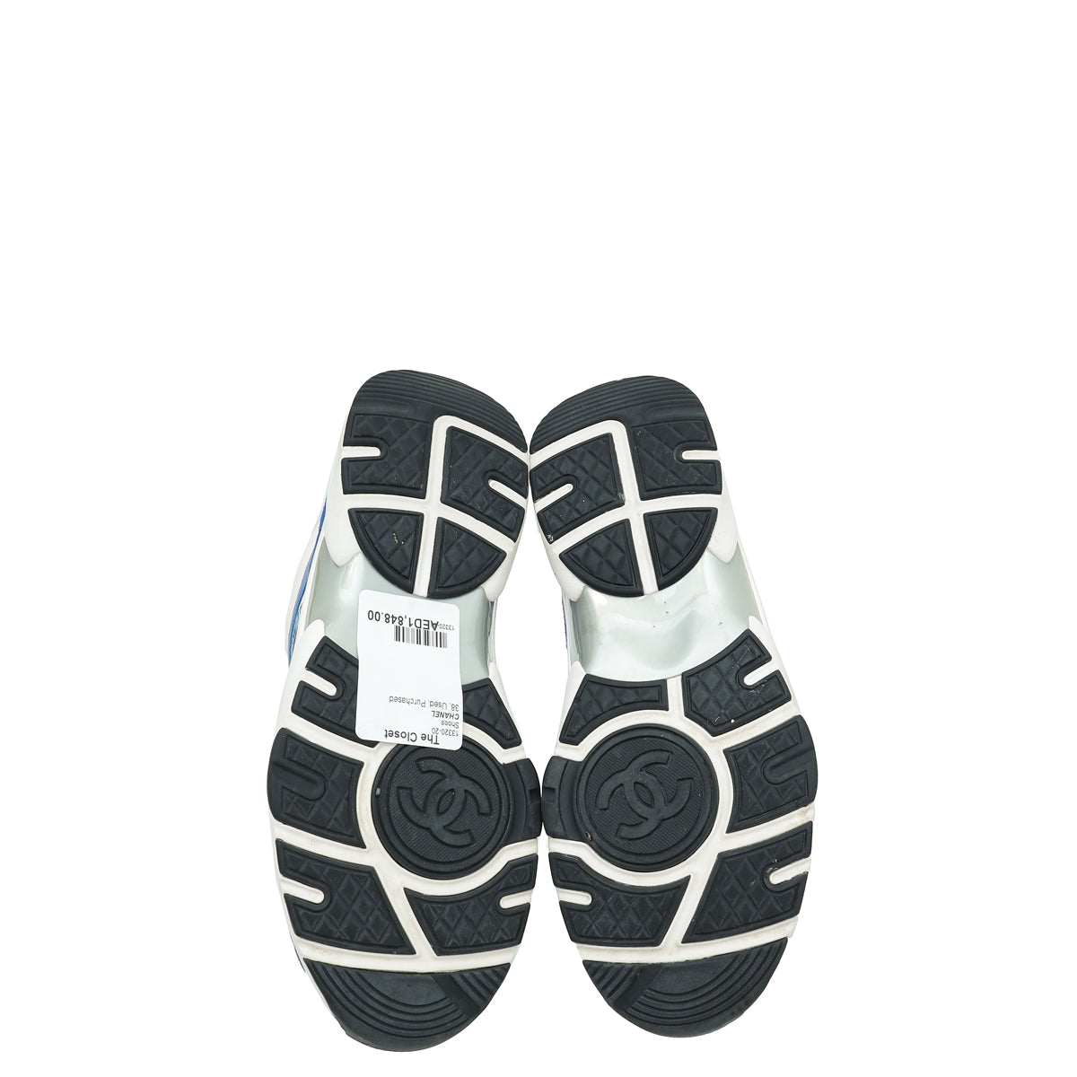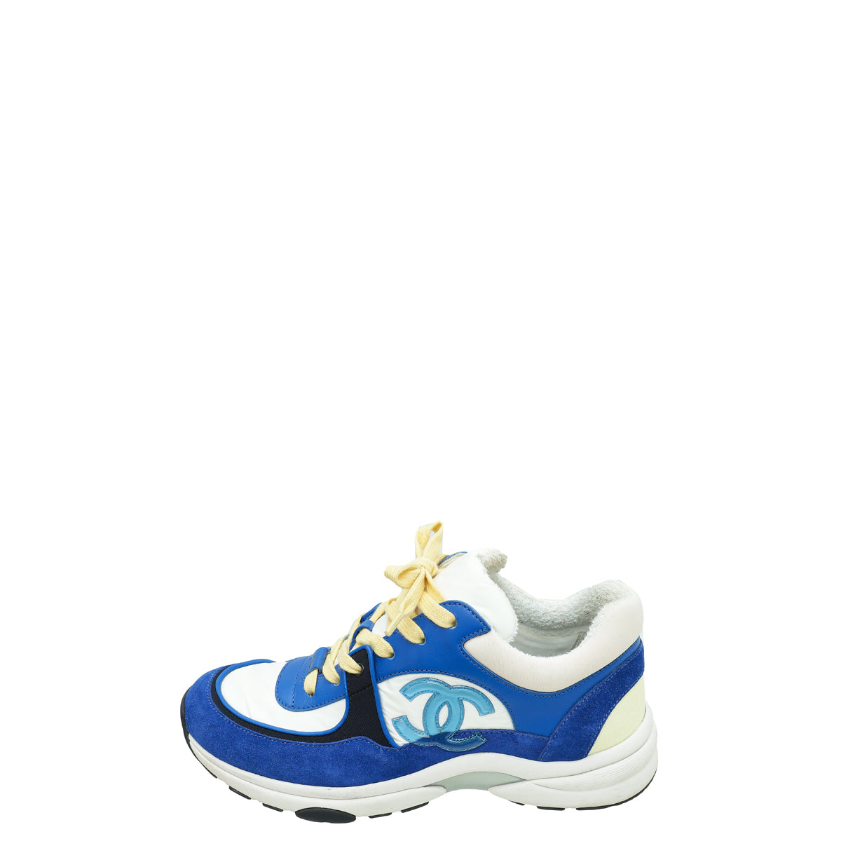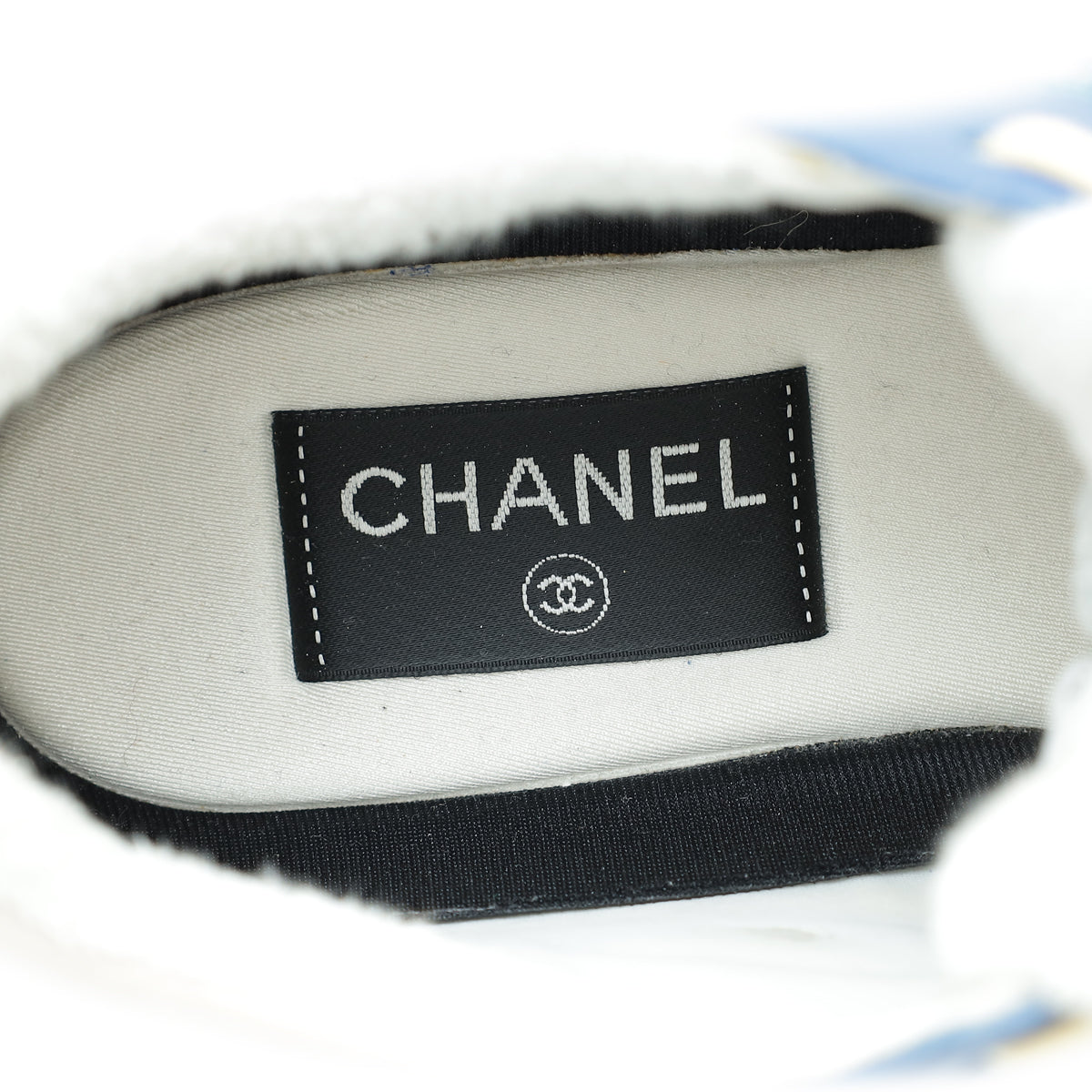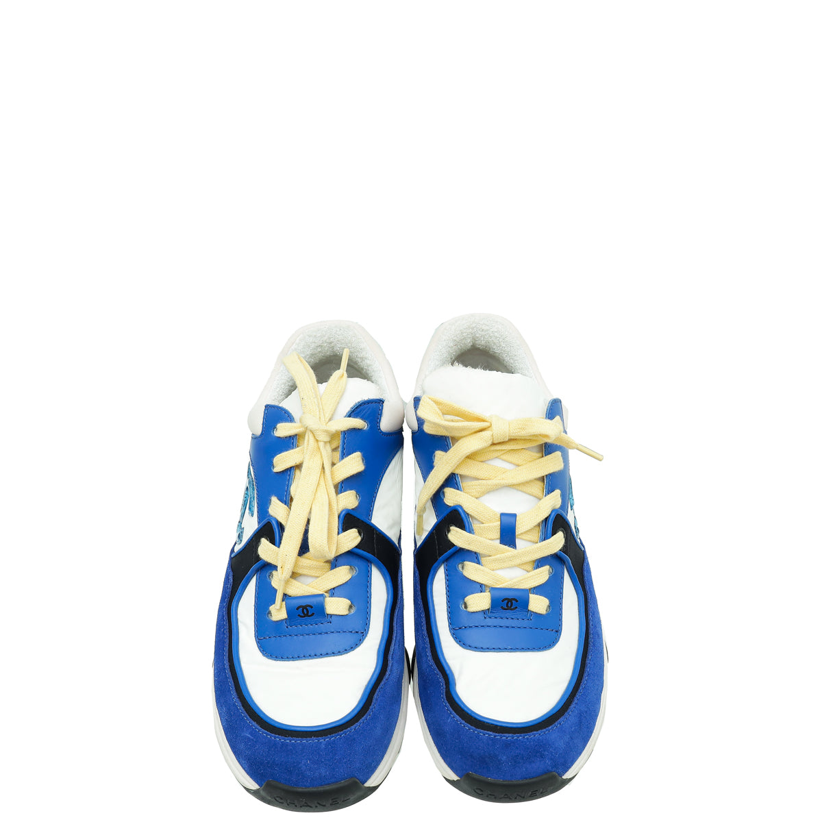 Material: White Nylon and Blue Leather with Blue Suede Trim and CC Logo