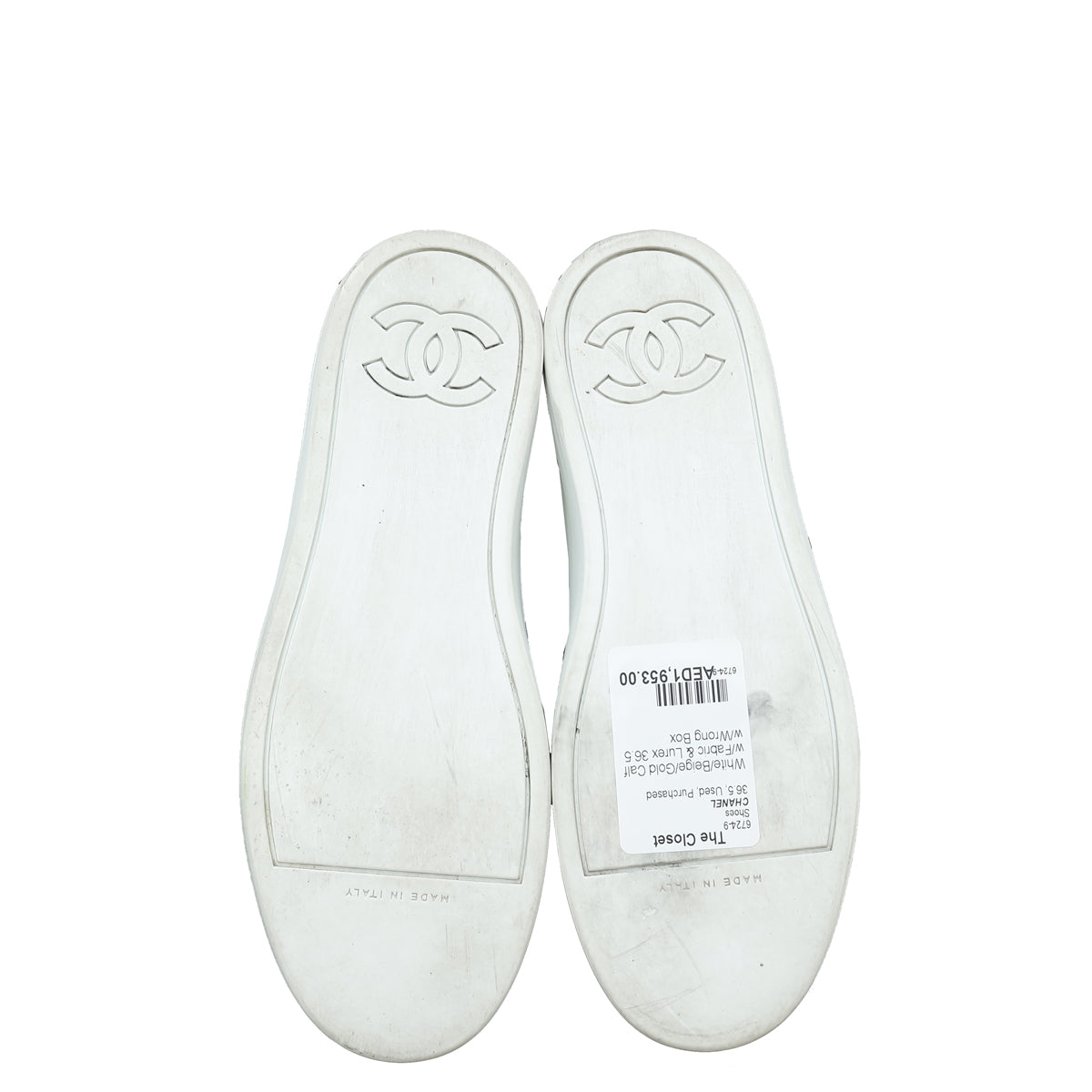 Material: Beige/Gold Fabric & Lurex and White Rubber