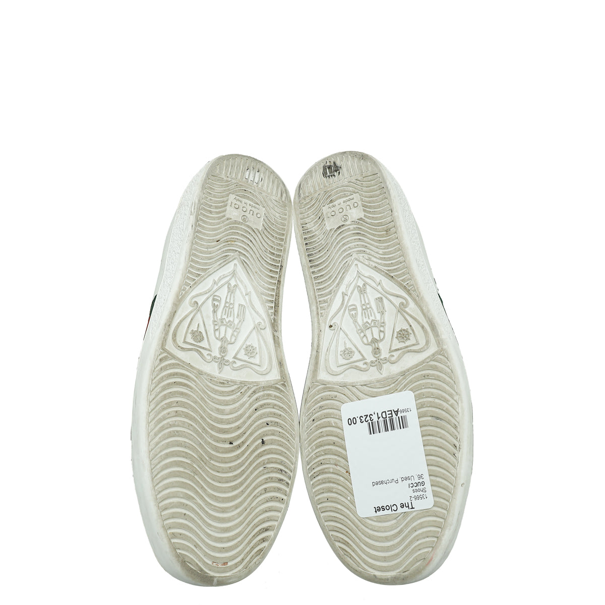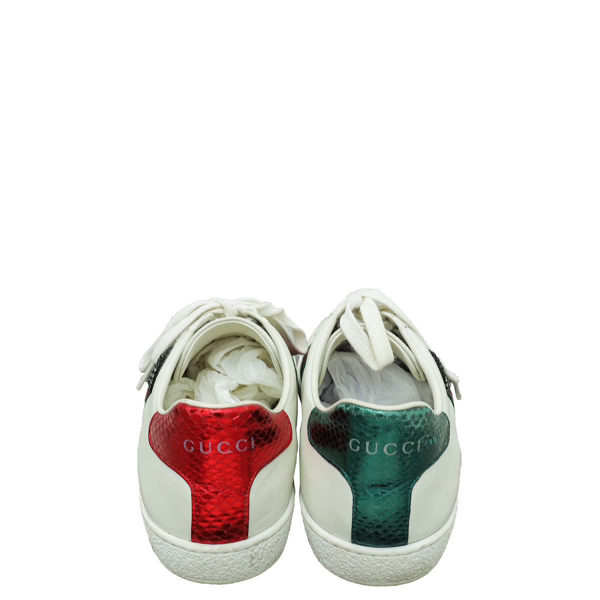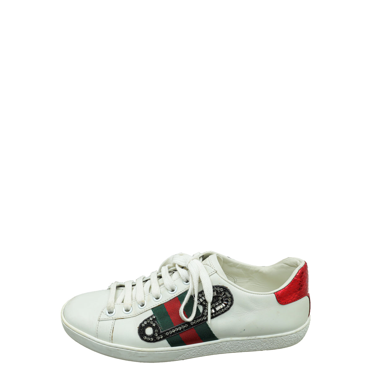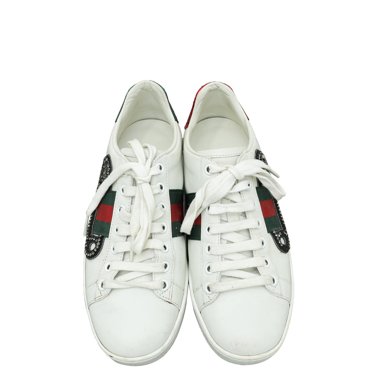 Gucci White Ace Pin Crystal Embroidered Sneaker 36