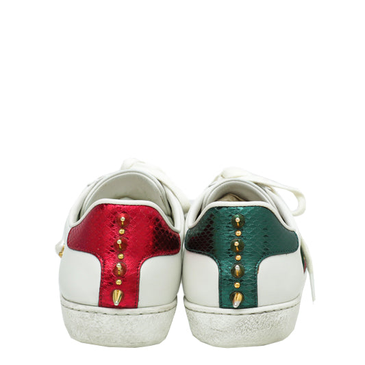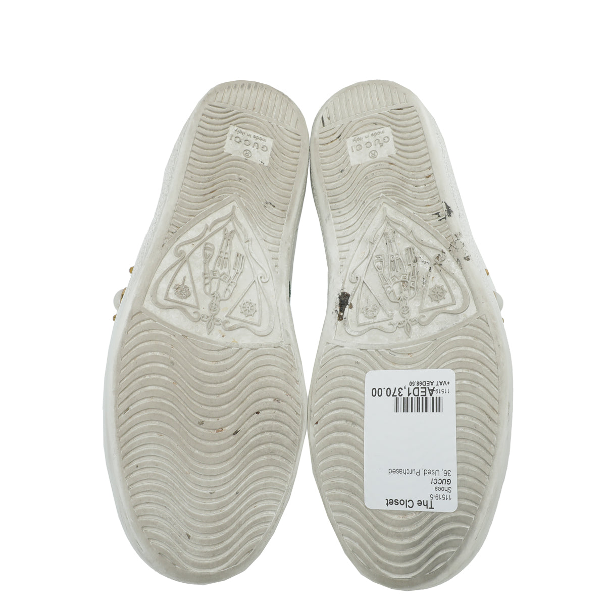 Gucci White Ace Web Pearl Stud Sneaker 36