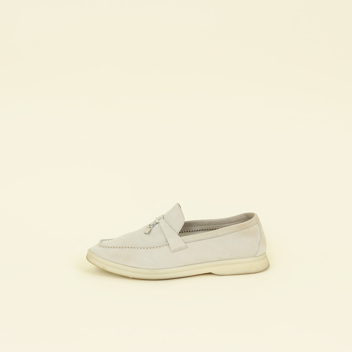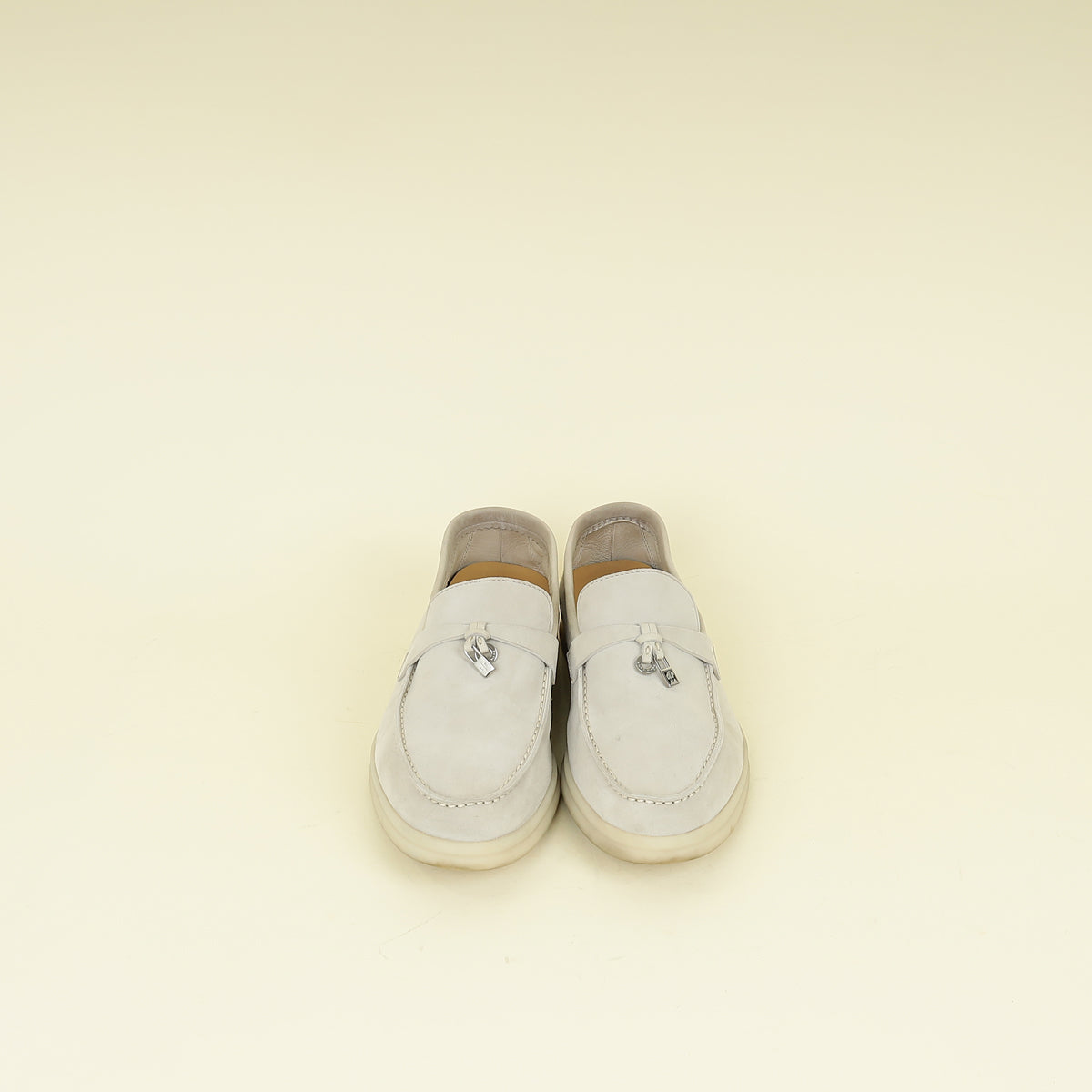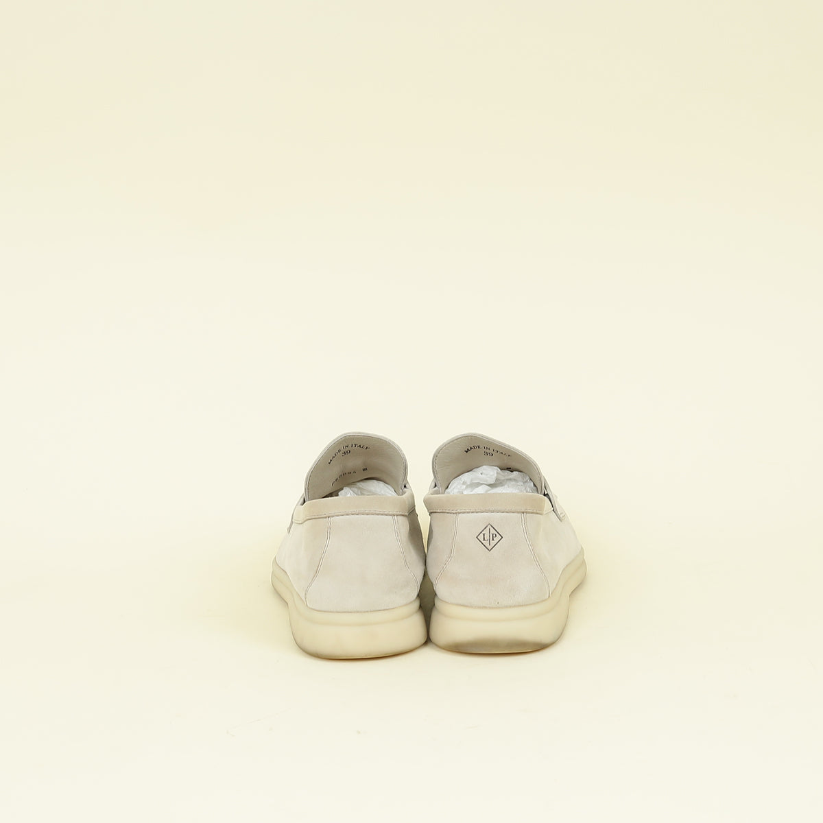 Loro Piana Pearl Gray Summer Charms Walk Loafers 39