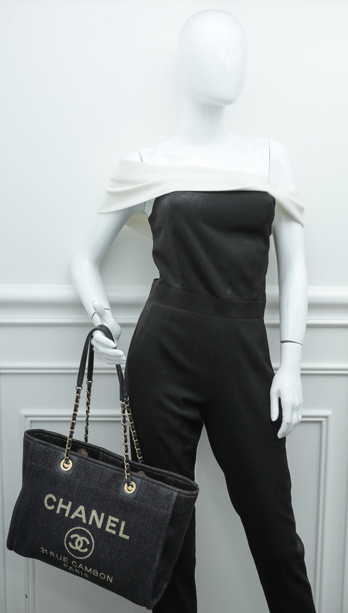 Chanel Navy Lurex Boucle Small Deauville Tote Bag-Chanel-THE CLOSET