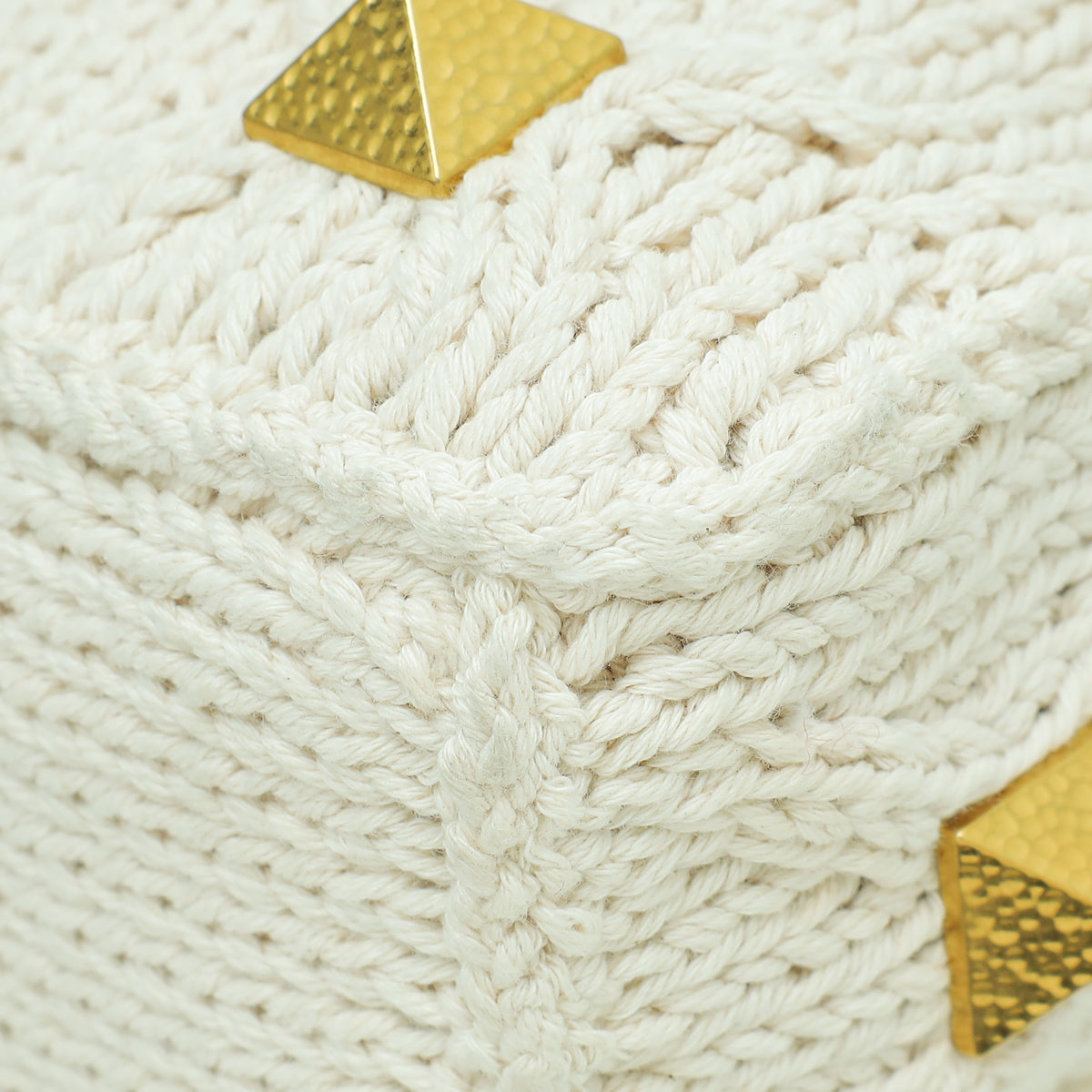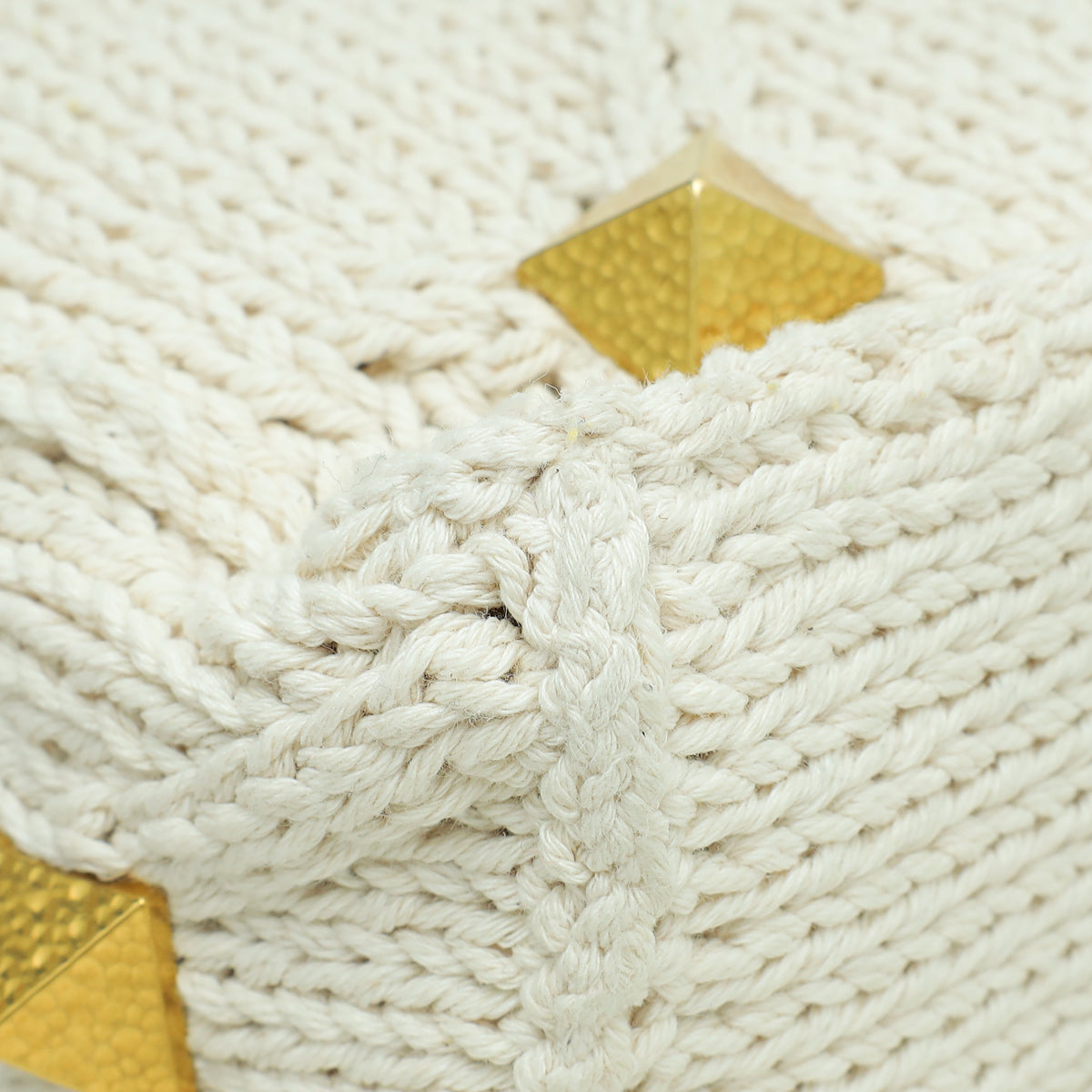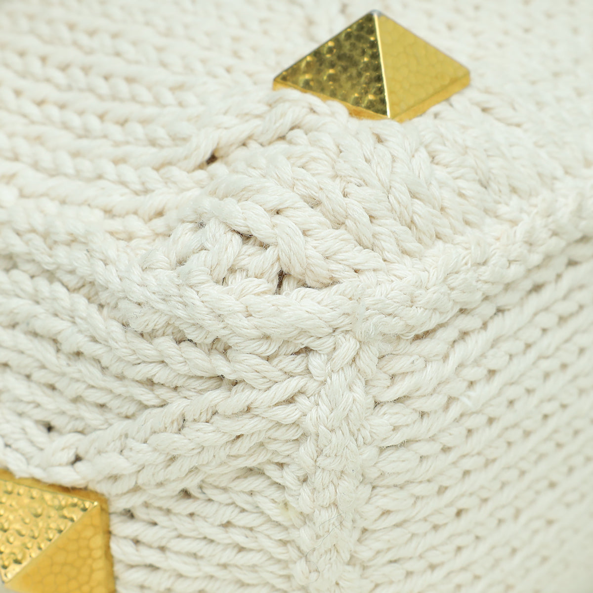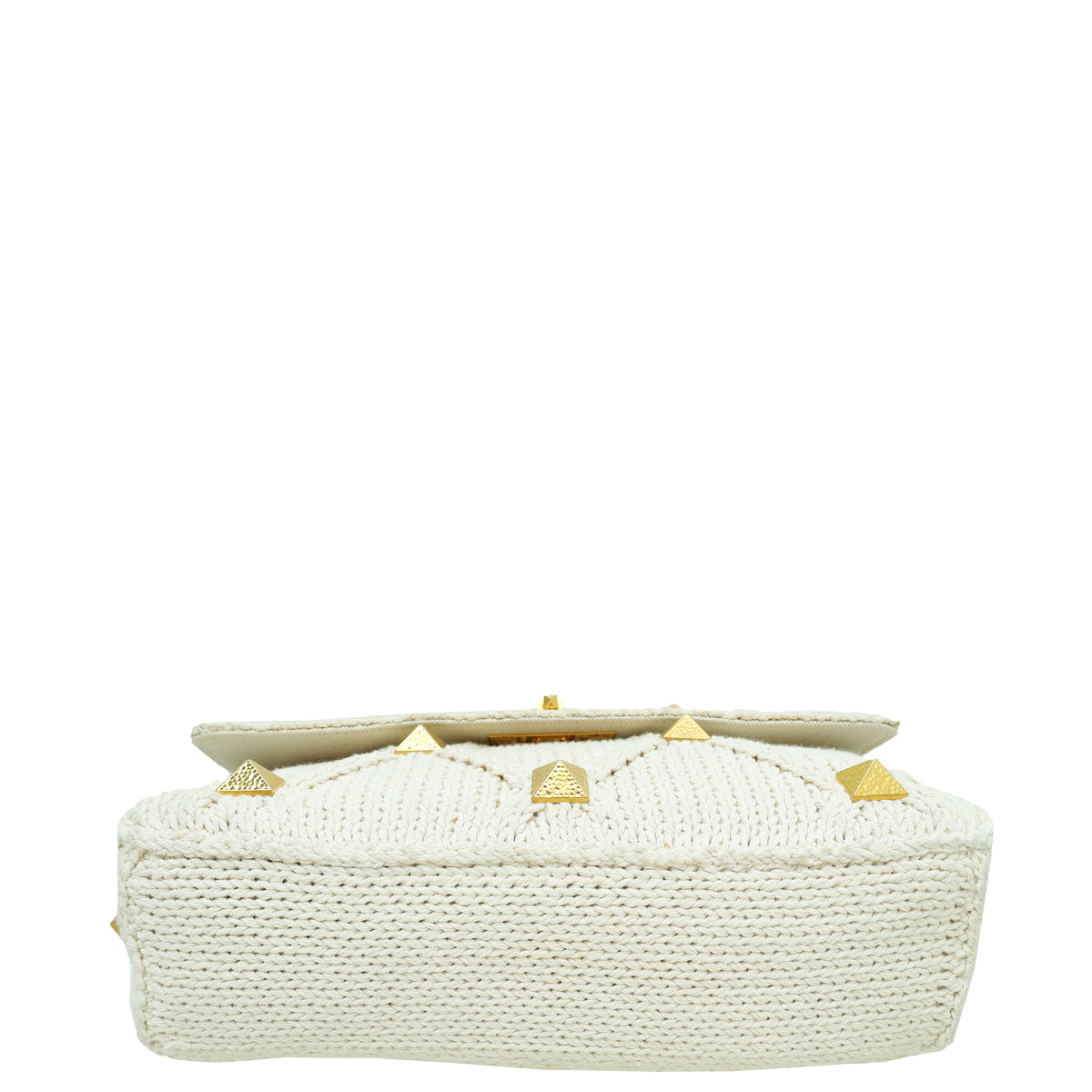 Valentino Ecru Roman Stud Knitted Shoulder Bag Large-Valentino-THE CLOSET