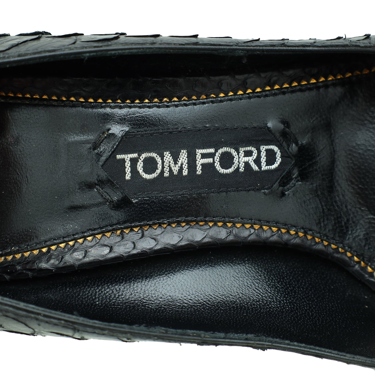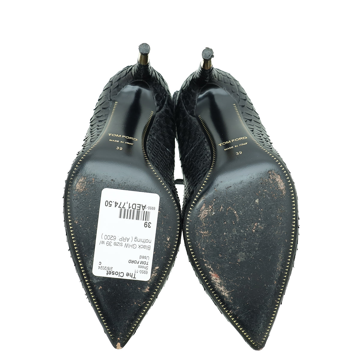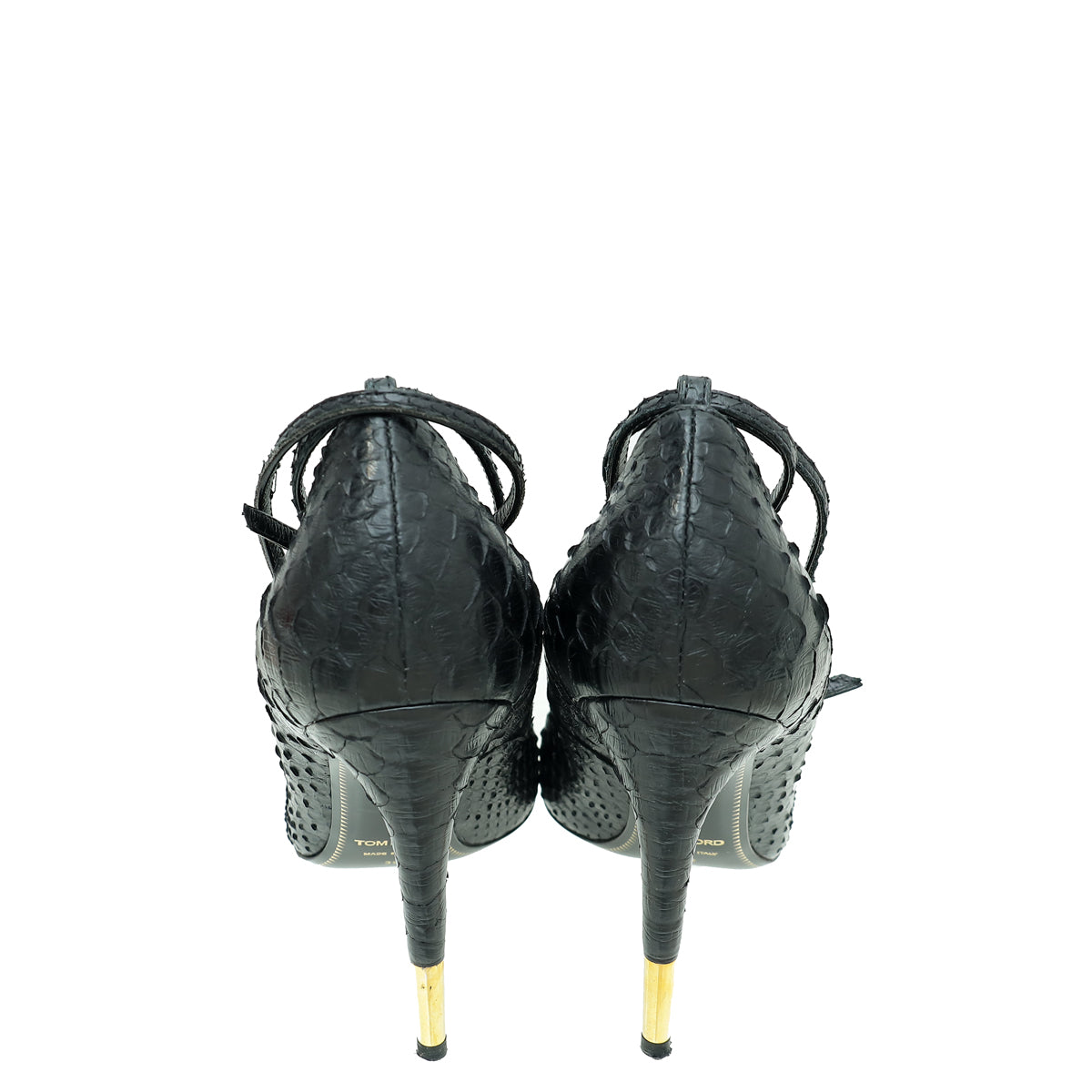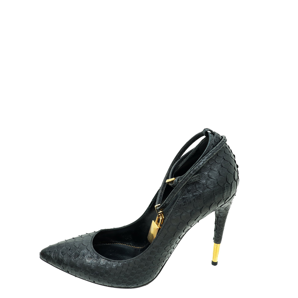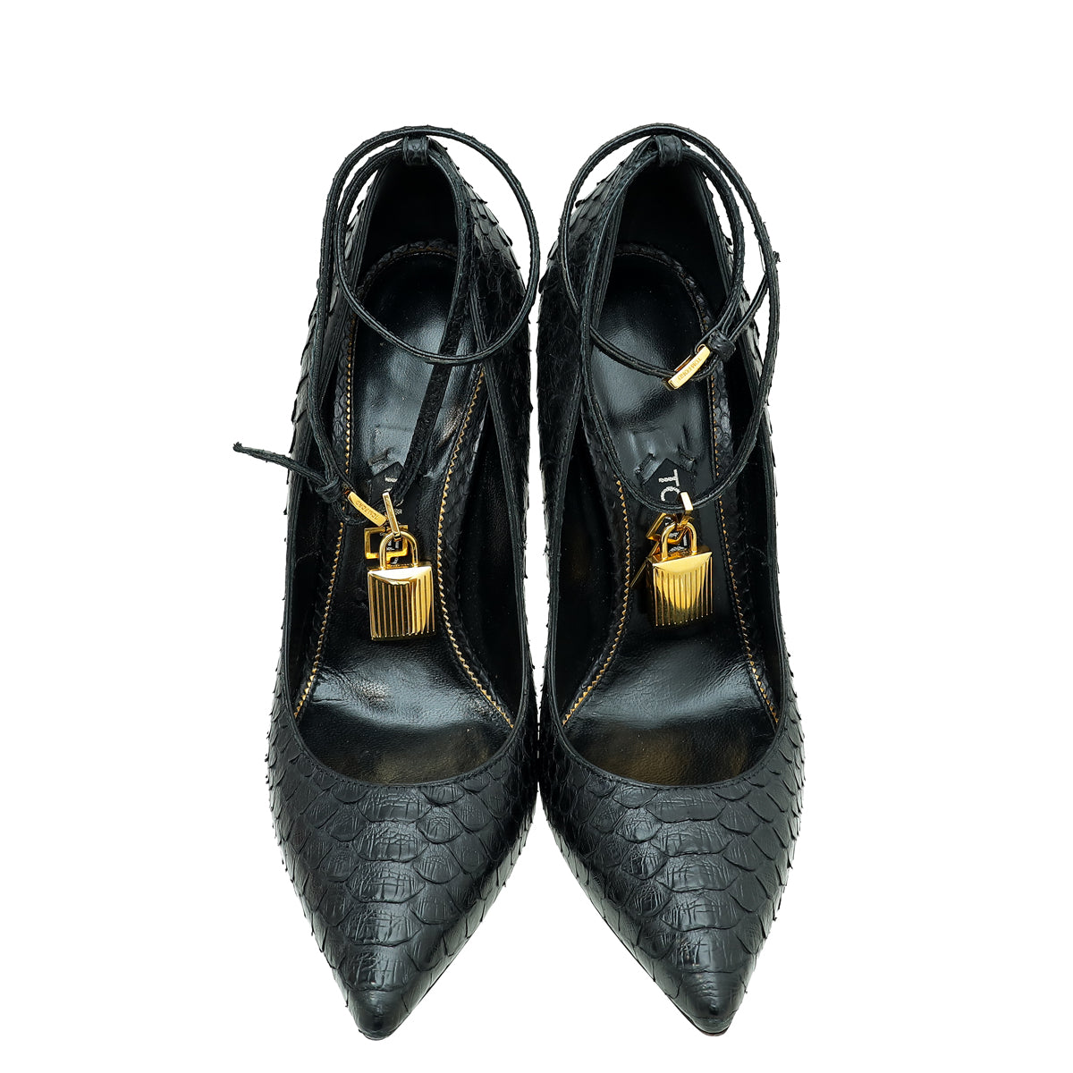 Tom Ford Black Python Padlock Ankle Wrap Pumps 39