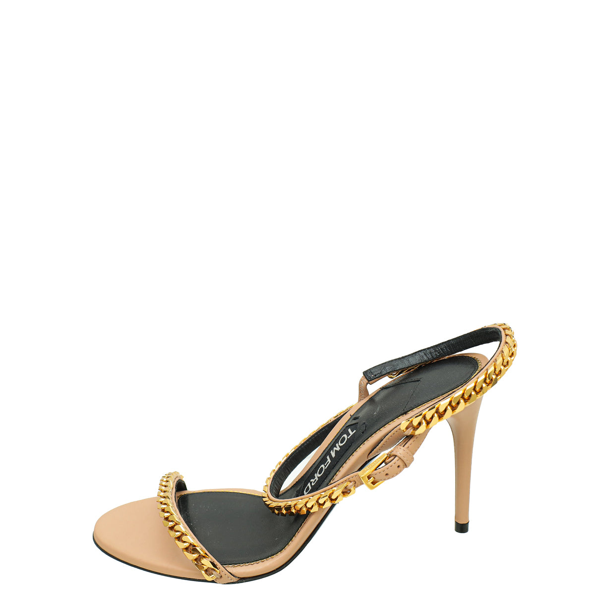 Tom Ford Nude Chain Slides Heel Sandal 36