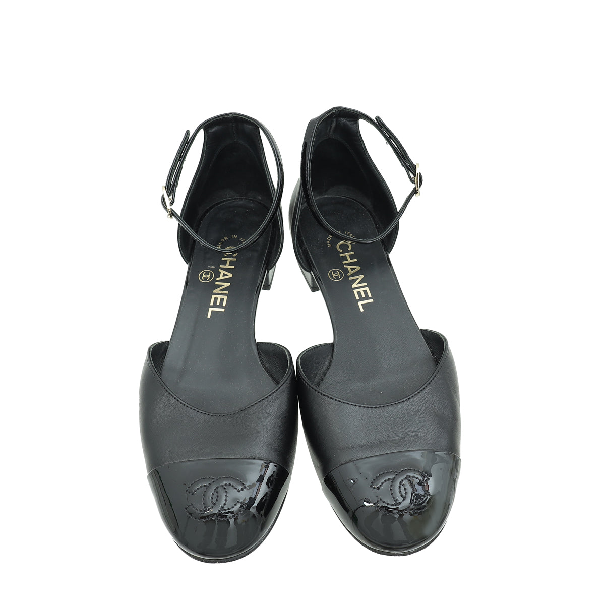 Chanel Black CC Cap Toe CC Ankle Strap Flats 37-Chanel-THE CLOSET