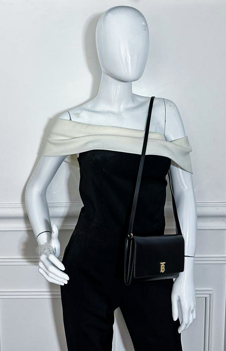 Burberry Black TB Hazelmere Wallet on Strap