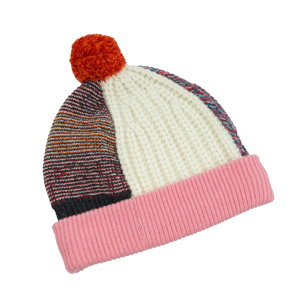 Burberry Pink Multicolor Patchwork Pom Pom Beanie & Fingerless Gloves