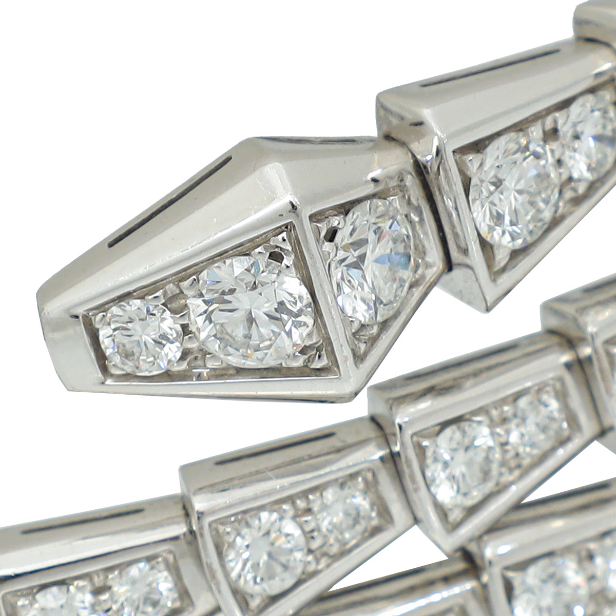Bvlgari 18K White Gold Pave Diamonds Serpenti Viper 2 Coil Bracelet 17