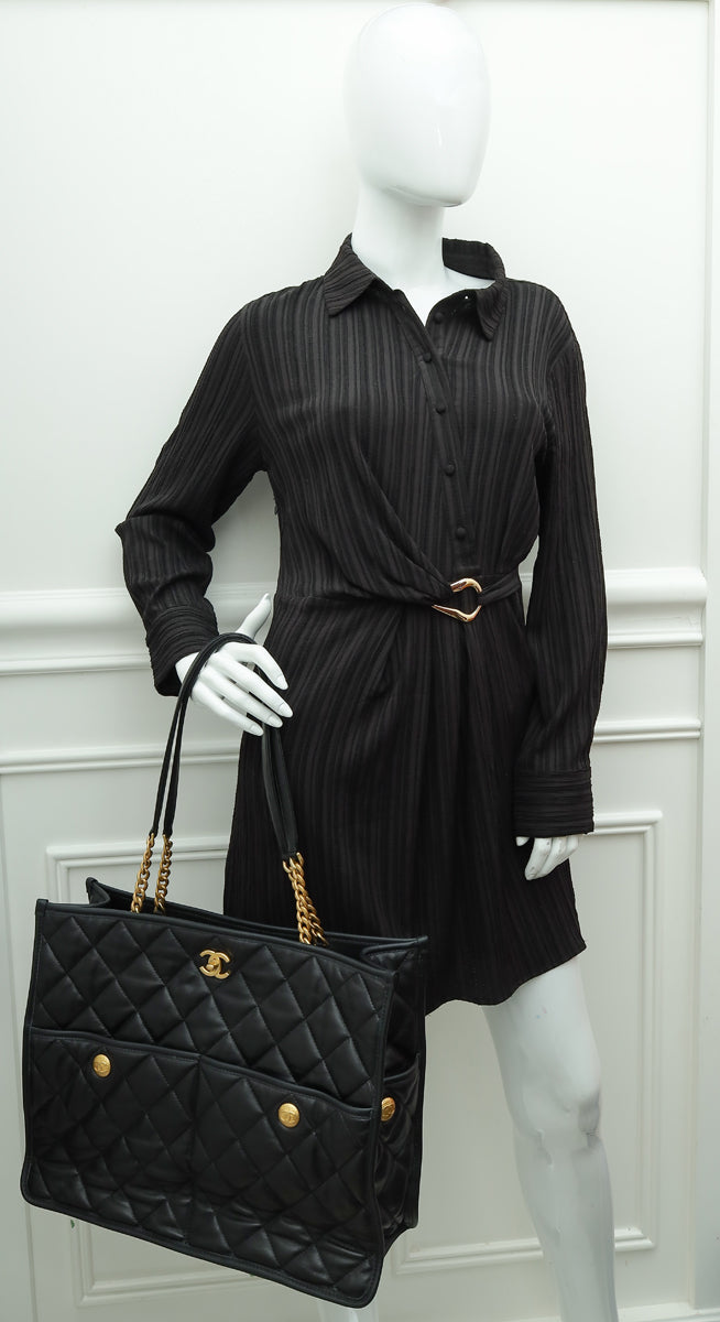 Chanel Black CC Multi Pockets Large Tote Bag
