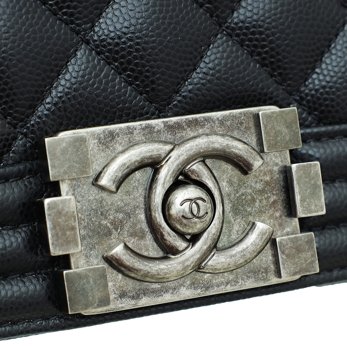 - Material: Black Quilted Caviar Leather