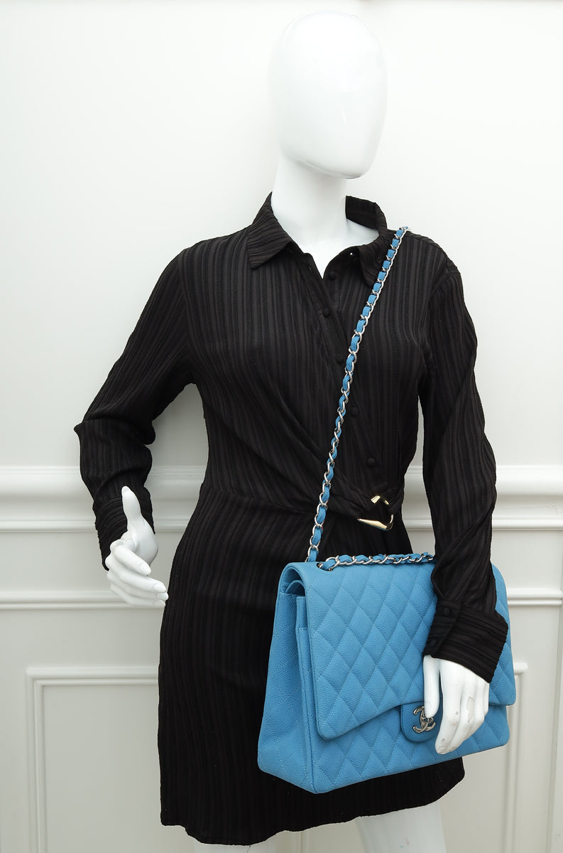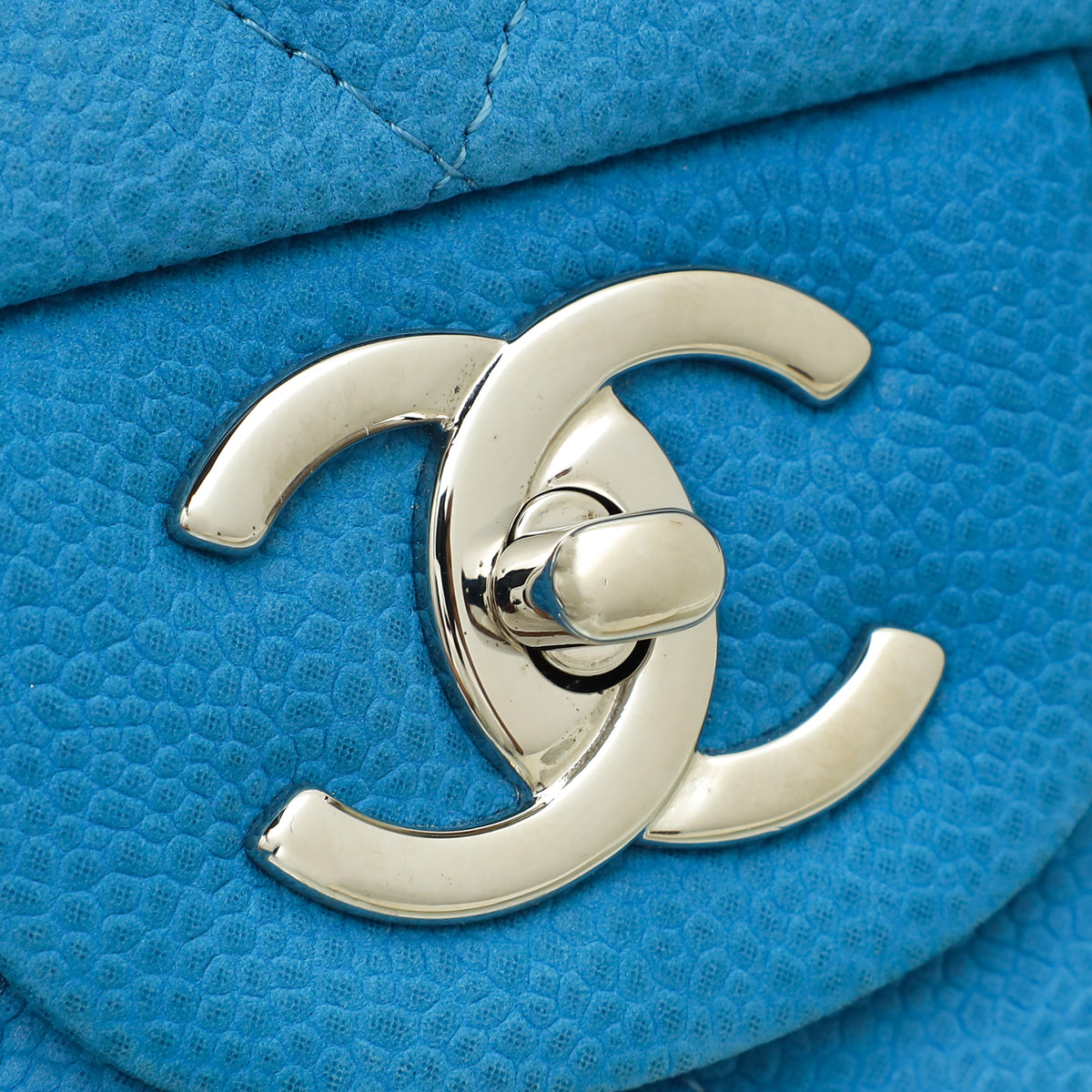 Chanel Blue CC Classic Nubuck Double Flap Maxi Bag