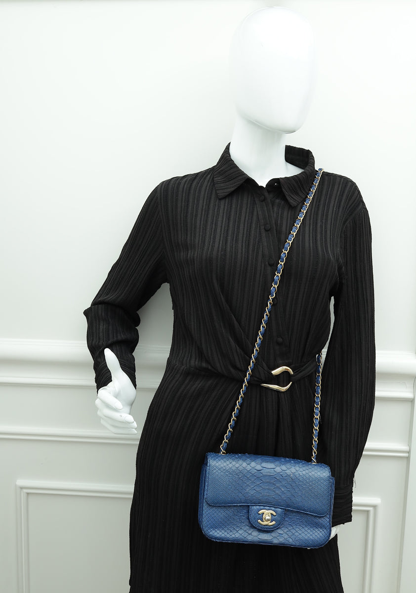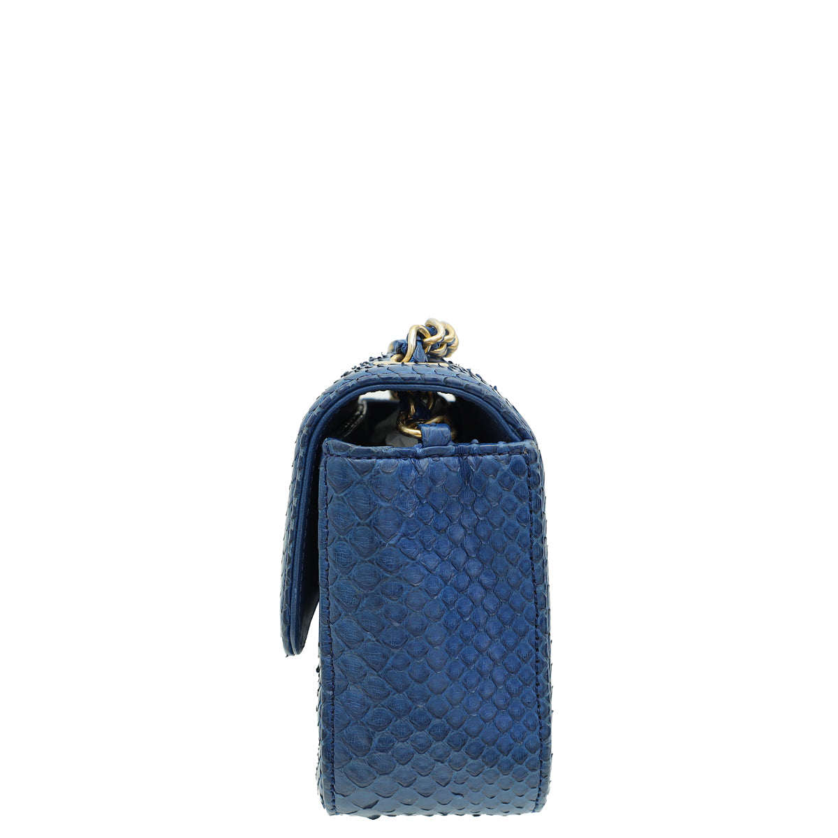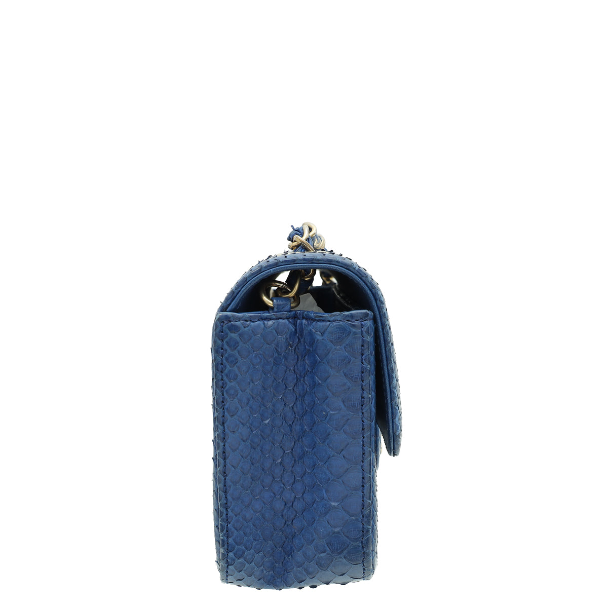Chanel Blue Python Classic Mini Rectangular Flap Bag