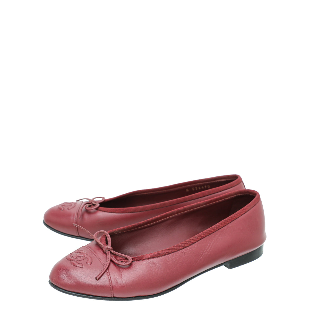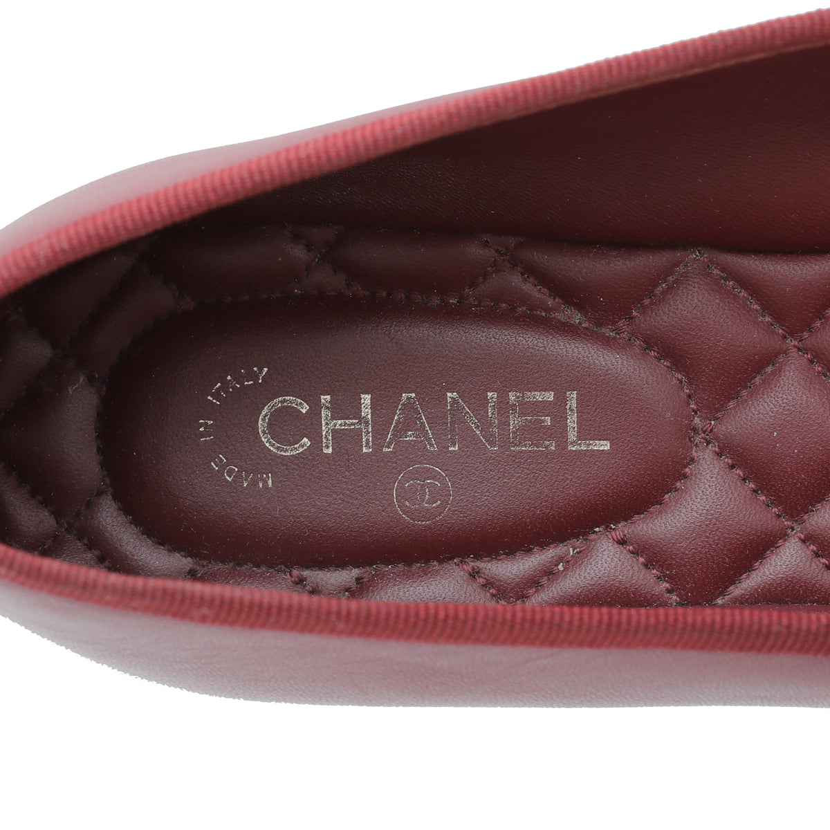 Chanel Burgundy CC Cap Toe Flat Ballerina 37.5