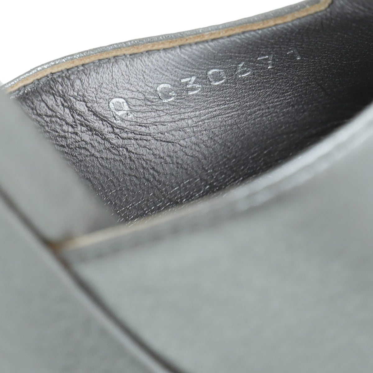 Material: Metallic Silver Leather with Pearl and CC Embellishments
