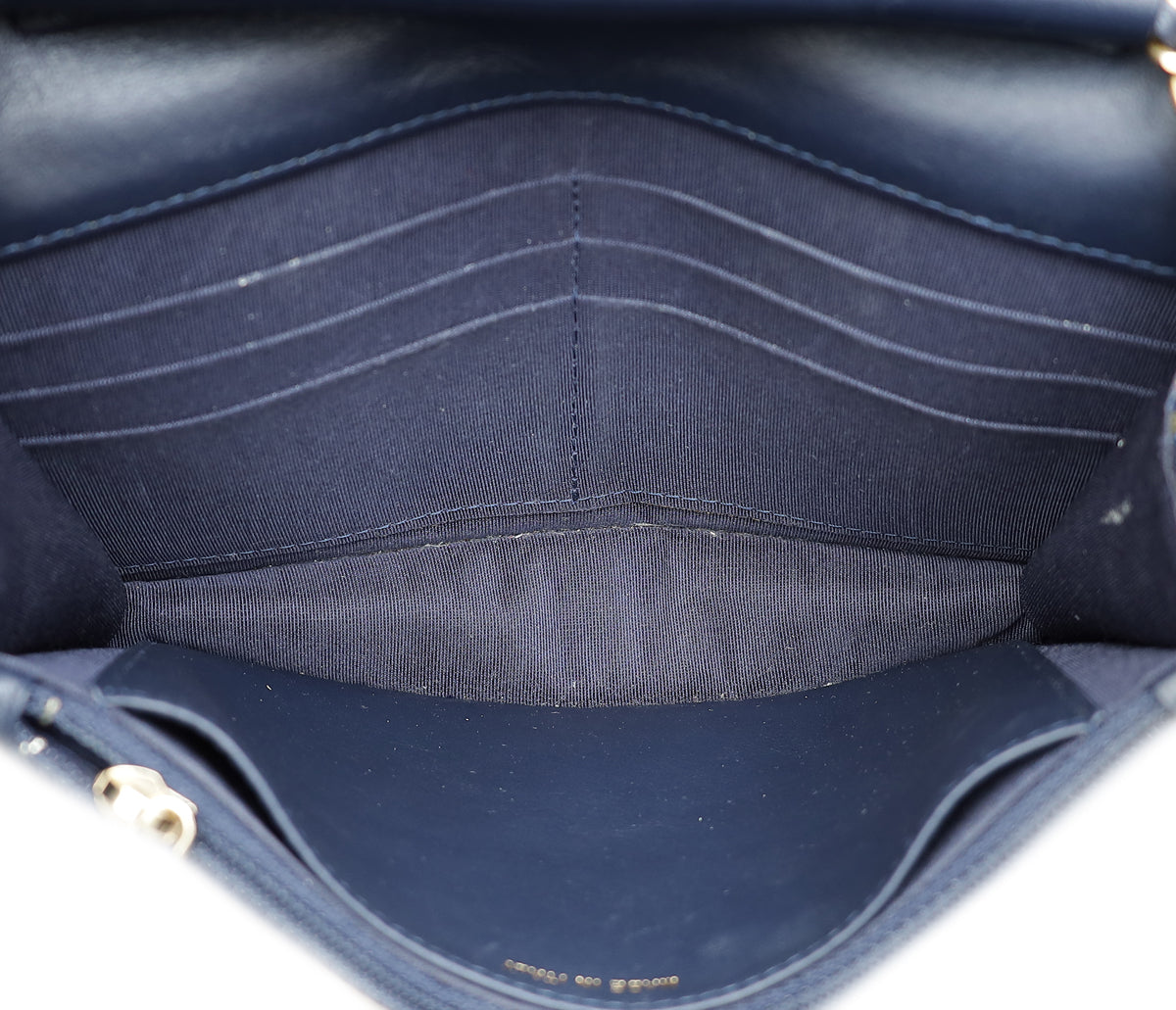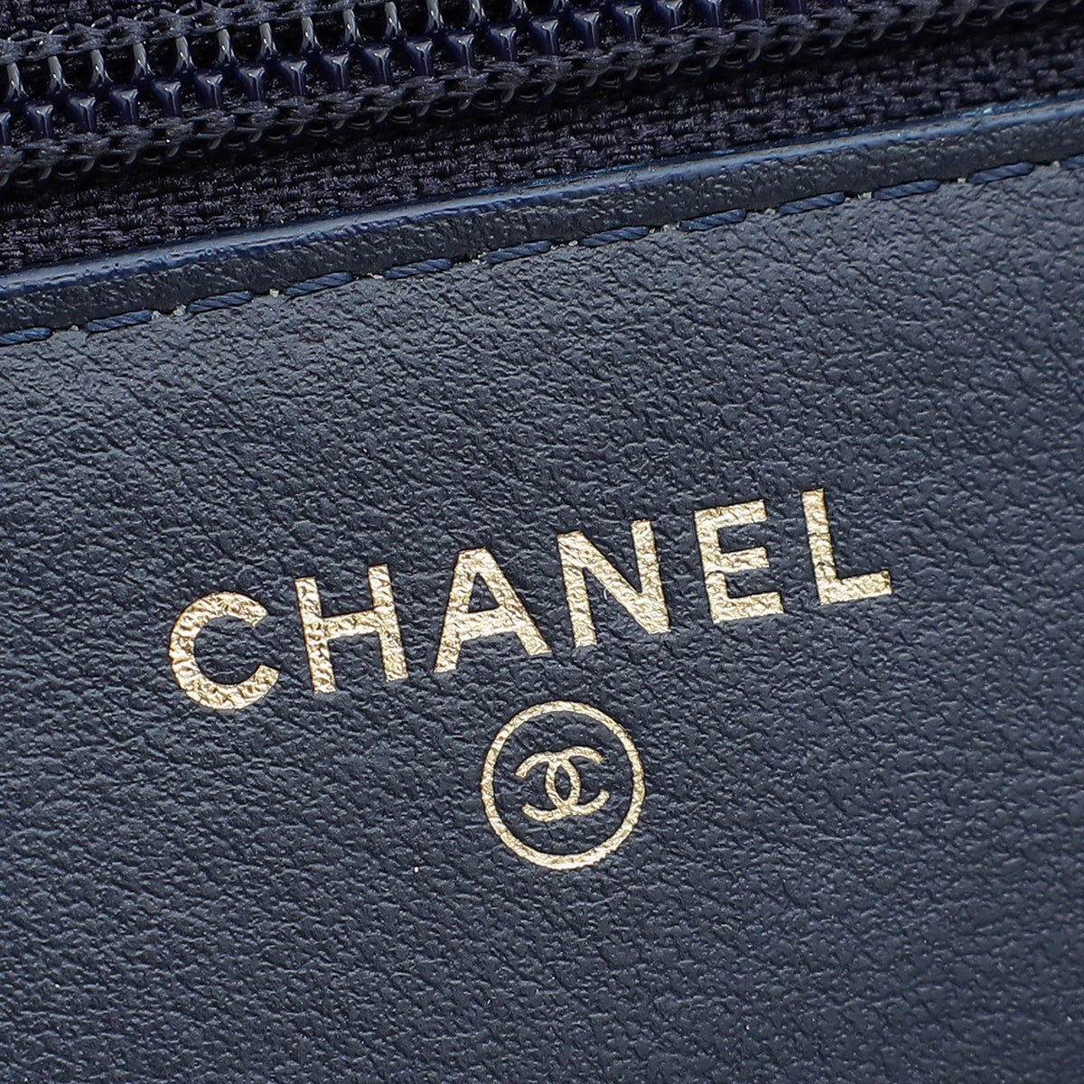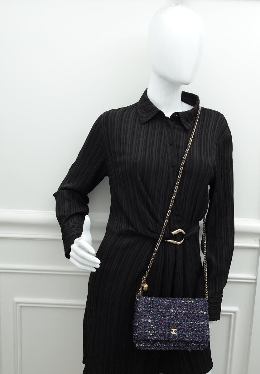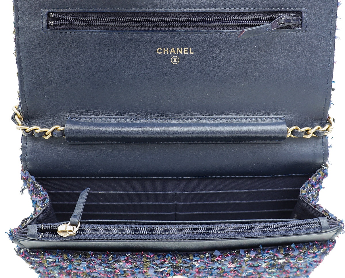 Chanel Navy Blue CC Classic Tweed Charms Wallet On Chain