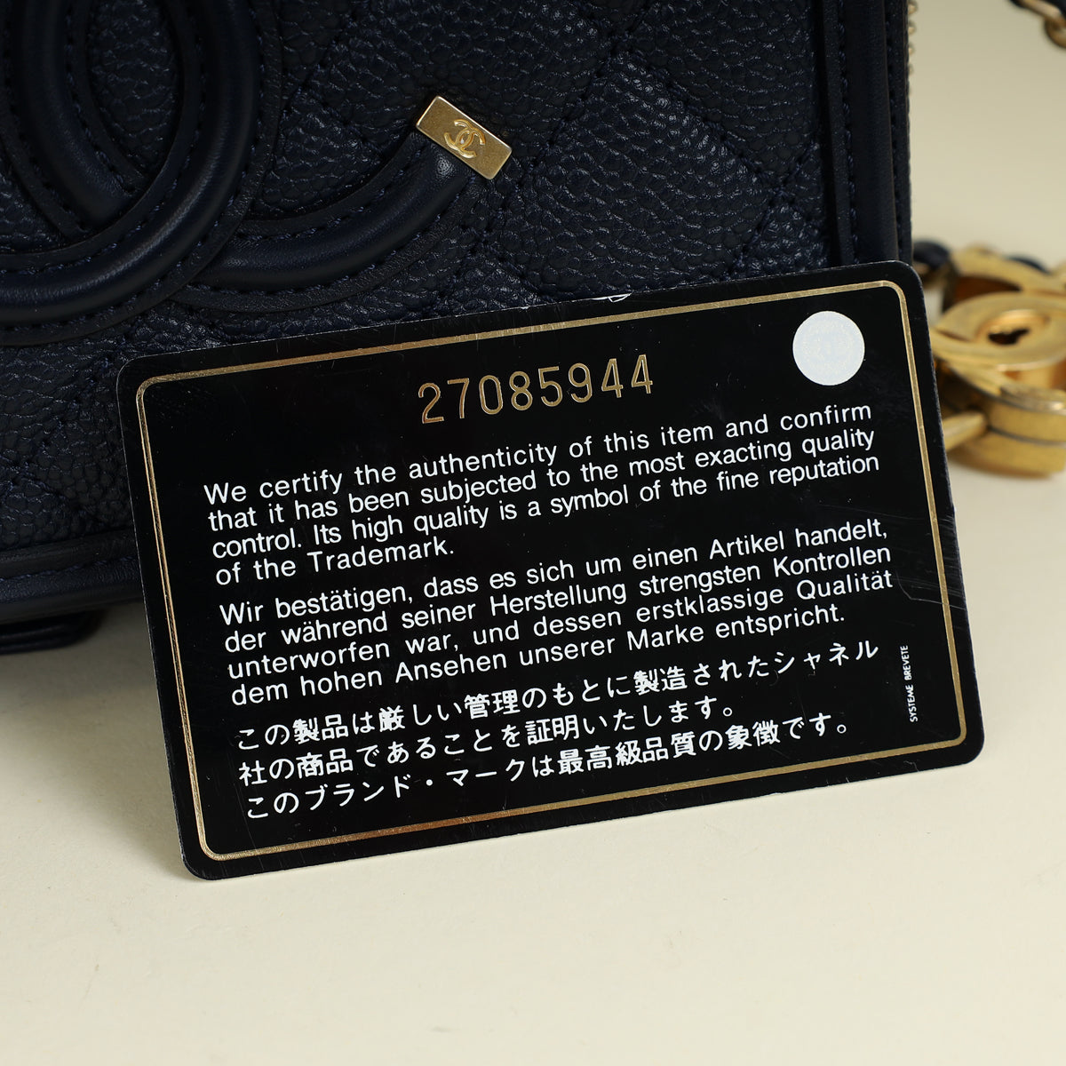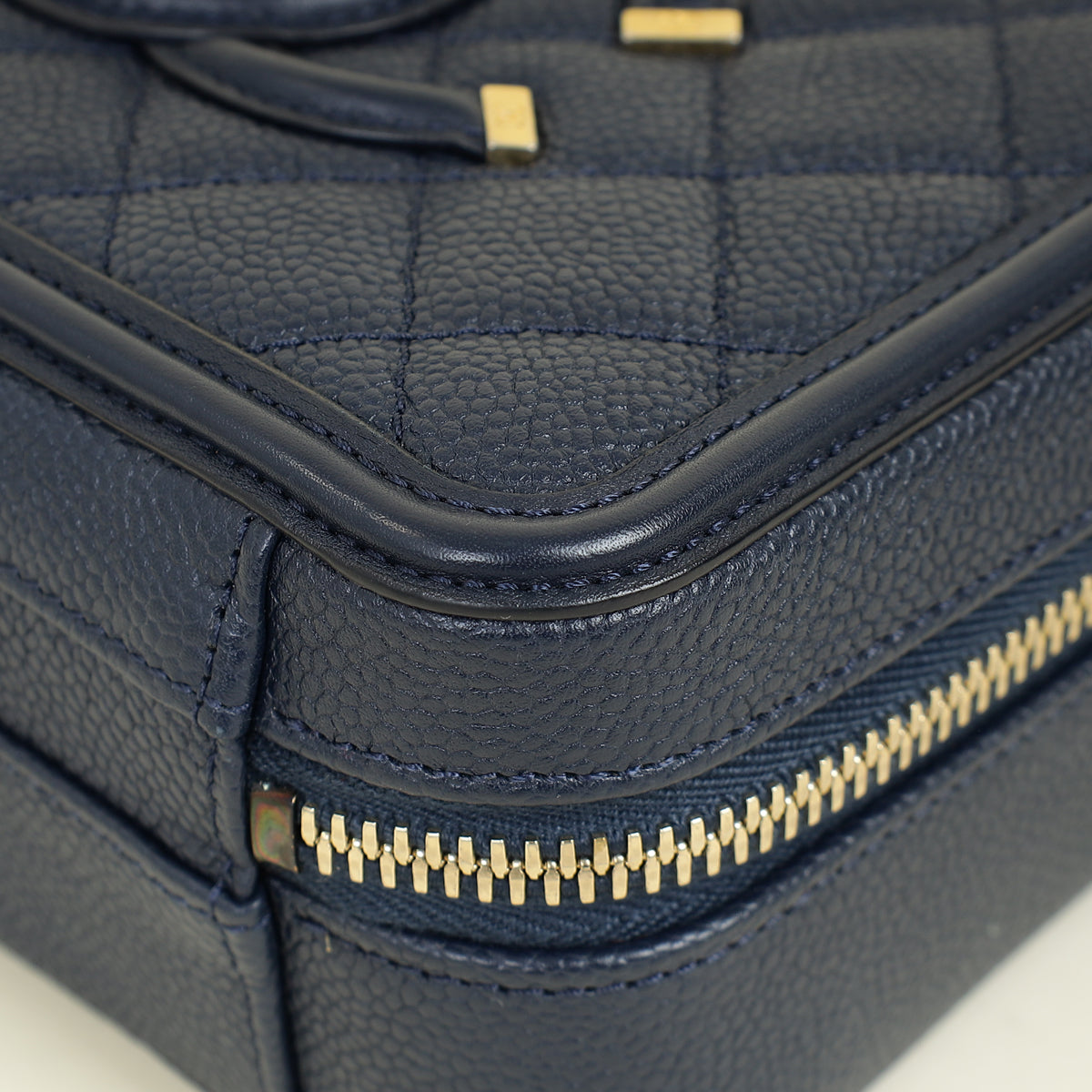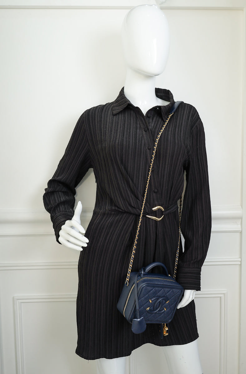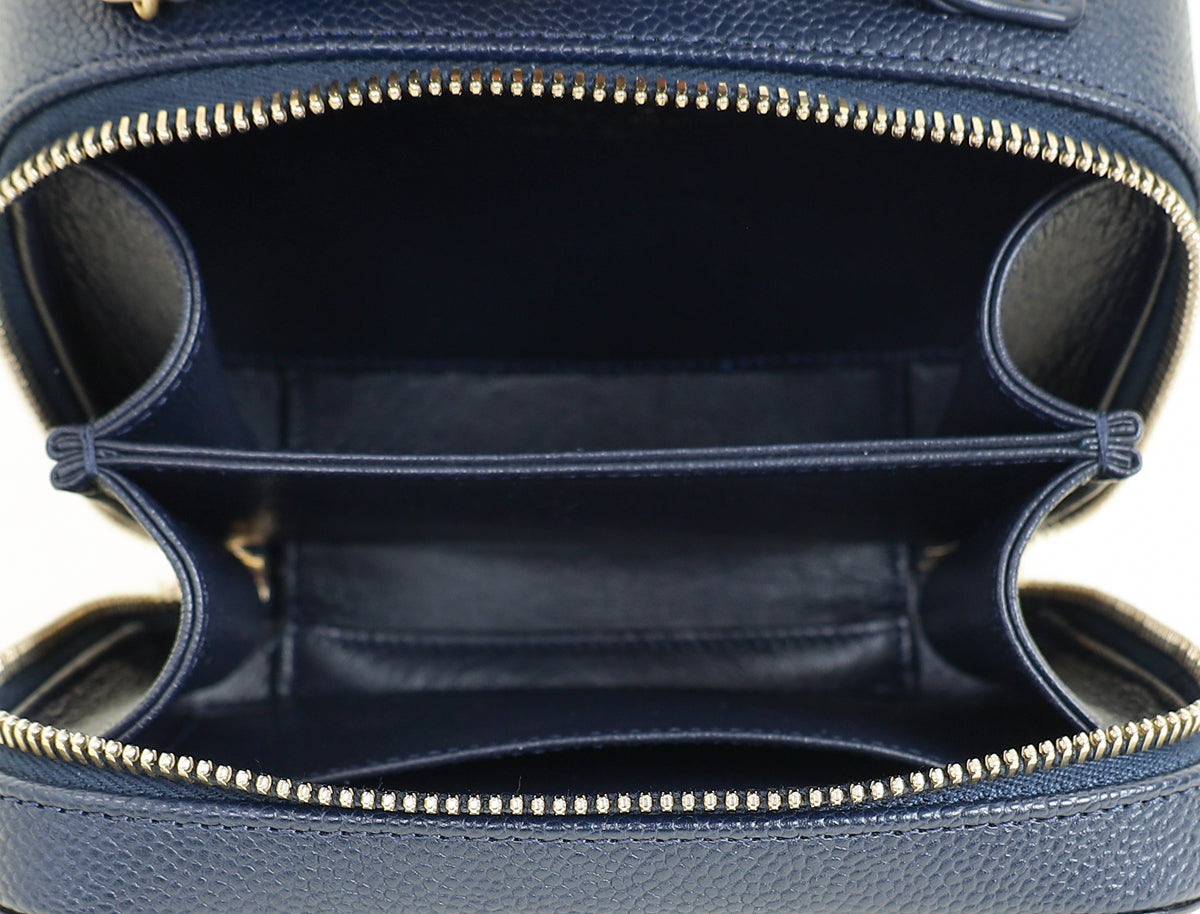 Chanel Navy Blue CC Filigree Vanity Small Case
