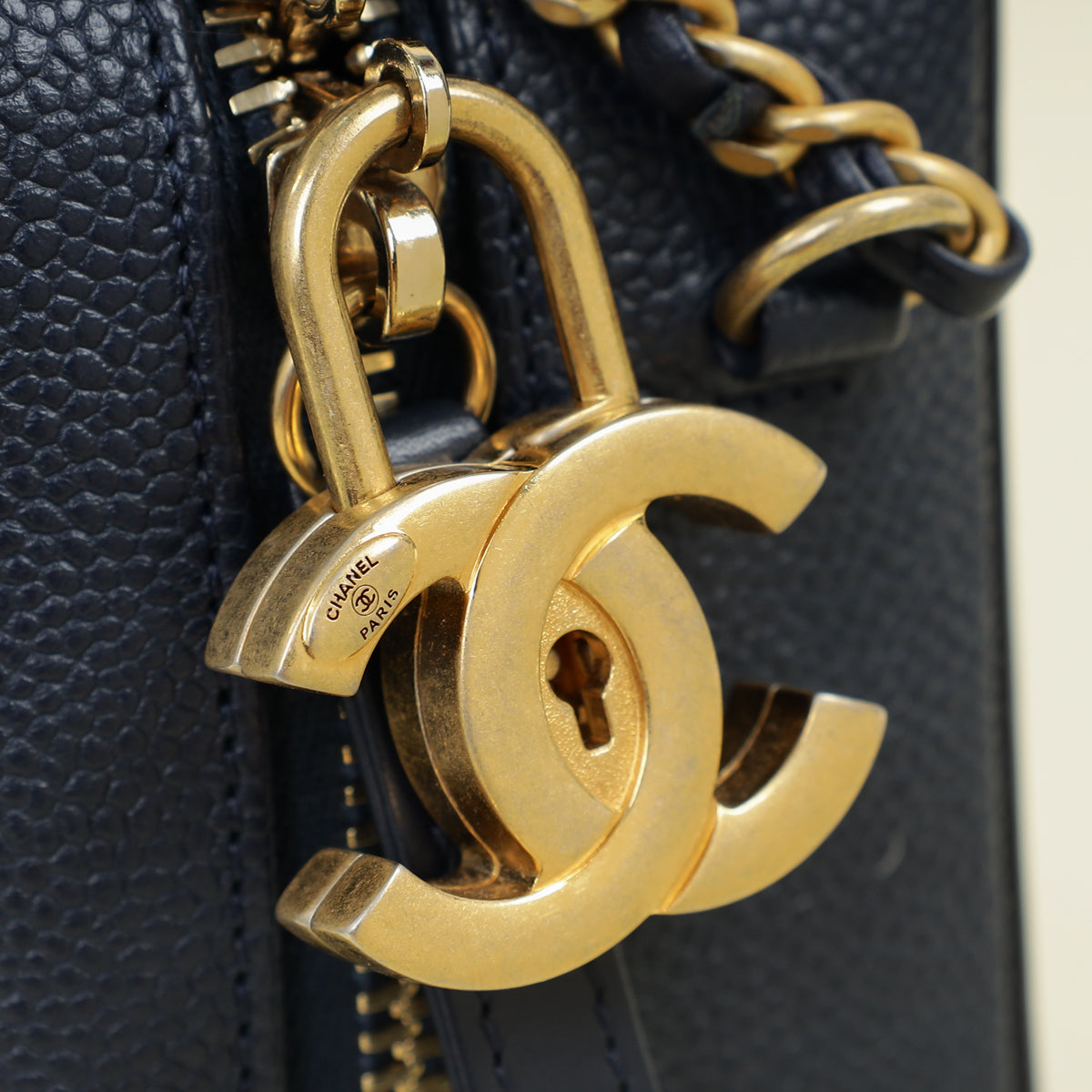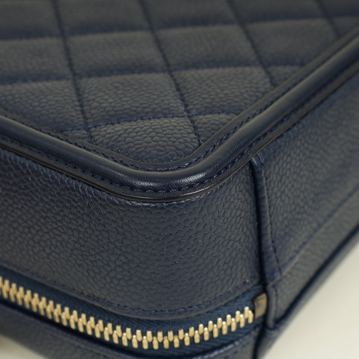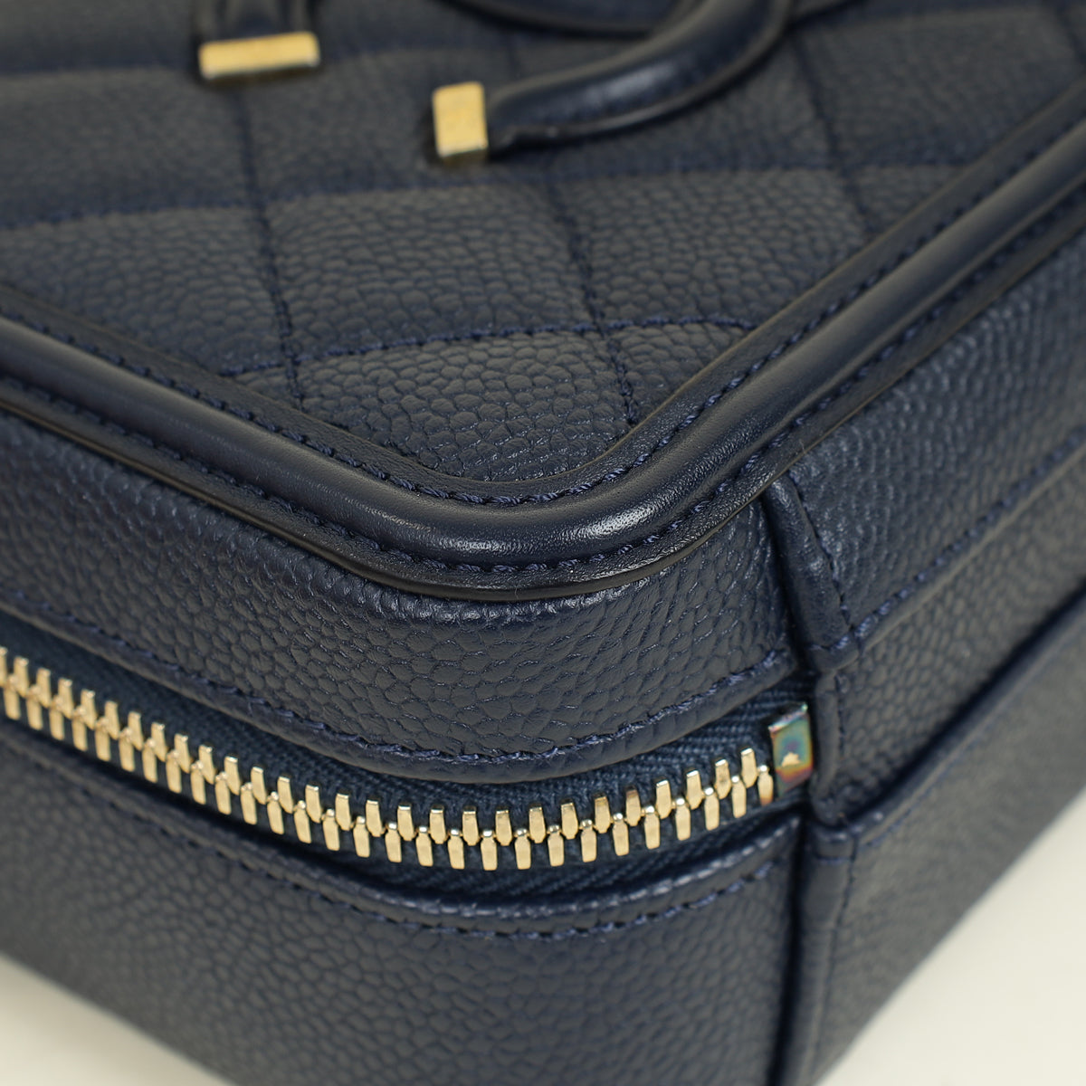 Chanel Navy Blue CC Filigree Vanity Small Case