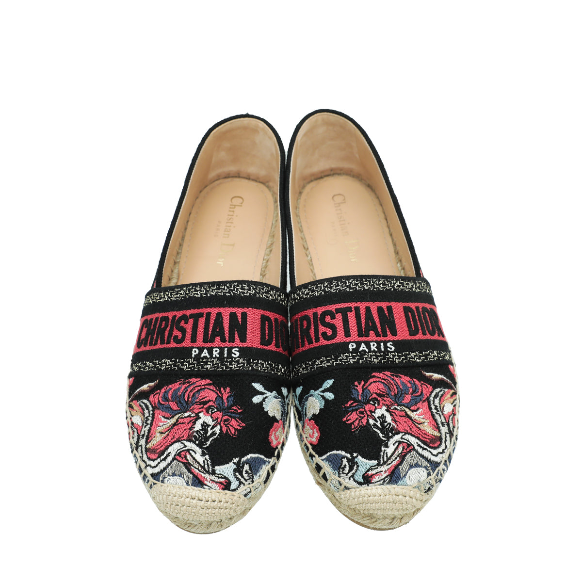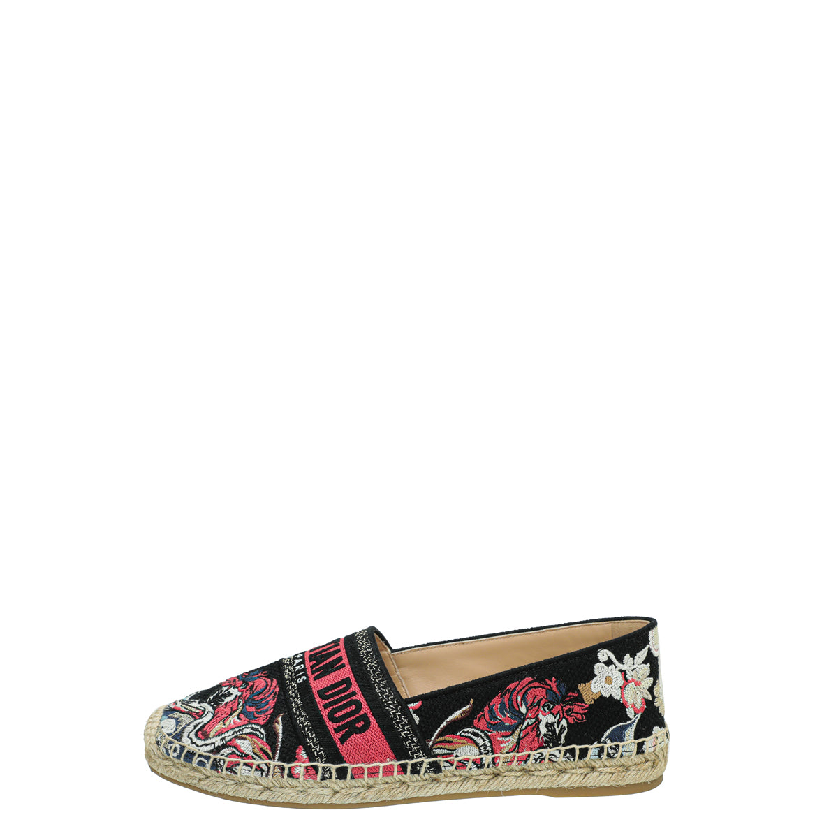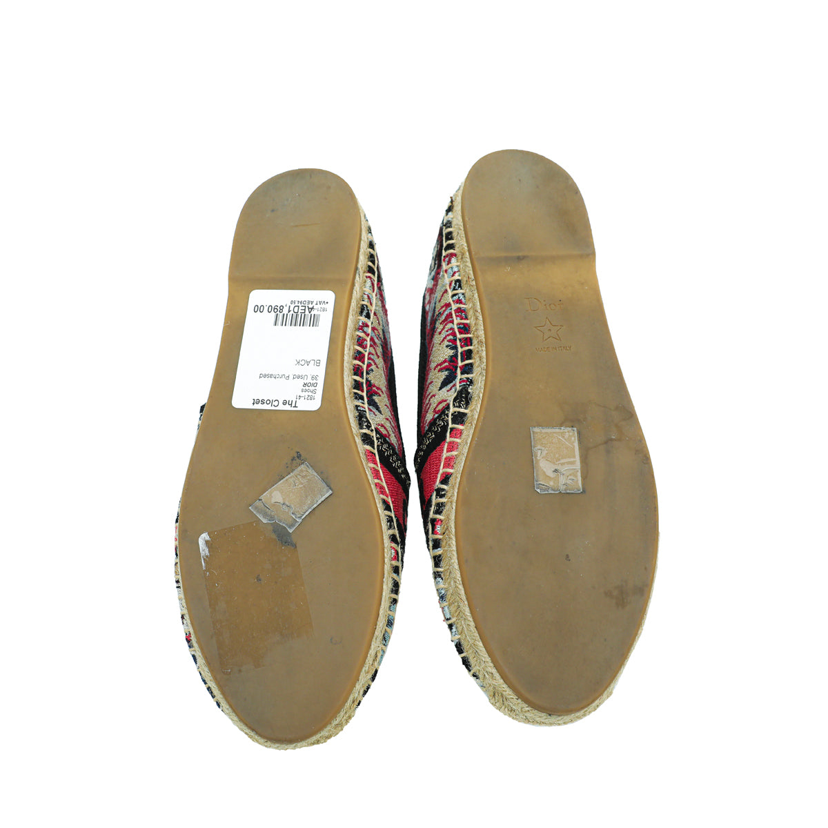 Christian Dior Black Multicolor Mille Fleurs Embroidered Granville Espadrille 39