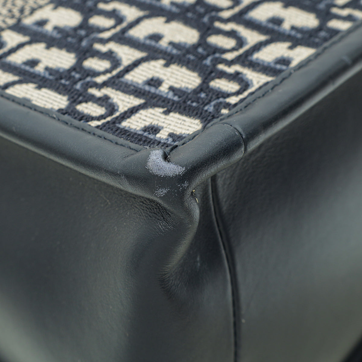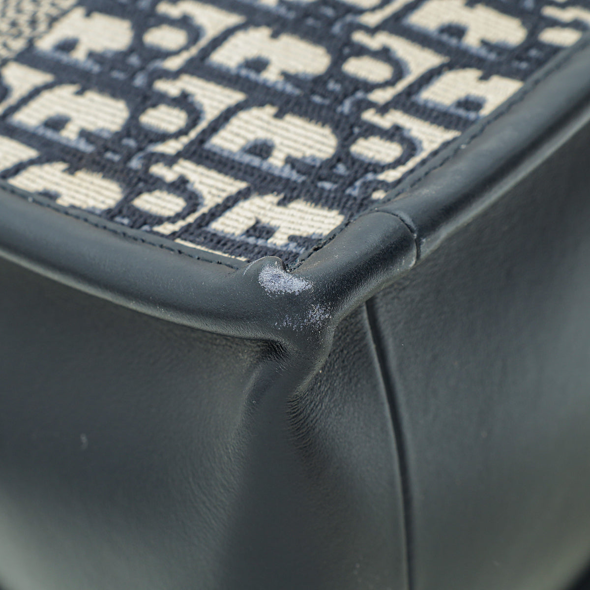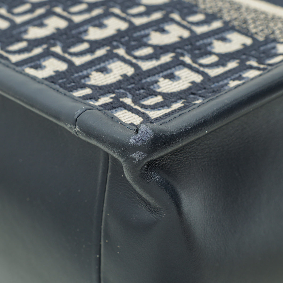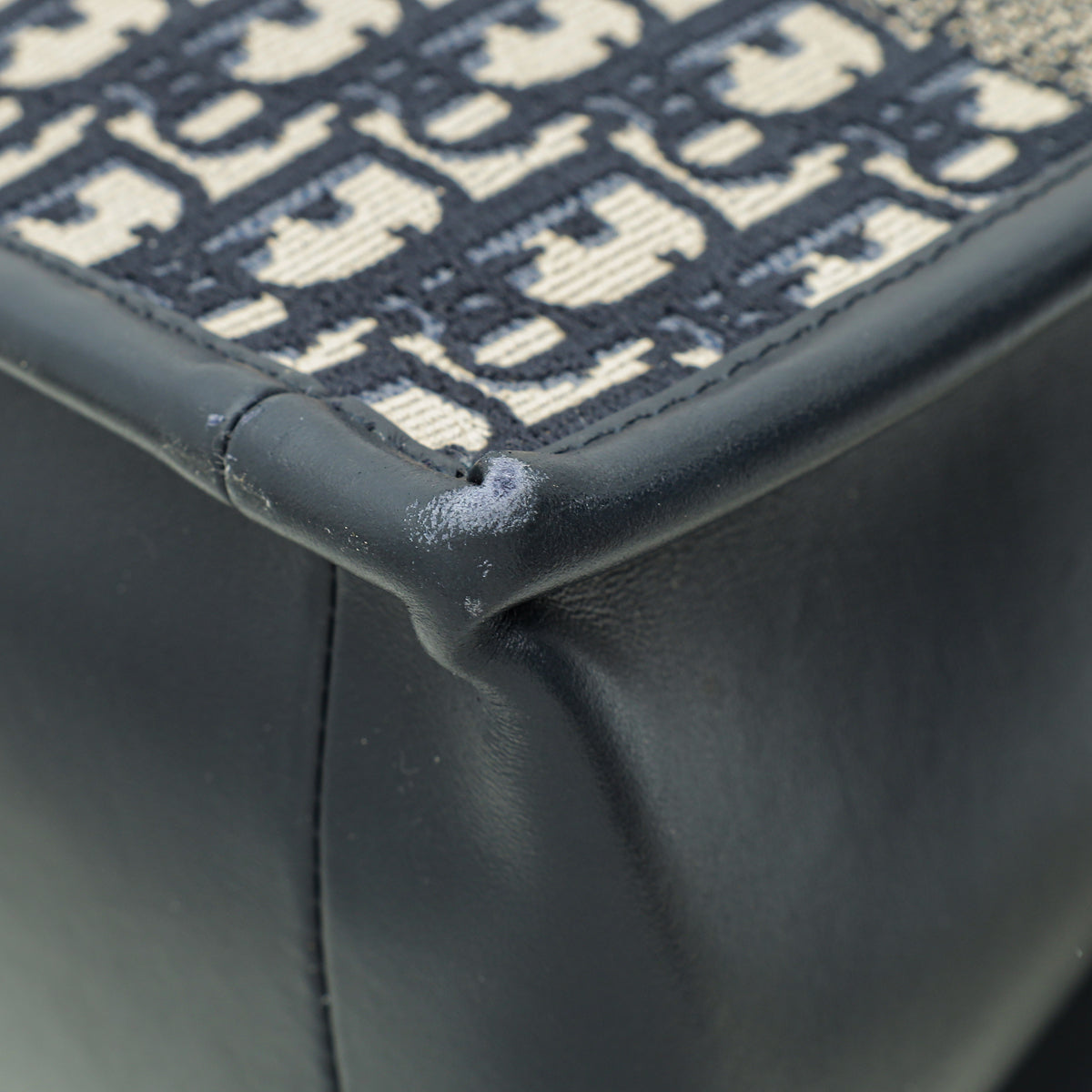 Christian Dior Blue Oblique Embroidery and Calfskin Book Tote Medium Bag