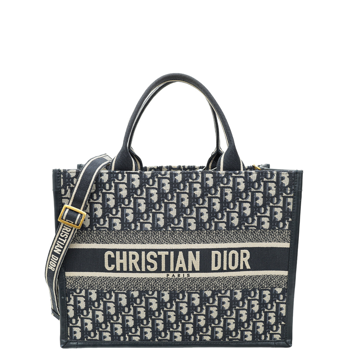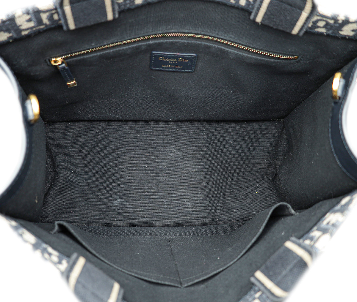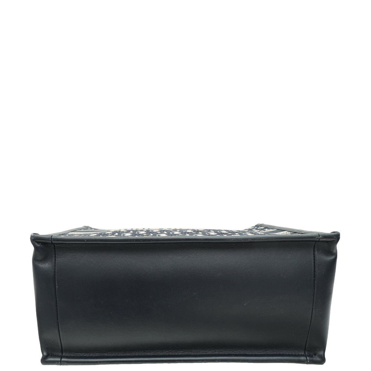 Christian Dior Blue Oblique Embroidery and Calfskin Book Tote Medium Bag