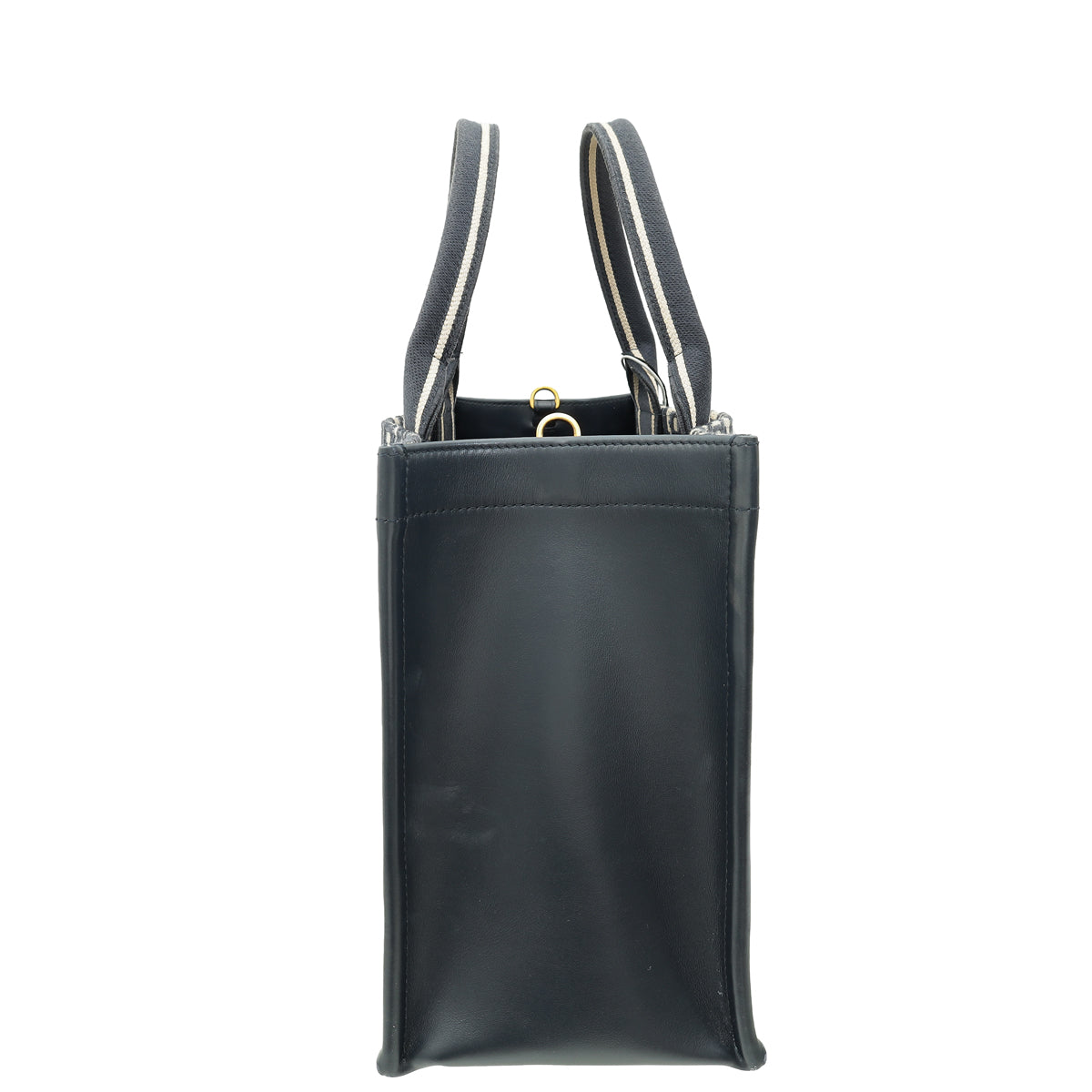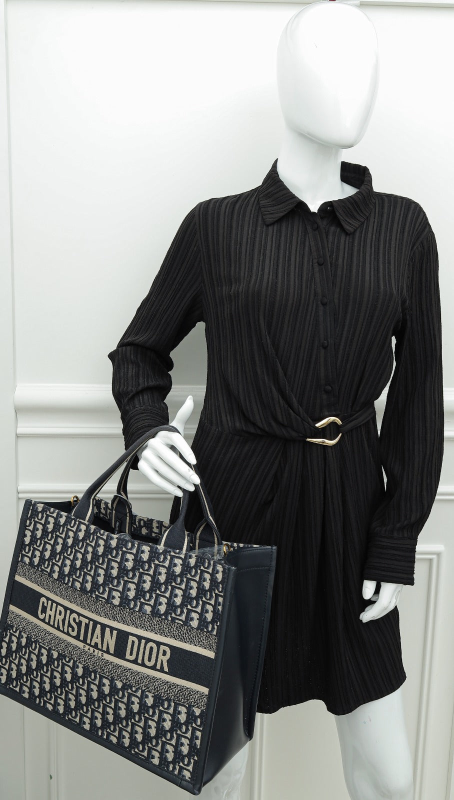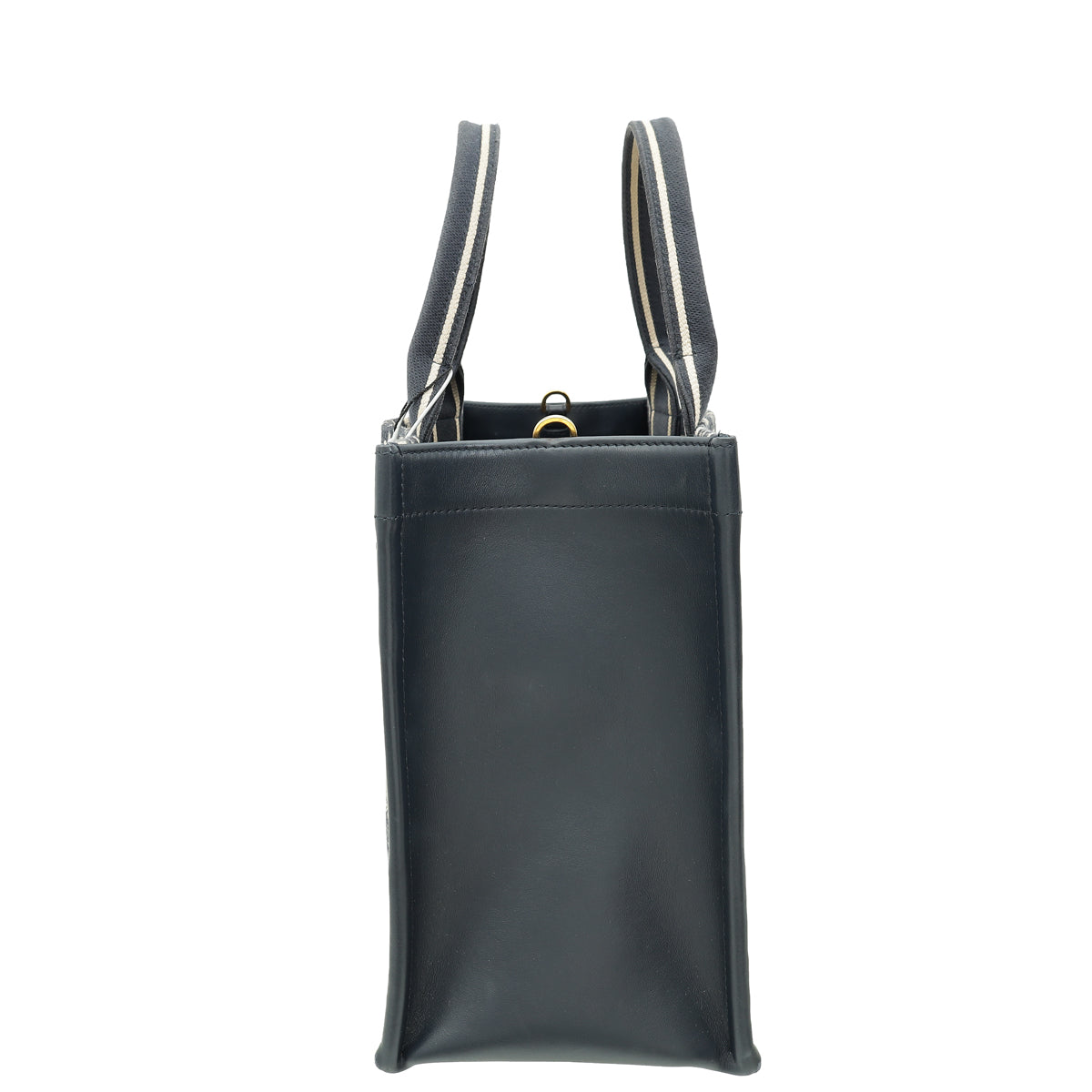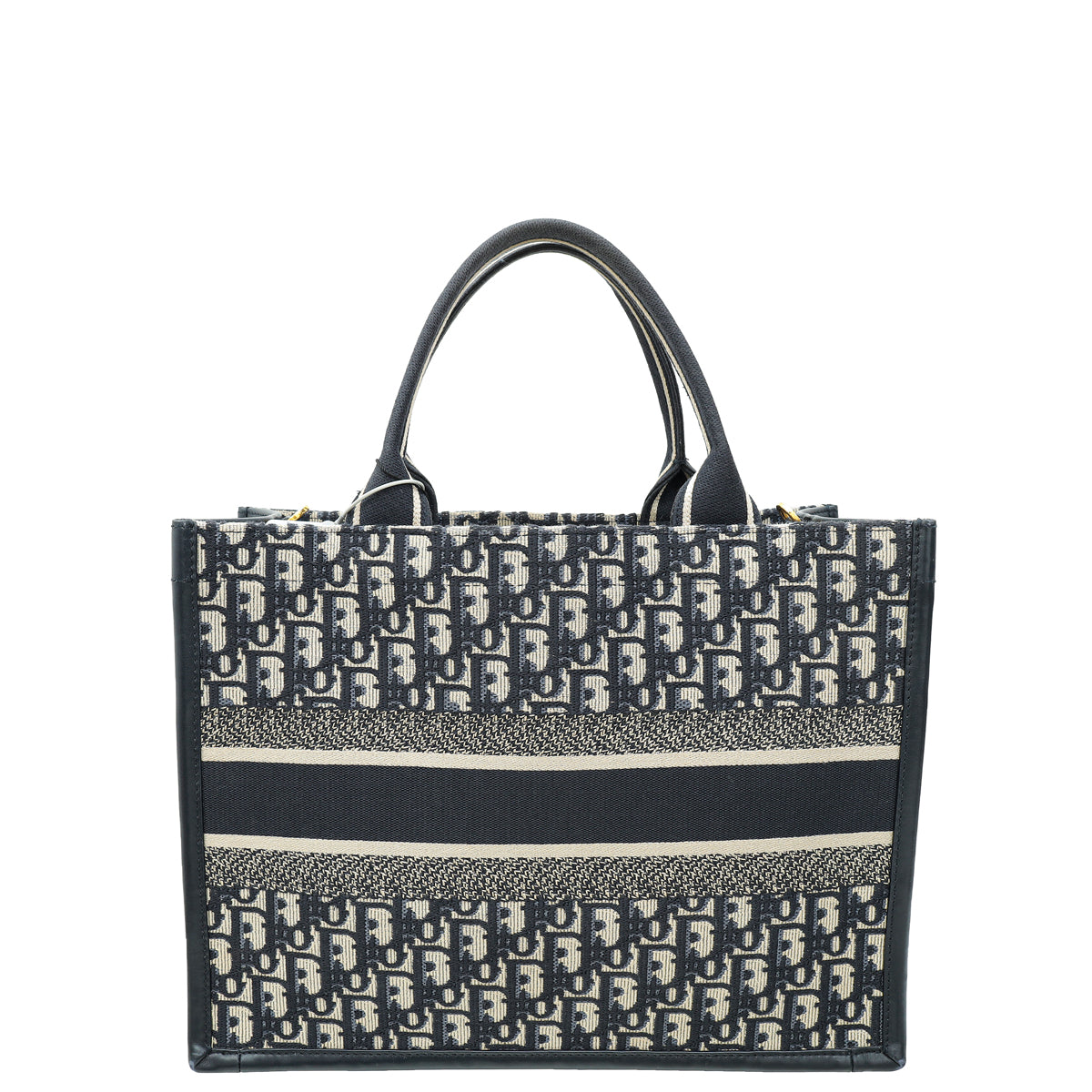 Christian Dior Blue Oblique Embroidery and Calfskin Book Tote Medium Bag