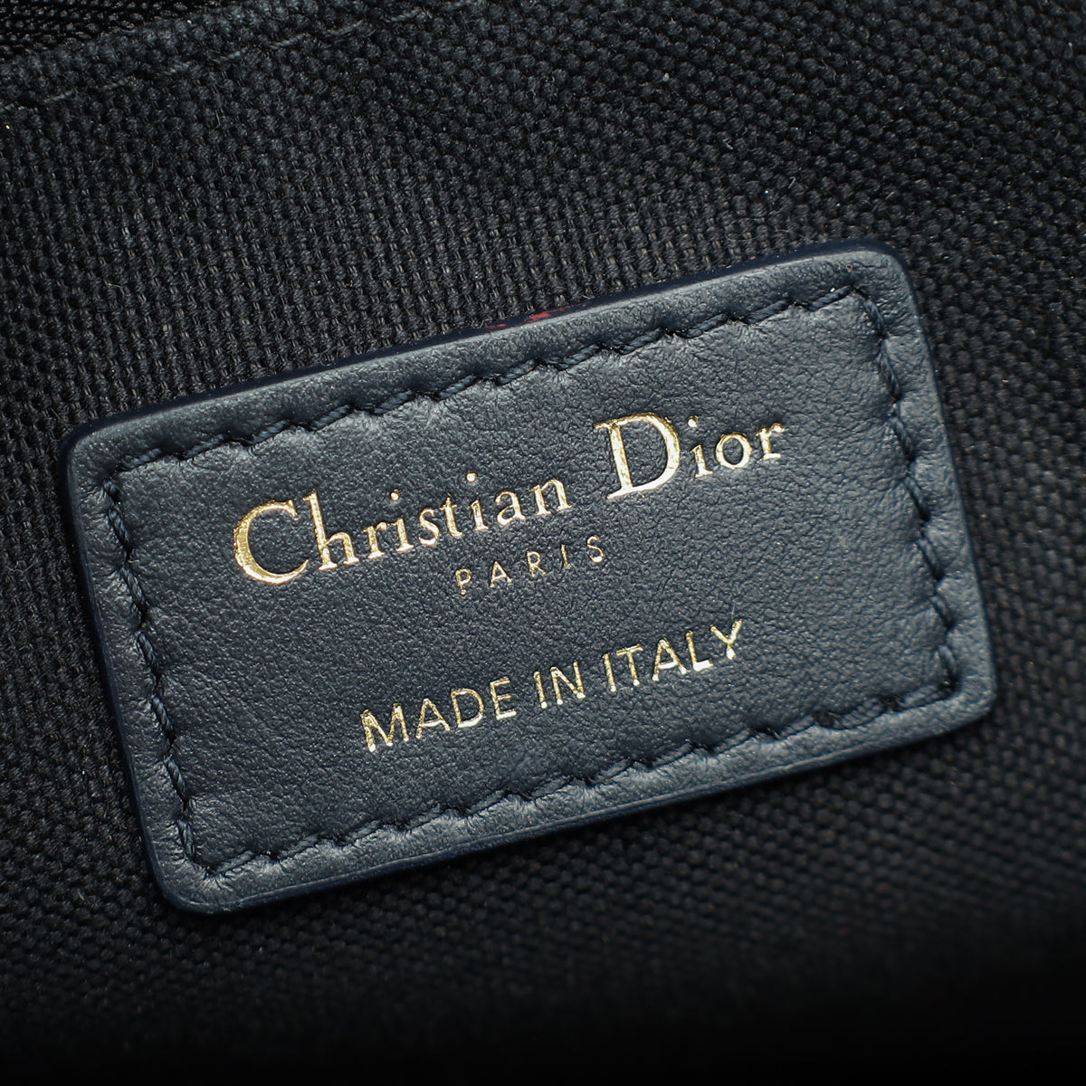 - Material: Blue Oblique Embroidery Canvas and Calfskin Aged Leather with 'CHRISTIAN DIOR PARIS' Signature