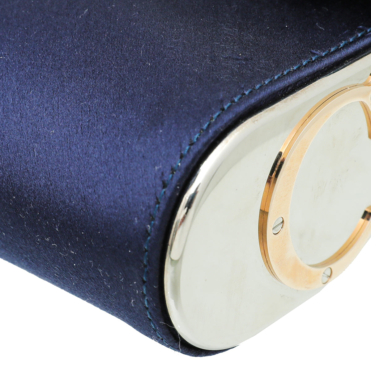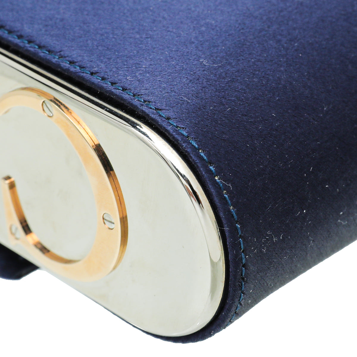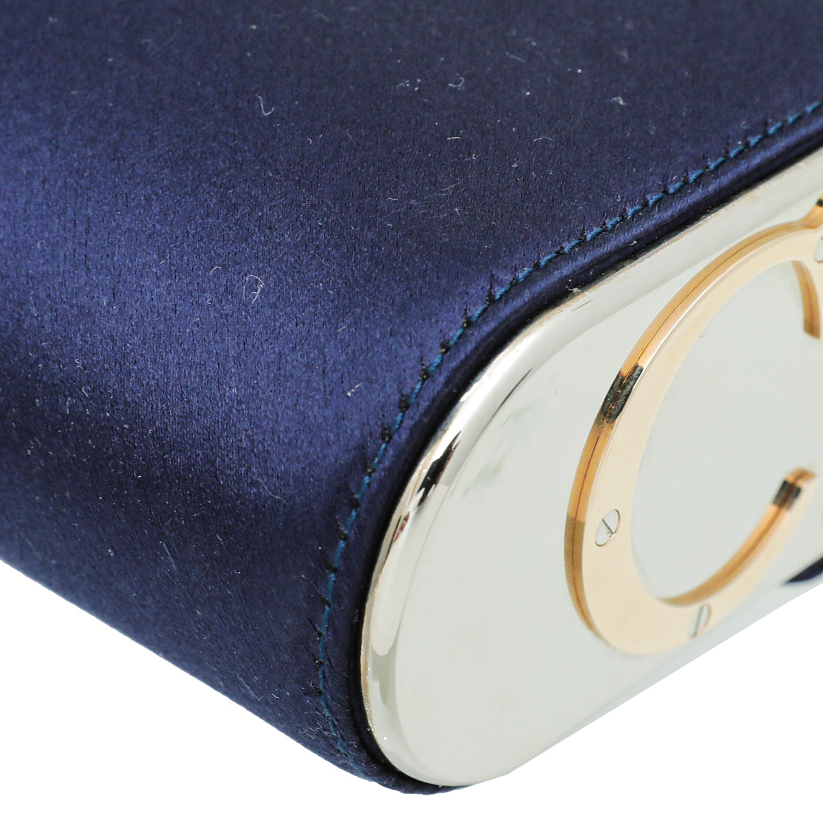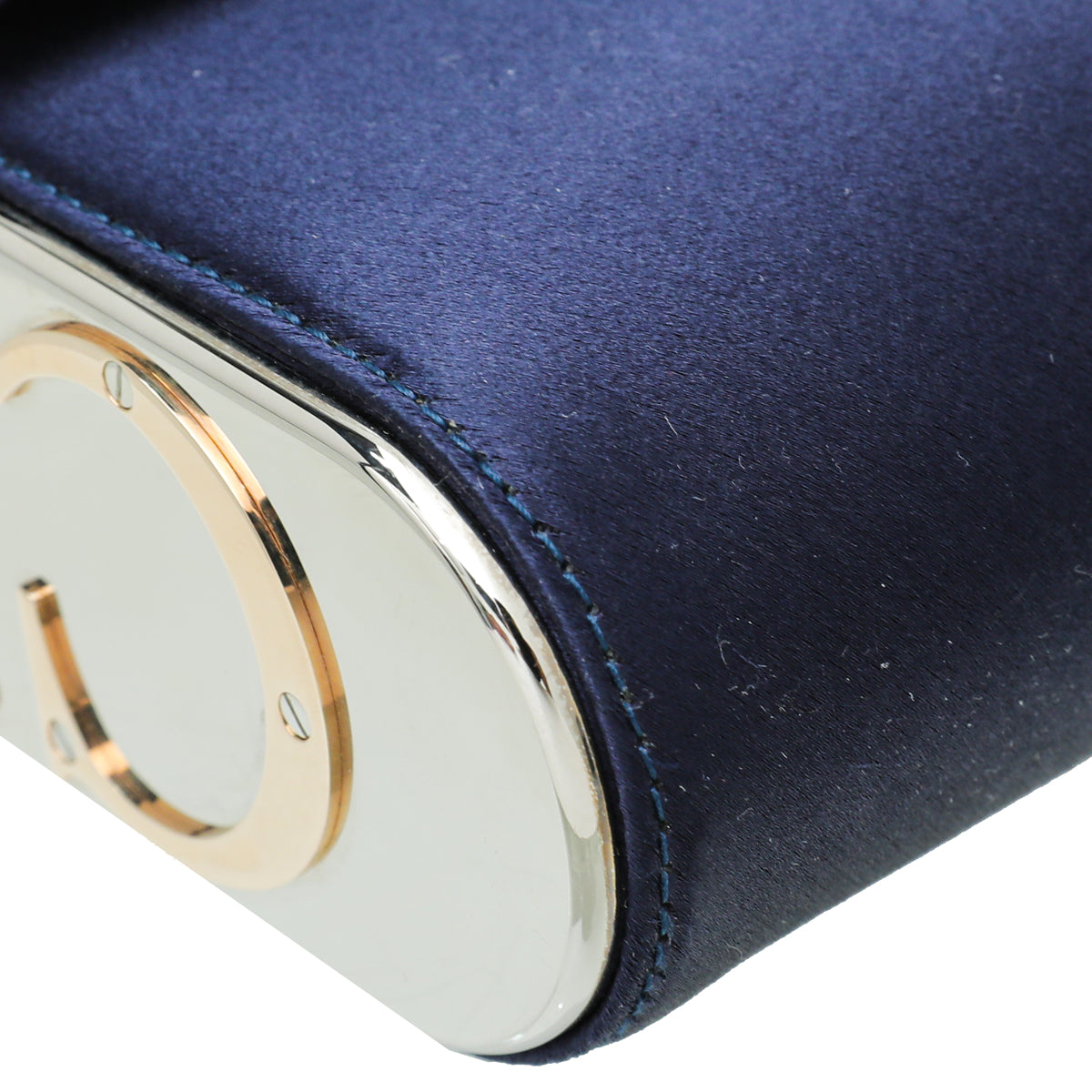 Christian Dior Blue Satin CD Logo Box Clutch-Christian Dior-THE CLOSET
