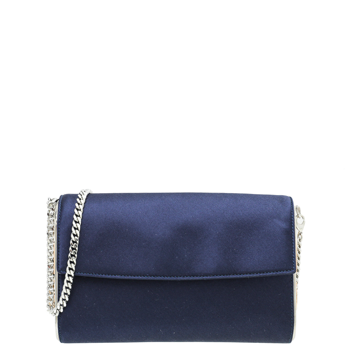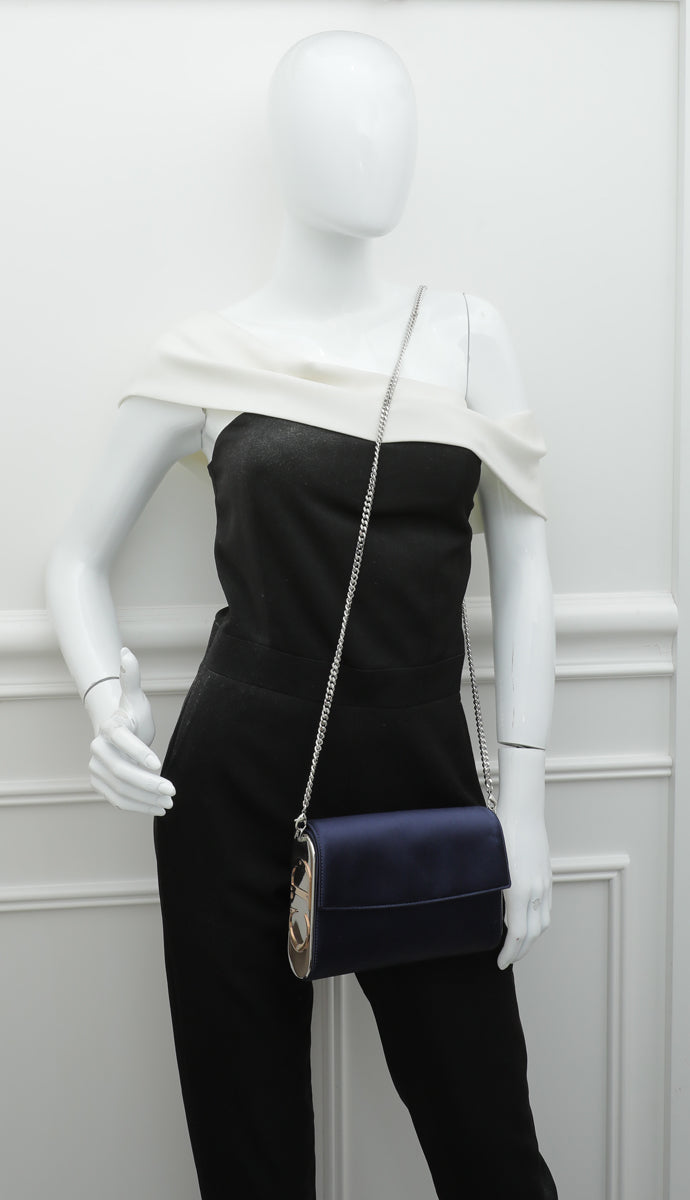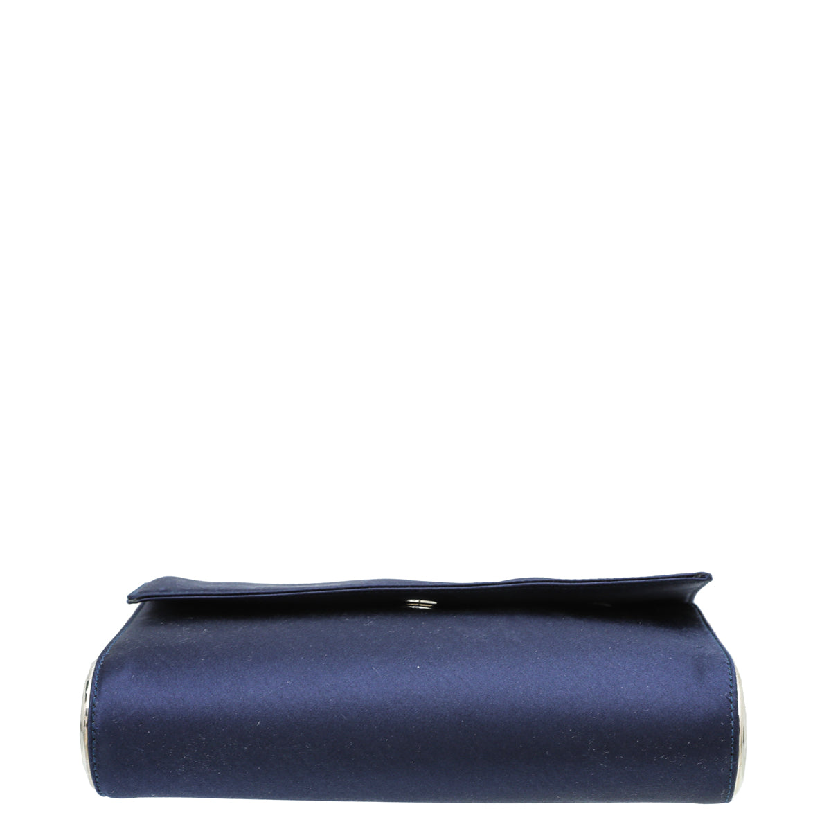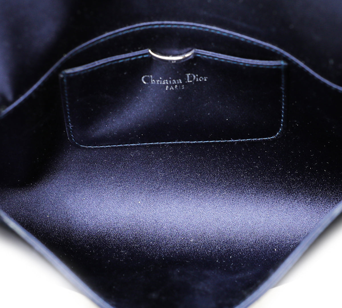 Christian Dior Blue Satin CD Logo Box Clutch-Christian Dior-THE CLOSET