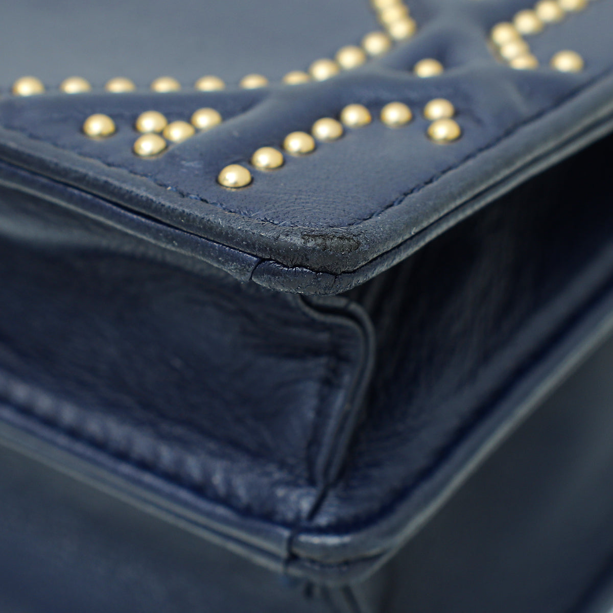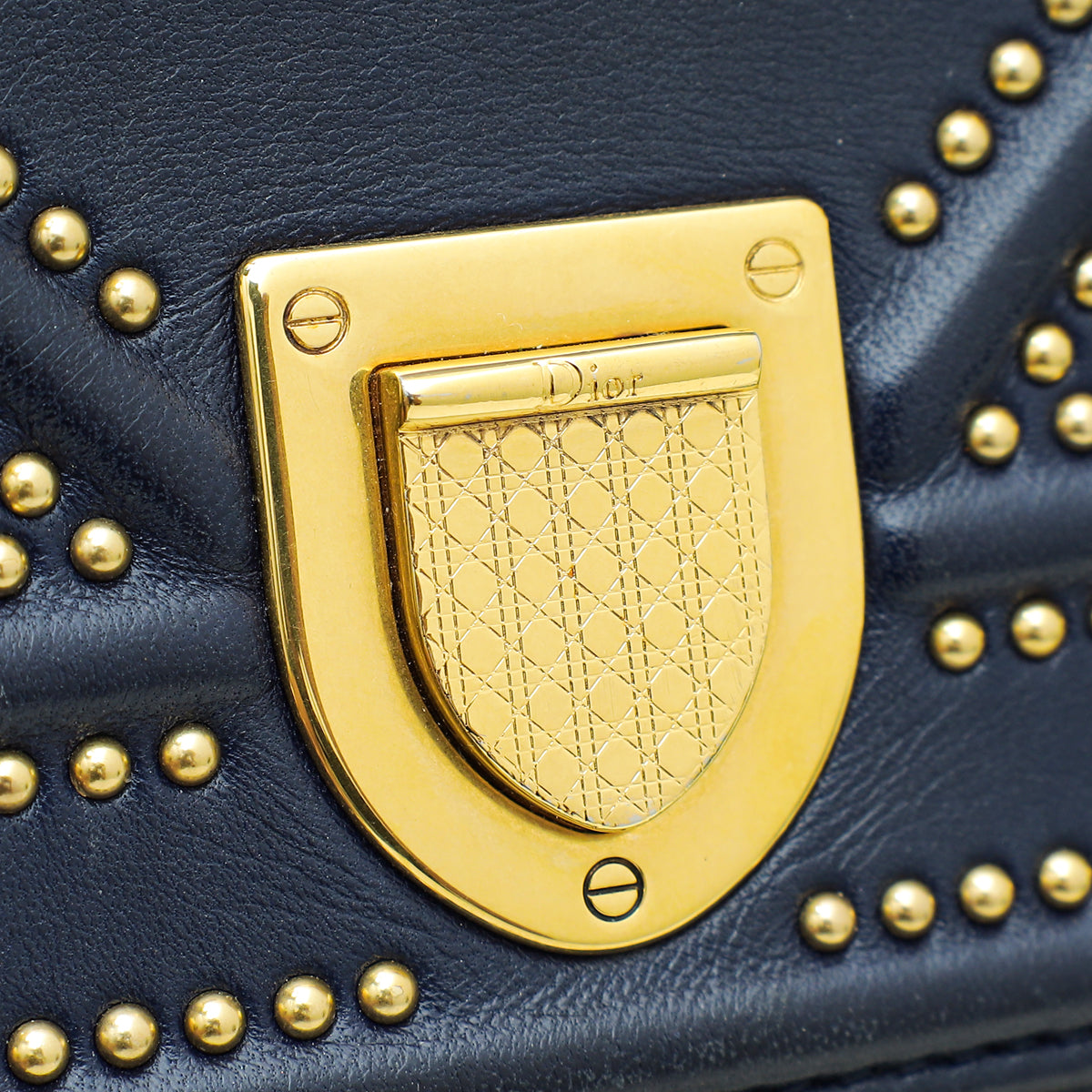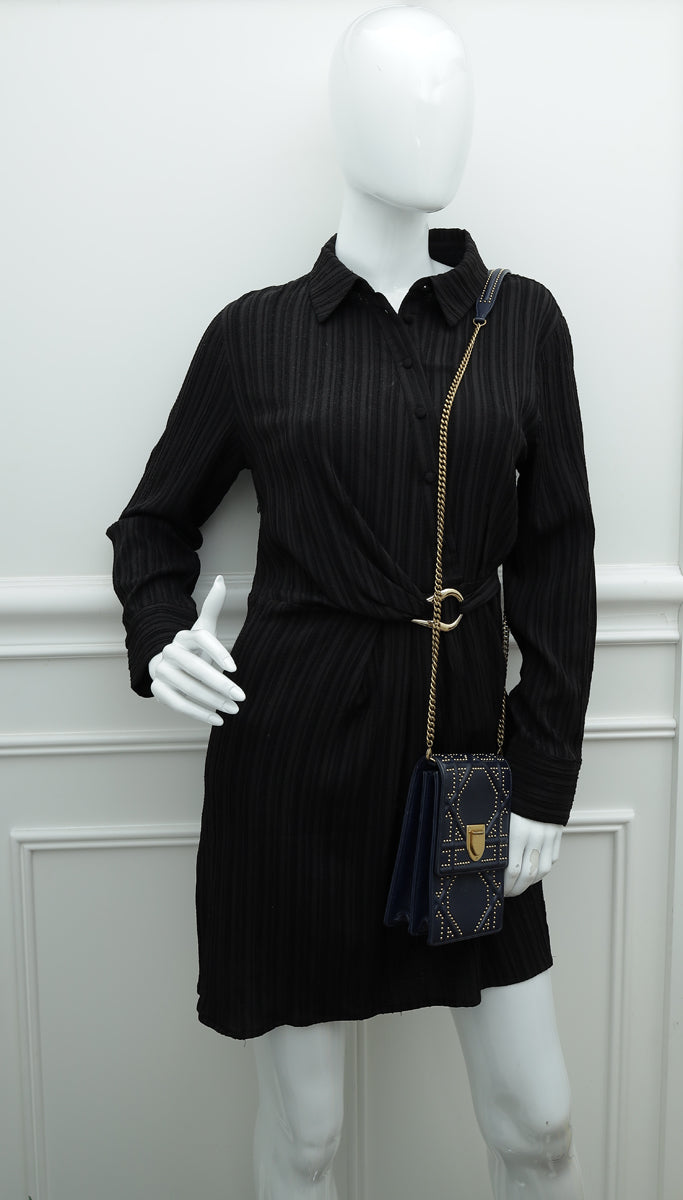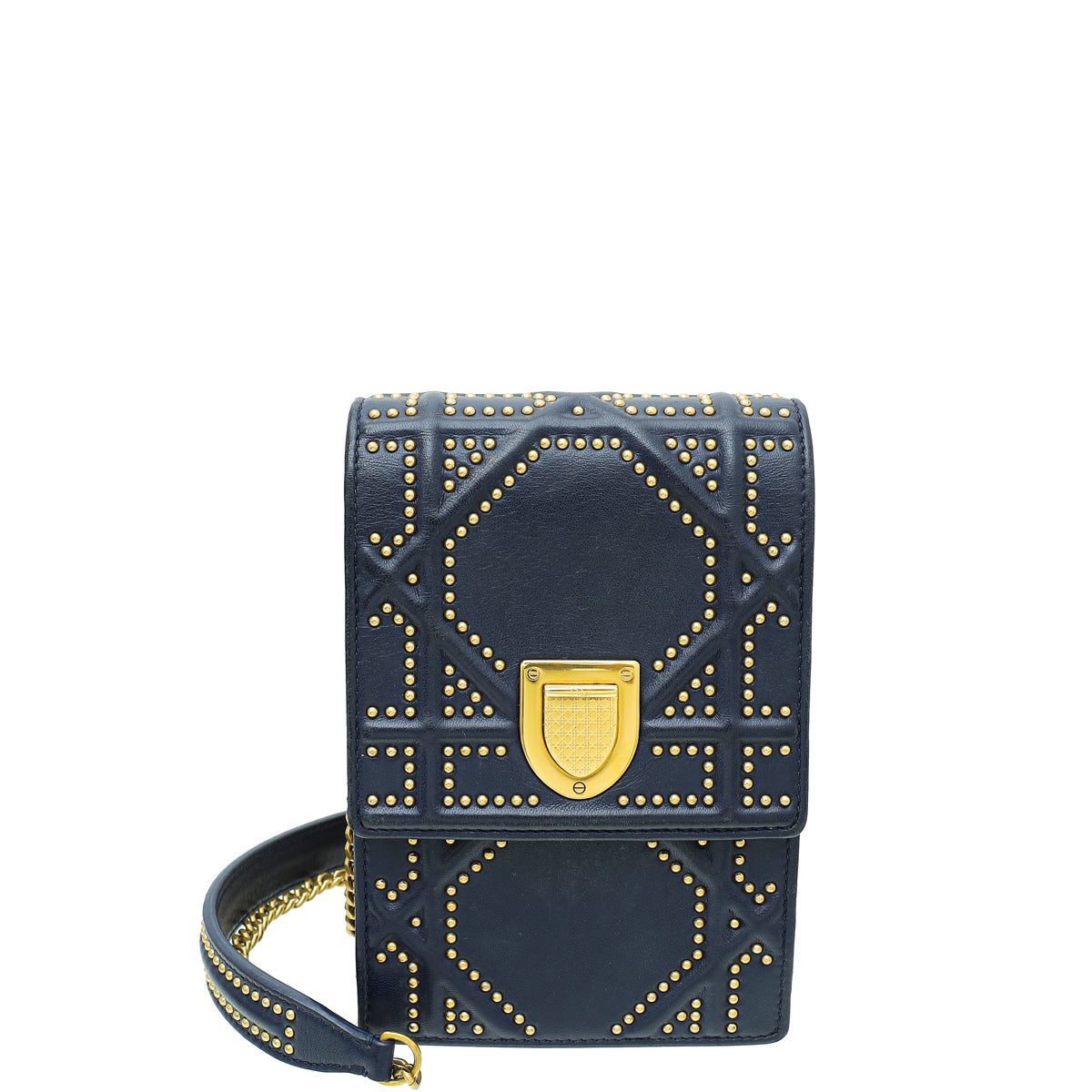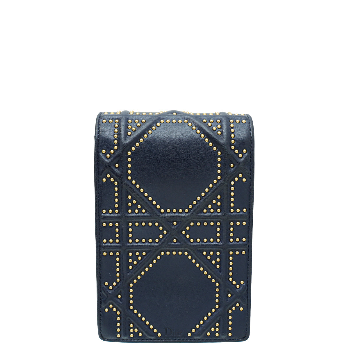 Christian Dior Navy Blue Diorama Studded Vertical Chain Wallet-Christian Dior-THE CLOSET