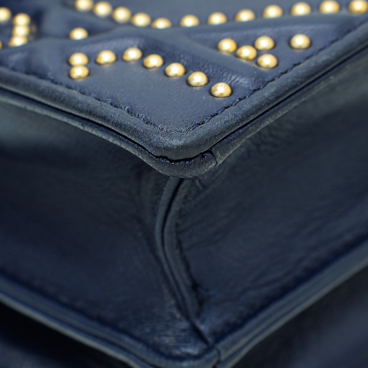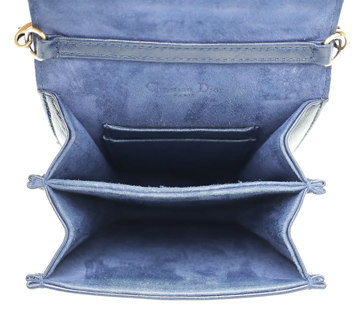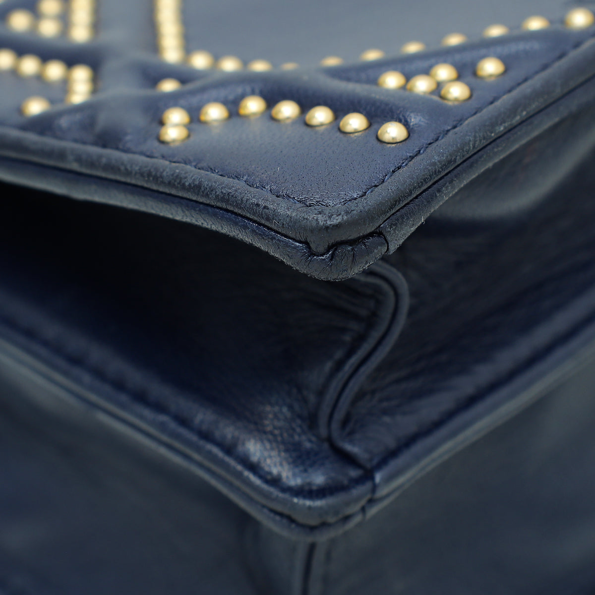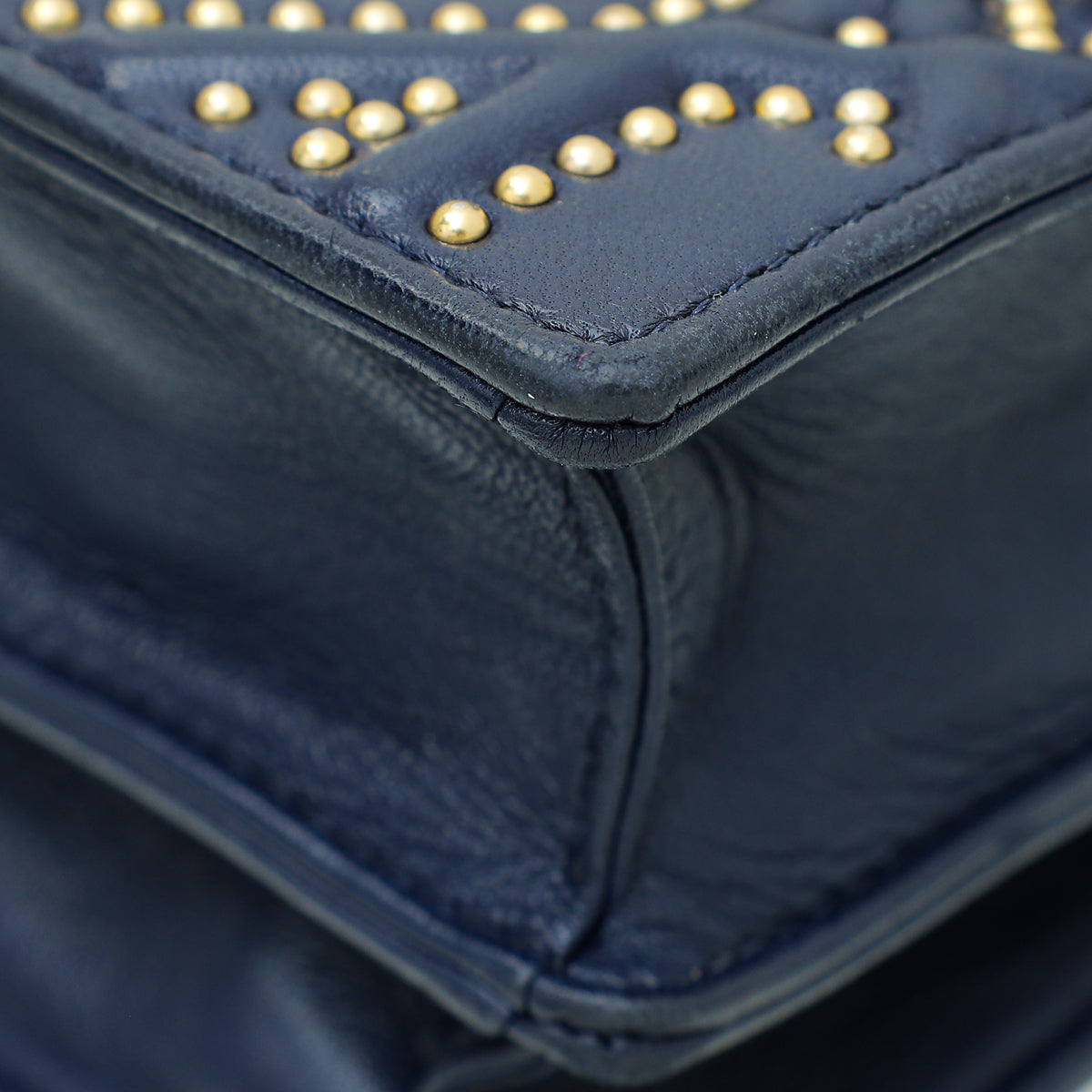 Christian Dior Navy Blue Diorama Studded Vertical Chain Wallet-Christian Dior-THE CLOSET
