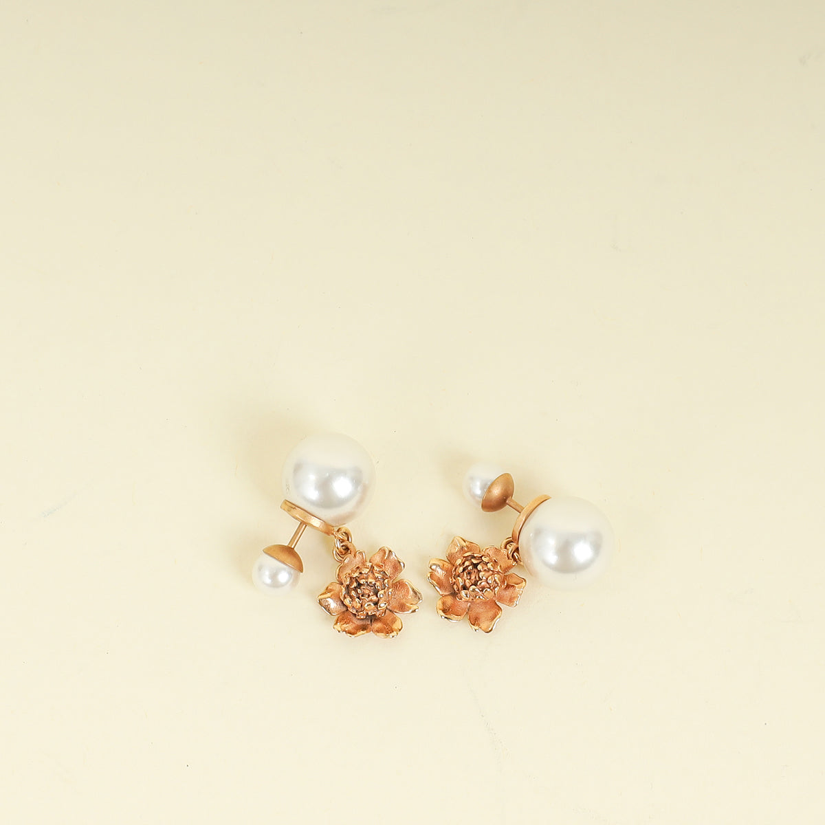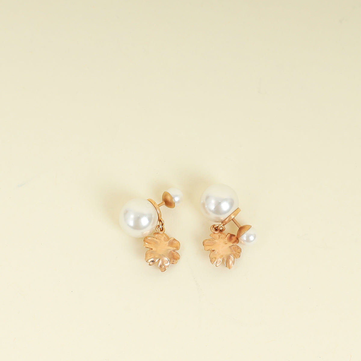 Christian Dior Rose Gold White Pearl Tribales Flower Earrings
