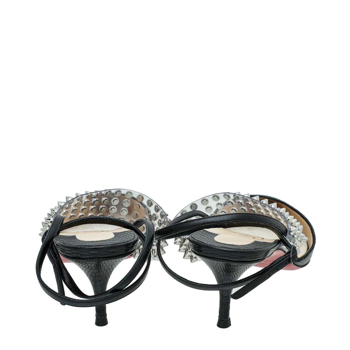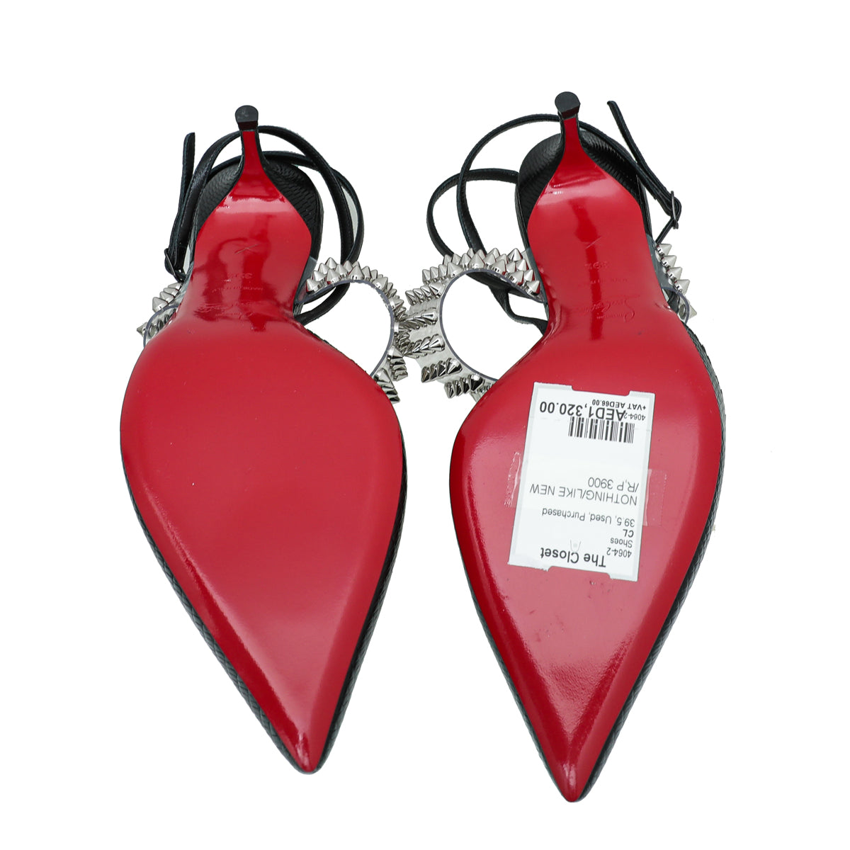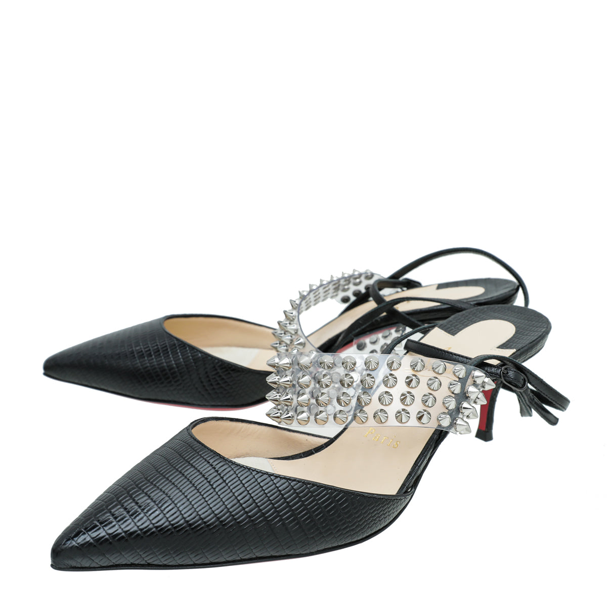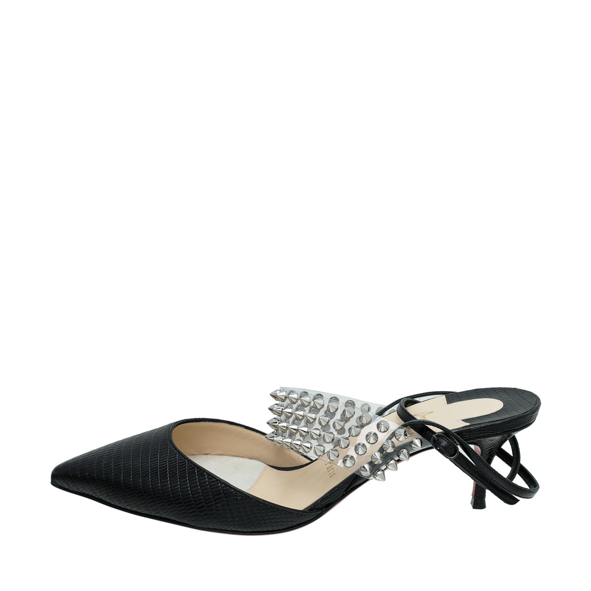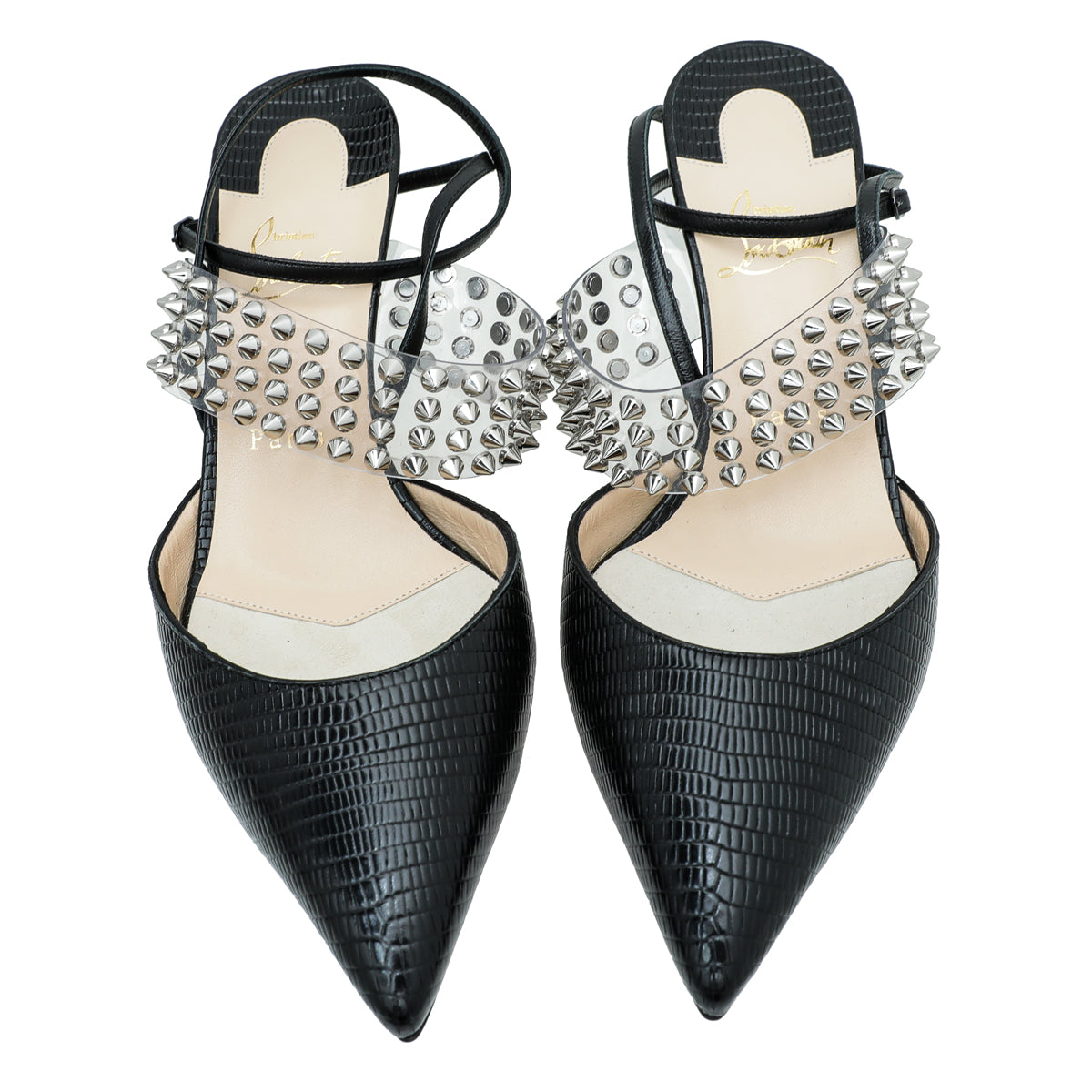 Christian Louboutin Black Levita Lizard Effect Slingback Pump 39.5